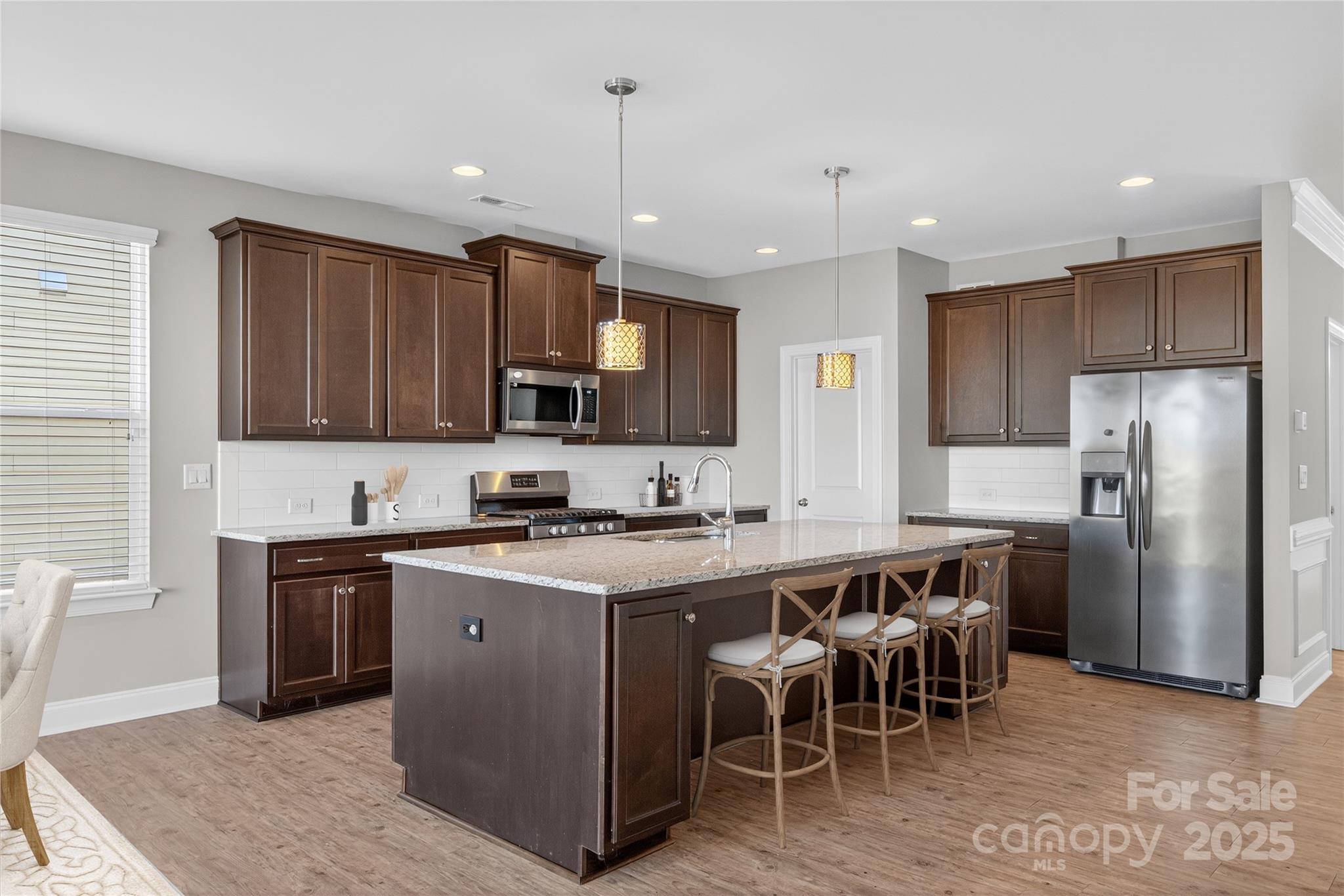 Beautifully refreshed and move-in ready, this Union Grove home blends quality craftsmanship with everyday comfort. Fresh paint and new carpet set a welcoming tone, while the open floor plan connects the kitchen, dining, and living areas—perfect for gathering or relaxing. The kitchen shines with granite countertops, stainless gas appliances, and a spacious walk-in pantry. A dedicated office provides the ideal work-from-home retreat. Upstairs, the serene primary suite offers a spa-like bath and generous walk-in closet. Step outside to a large, level backyard made for play or outdoor entertaining. Enjoy community life with sidewalks, walking trails, a scenic pond, playground, and inviting pool.