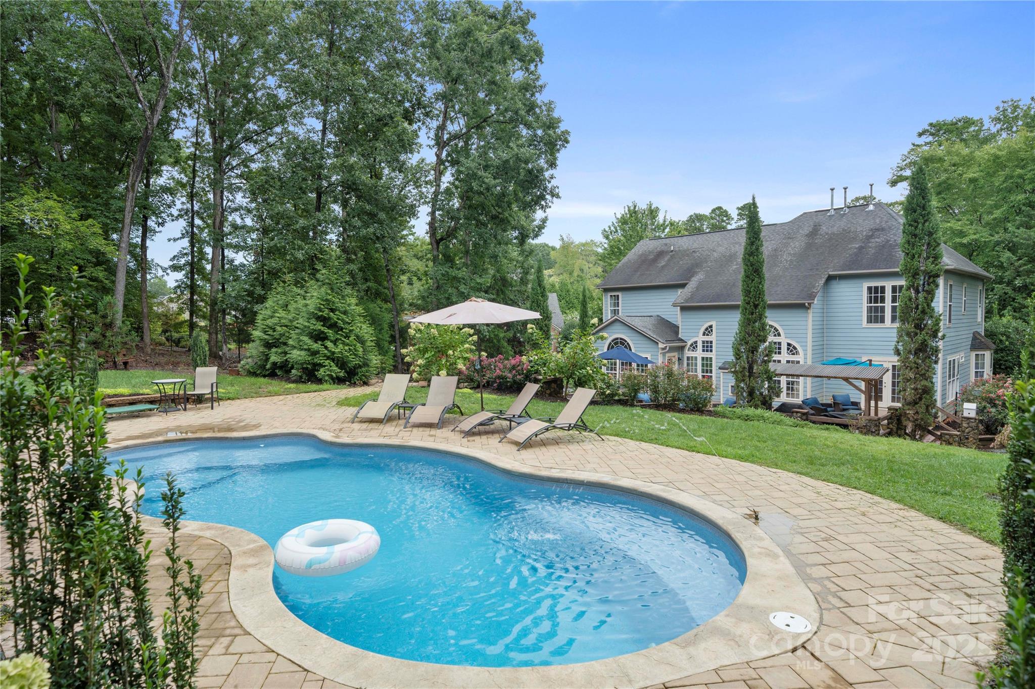 Welcome to your private oasis! This stunning 4-bedroom, 3-bathroom home is an entertainer's dream, offering a seamless blend of modern luxury and serene privacy. Inside, you'll find the updated kitchen is perfect for culinary adventures, while beautiful bamboo floors flow throughout the first floor. A dedicated office with a tranquil view of the backyard offers a quiet escape. The true highlight is the incredible outdoor living space. The private backyard is a paradise for gatherings, featuring an inground saltwater pool, a cozy outdoor fireplace, a soothing water fountain wall, outdoor lighting and speakers to set the perfect mood. For some fun, there's even a 100-foot zip line! The three-car garage includes an electric car charger. Experience the ultimate in relaxation and entertainment—your new home awaits. Agent owned.