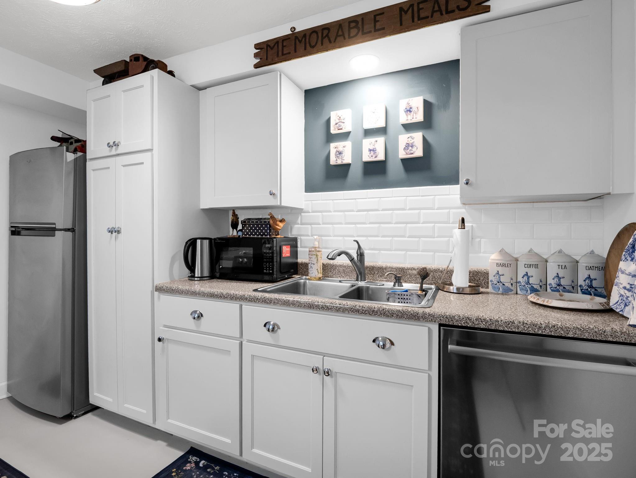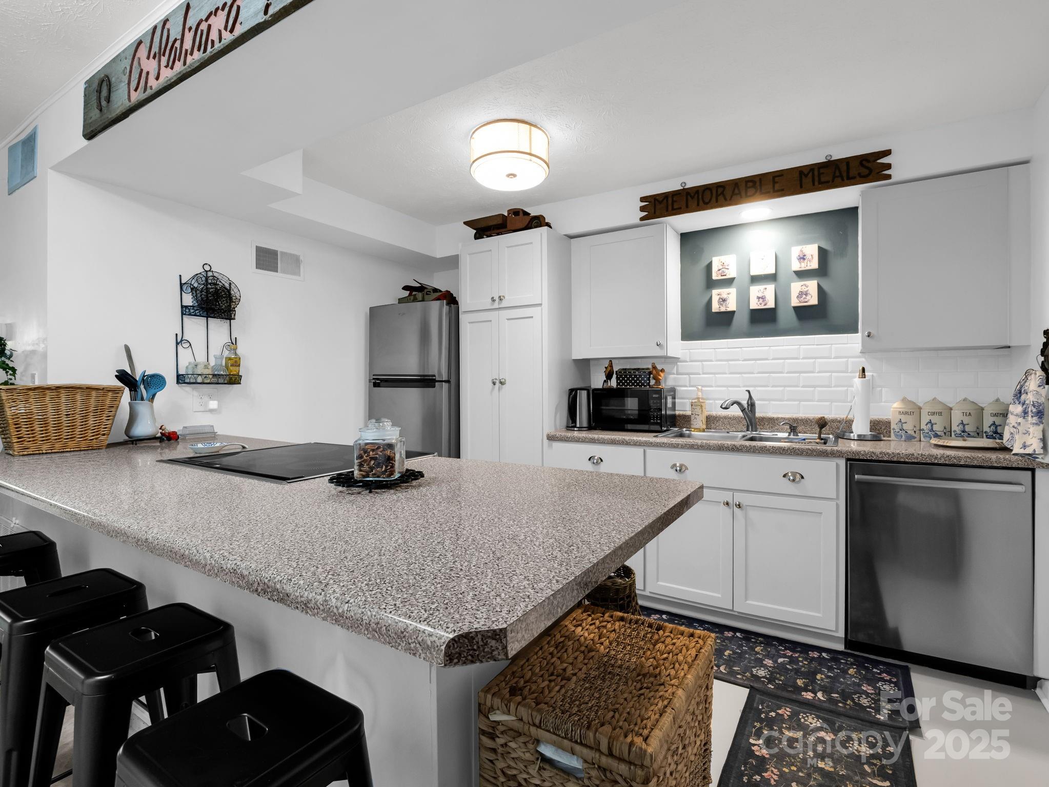 Charming One-Level Condo in Desirable Tryon Location. Welcome to easy living in this delightful end-unit condo, ideally situated in a quiet, peaceful neighborhood just minutes from downtown Tryon. This move-in ready home offers the perfect blend of comfort and convenience, all on one level with No Steps! The inviting open-concept layout features a bright and spacious living room, an updated kitchen with all new stainless appliances and breakfast bar, two comfortable bedrooms and one full bath. A private patio entrance offers a warm and welcoming first impression, while inside you’ll find low-maintenance finishes and thoughtful touches throughout. Additional highlights include an in-unit washer/dryer, a covered parking spot and a secure private storage room. For added convenience, residents also have access to a shared laundry facility. Whether you're a first time buyer, downsizing or seeking a low-maintenance retreat close to town, this charming condo is a must-see!