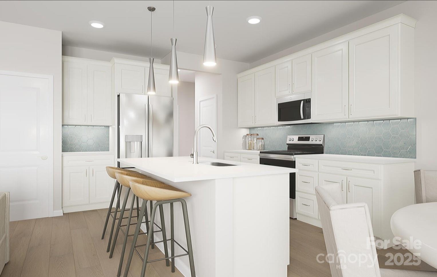Looking for the perfect new home? This modern townhome is one of the first available homes in the Camryn at Southbridge community. Get ready to fall in love with this functional floor plan, loaded with designer finishes! Home highlights: Open Concept White Kitchen with GE stainless appliances, large island and loads of cabinet space, Quartz counters and black hardware with Delta touch faucet Outdoor Living Area Backing to Mature Trees Oak Box Stairs with open rail at first floor Primary Suite with tray ceiling, large tile shower and walk-in closet with solid shelving and door connecting to the laundry room LivingSmartâ„¢ package with smart home and energy efficient features