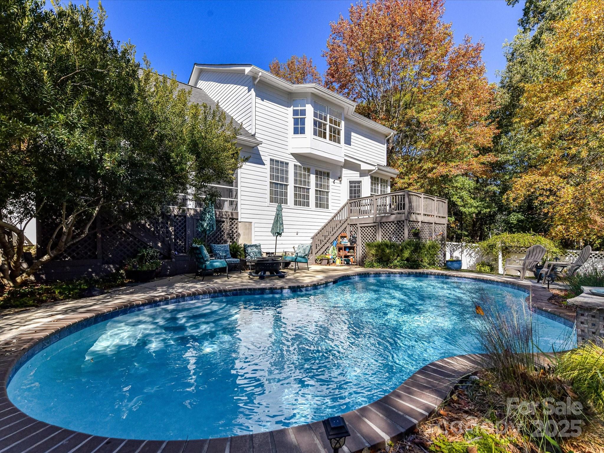 Charming 4-bedroom, 2.5-bath home with 2,740 sq ft & a 2-car garage in the walkable St. Albans Davidson neighborhood. Nestled among beautiful mature trees, this home features a lovely backyard concrete swimming pool with peaceful waterfall and is just steps from small parks and nature paths. Walk to historic downtown Davidson to enjoy local shops, restaurants, and community events. Inside, an inviting floor plan provides comfortable everyday living and easy entertaining. The main level features site-finished hardwood floors (excluding laundry), fresh neutral paint, a spacious dining room, open kitchen and family/great room with gas fireplace and a half bath. Main level also has a versatile study with French doors, a custom California Closet & built-in Murphy bed so the space can double as an office or guest room. Upstairs features four bedrooms and two full baths, including a serene primary suite with hardwood floors, built-in window seat and updated spa-like bath with soaking tub, & tiled shower with seat. Upper level hardwood floors extend through the hallway, the office with French doors and bonus room with skylights. Home has tankless water heater. Great outdoor living with a covered front porch, large rear screened porch and poolside deck with grill area in private, landscaped backyard oasis. Situated on a desirable corner lot, this home combines comfort, versatility and an ideal Davidson location!