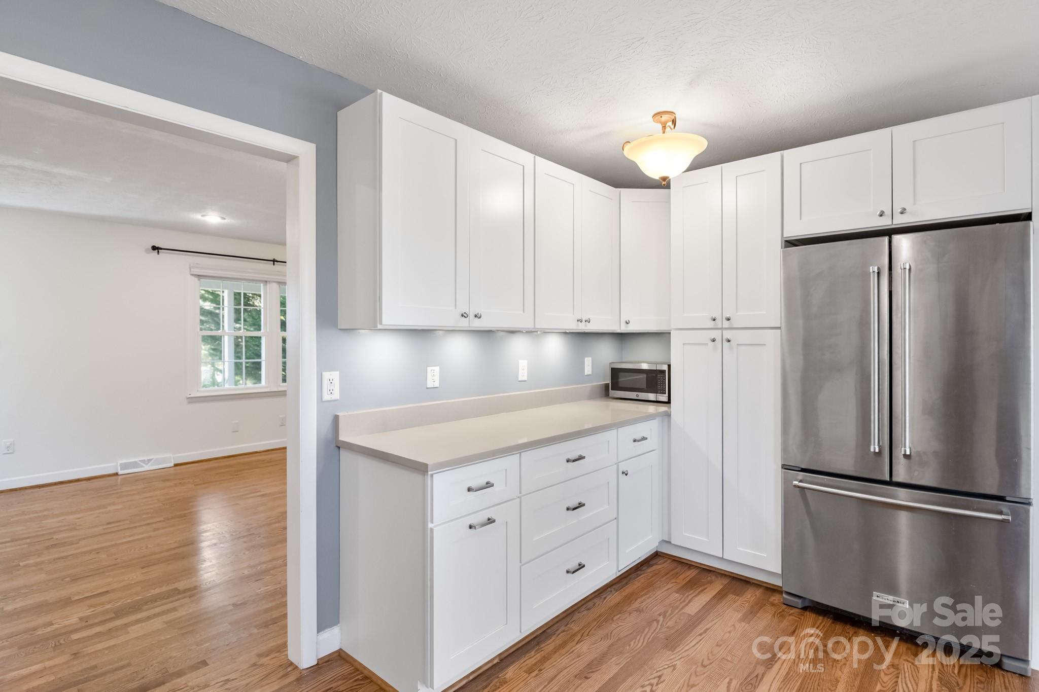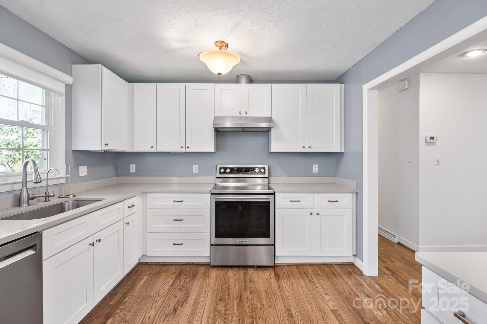 Welcome home to this beautifully maintained 3-bedroom, 2-bath residence with a brand-new roof and an impressive list of updates. The kitchen features newer cabinets, countertops, and stainless appliances. The spacious primary suite includes a walk-in closet and ensuite laundry and bathroom for convenience. Enjoy gleaming red-oak hardwood floors, fresh paint and trim, and an inviting floor plan that flows easily to the back deck and covered outdoor living area. A two level barn with three stalls, electricity, water and pasture make this the perfect mini-farm. A large 2-car garage with workshop space in the huge basement is ideal for storage and hobbies. Recent updates include a hybrid gas/electric water heater, whole-house filtration system, new well pump, propane gas logs with remote starter, and a new chimney cap. Mature trees have been cleared, opening the property for sunlight and mountain views—all just minutes from Asheville conveniences!