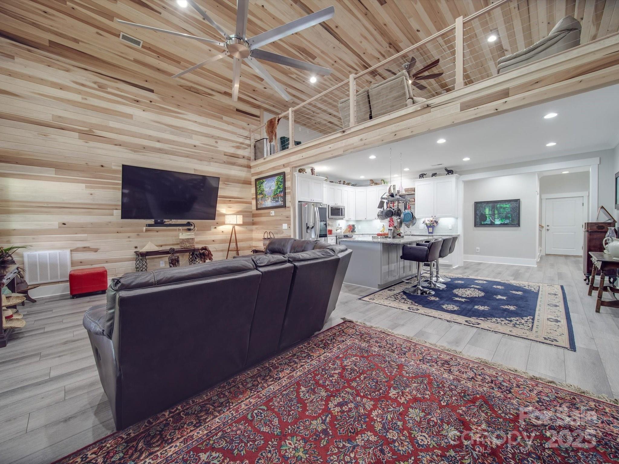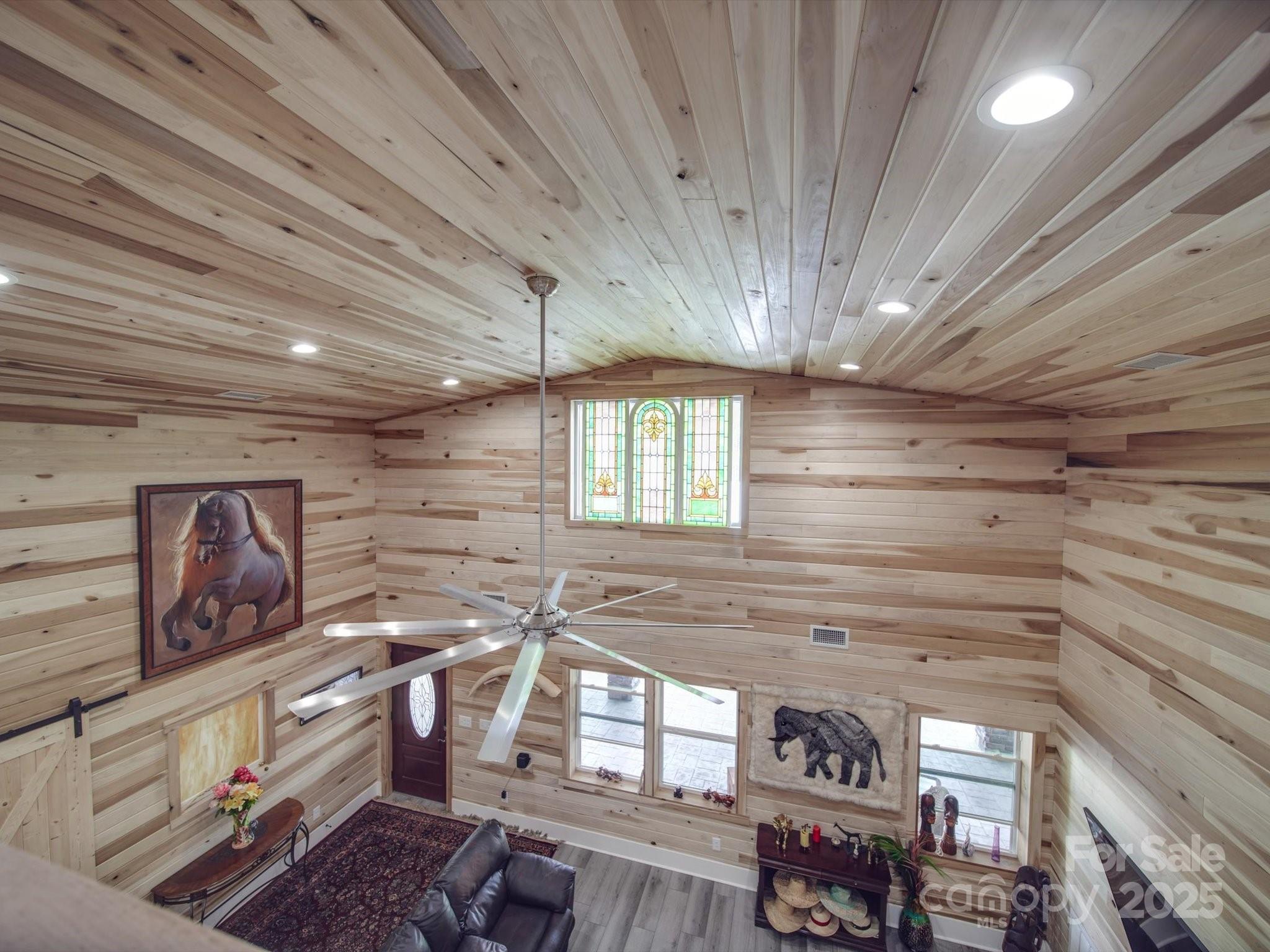 This is a rare, private, and spectacular home built on over 14 acres, with a 1 acre pond stocked with an array of fish. Designed by a licensed NC General Contractor, this property has an abundance of modern amenities. A private wood-lined drive brings you to the serene setting of the 2850sqft home with attached oversized garage. Outside is an amazing entertainment area w/ fireplace, Big Green Egg, covered sitting area and enclosed wet bar. The main entrance is beneath a covered porch w/ ceiling fans. The wow factor comes when you walk through the front door, seeing the poplar slat walls extending up the 19' cathedral ceiling, and the state of the art kitchen. Granite countertops throughout. Custom tile showers and floors in all 4 bathrooms. All smart appliances included. 6" Thick walls offer amazing efficiency for the multi-zone HVAC. Ceiling fans in every room. 60 yr paint warranty. The 1909 sqft garage is wired for 2 EV's, has a washroom, and in-floor wash drains.