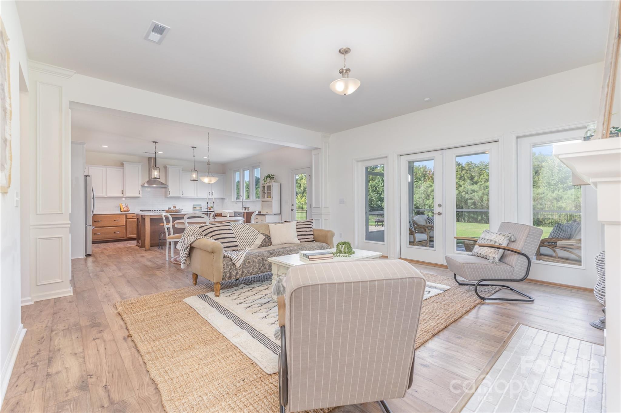 Welcome to this stunning 5-bedroom, 4.5-bath farmhouse-style home that perfectly blends timeless charm with modern luxury. Situated on a large, flat, and private lot, this beautifully designed residence offers space, comfort, and style in every detail. Step inside to find an inviting open floor plan centered around a gourmet chef's kitchen featuring high-end appliances including a gas range and double ovens, as well as a spacious island, farmhouse sink, walk-in pantry and an adjoining Butler’s pantry—ideal for effortless entertaining. The cozy living area boasts a gas fireplace, creating the perfect ambiance for relaxing evenings. A dedicated home office with custom built-ins provides a quiet space for remote work or study, while the main-level guest suite offers privacy and comfort for visitors. Enjoy year-round outdoor living on the spacious screened-in porch, perfect for morning coffee or evening gatherings. Upstairs, you'll find generously sized bedrooms and well-appointed bathrooms, providing plenty of space for family and guests. Thoughtfully designed and impeccably maintained, this home is a rare opportunity to enjoy modern farmhouse living in a serene, private setting and all within 15 minutes of charming downtown Waxhaw!