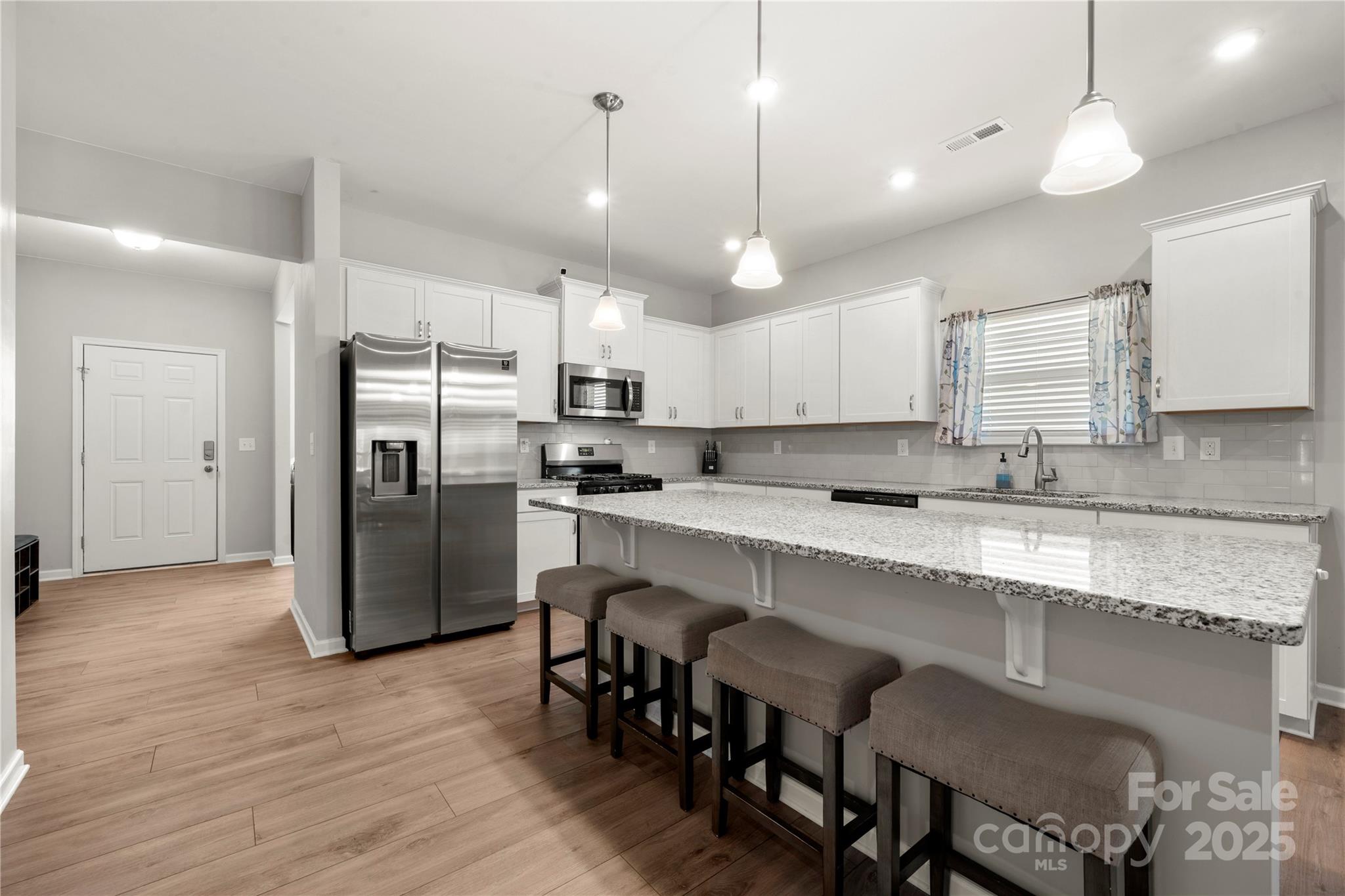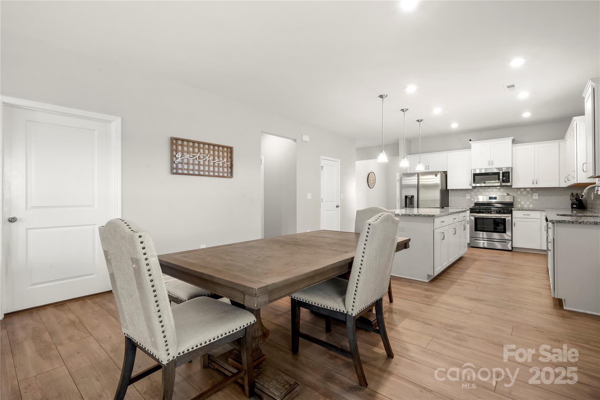 Built in 2021, this home is truly a must-see! Step inside to find wide-plank LVP flooring flowing through most of the main level, offering both style and durability. The kitchen features granite countertops, stainless steel appliances, a gas range, and an island with seating and extra storage — perfect for entertaining or casual meals. The kitchen opens into the dining area, which leads to a living room with direct access to a screened porch, ideal for relaxing or hosting guests year-round. The primary suite impresses with a tray ceiling, walk-in closet, and an ensuite bath complete with a walk-in shower, soaking tub, and brushed marble countertops. Two additional bedrooms, a flex space or office, and a full bath offer versatility and comfort. A conveniently located laundry room adds functionality, while the fully fenced backyard provides privacy and outdoor enjoyment. Also note, there is a professionally installed Tesla fast charge in the garage! Located just minutes from Birkdale Village, Lake Norman, and Latta Plantation Nature Preserve, this home offers the perfect blend of modern comfort and outdoor lifestyle. Come see all this property has to offer.