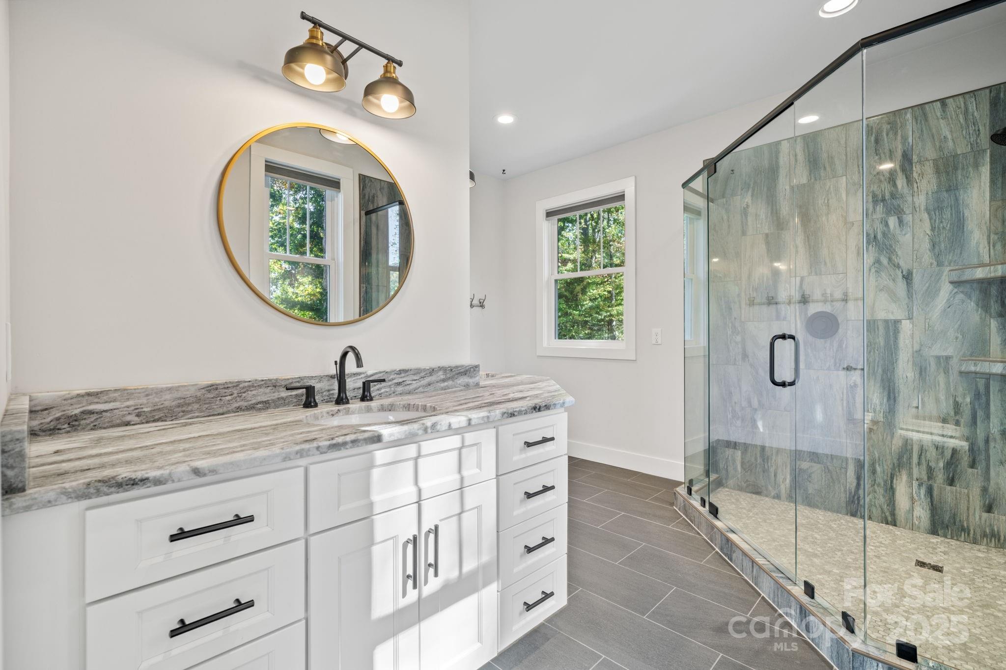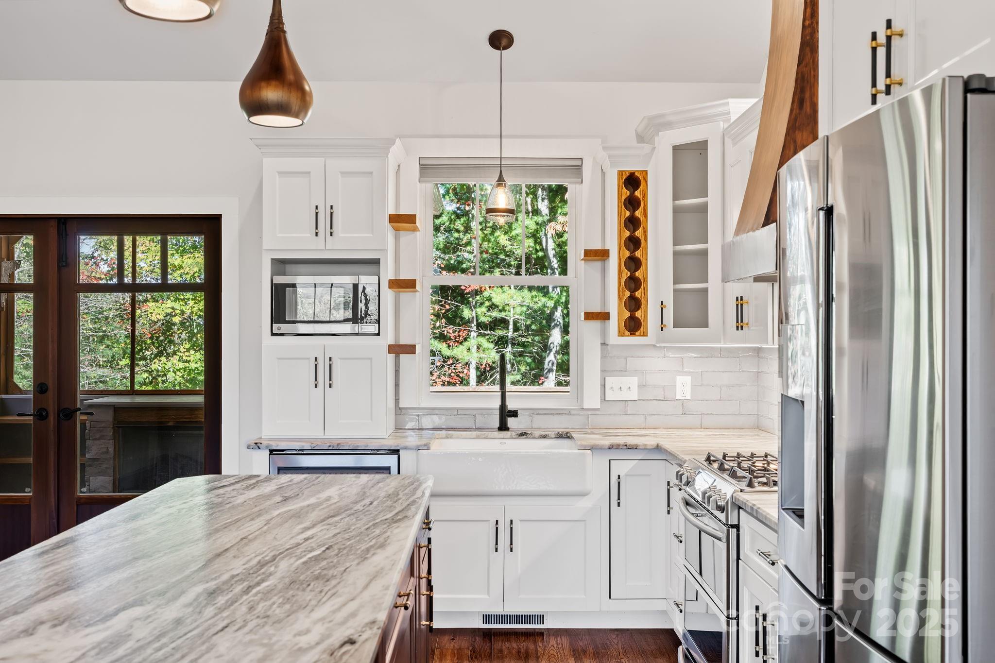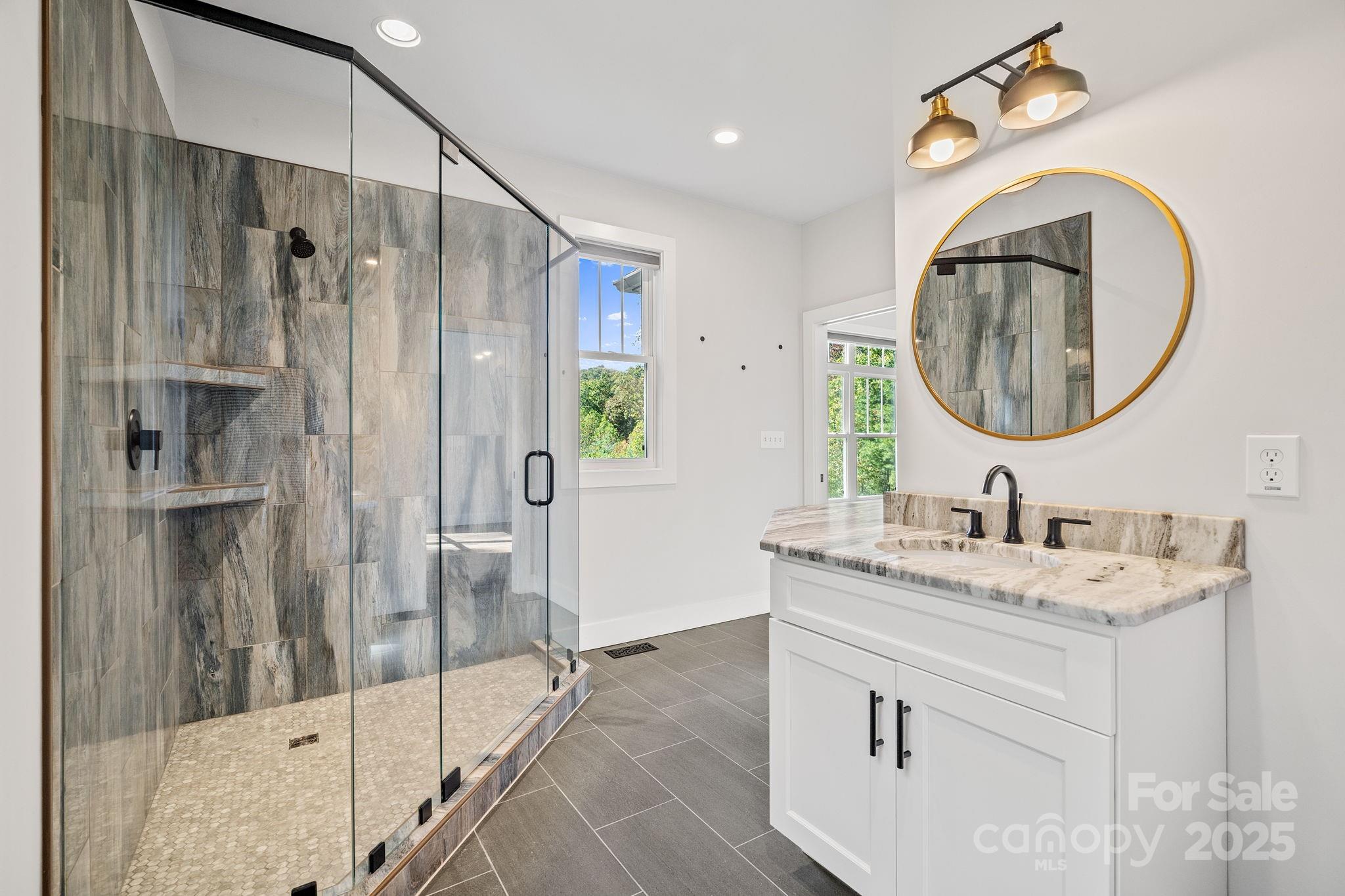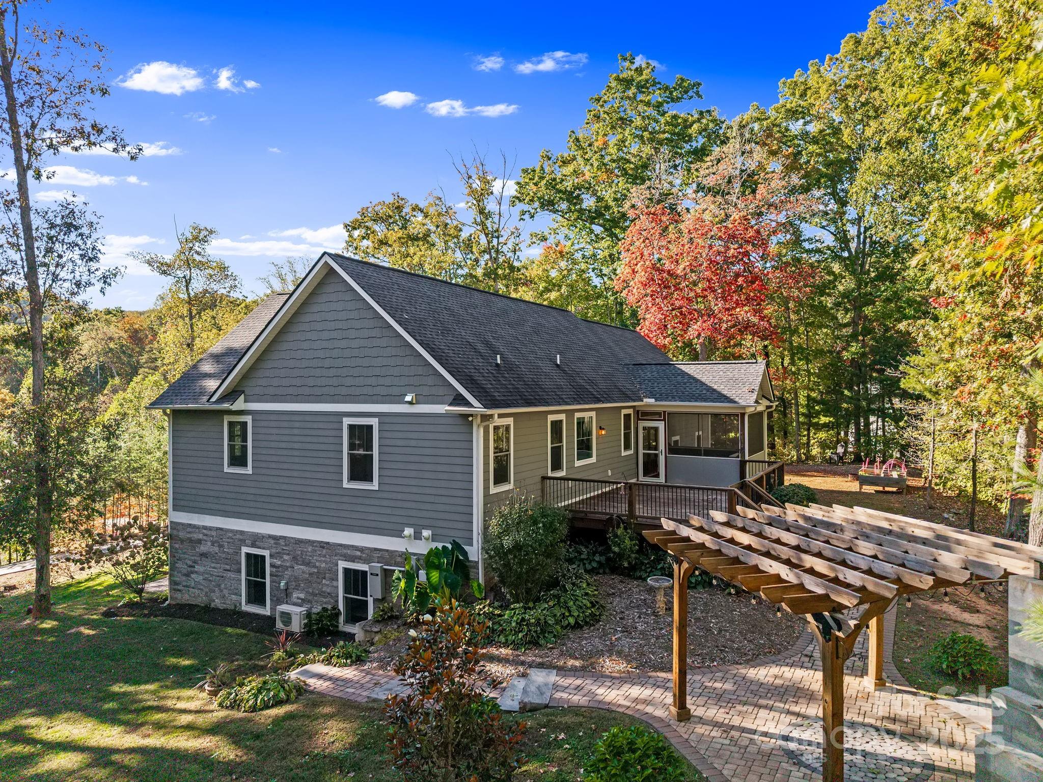 Elevated living reaches new heights at 9 Oak Mountain Drive. Set within a prestigious gated community just 20 minutes from downtown Asheville, this extraordinary custom built home was crafted with an uncompromising commitment to quality and design. From its hand-selected materials to its sweeping mountain backdrop, every detail reflects luxury at its finest. The main level unfolds with vaulted ceilings, rich wood floors, and expansive windows that frame the mountain views like living art. The chef’s kitchen pairs beauty and function with a custom copper range hood, duel fuel range, farmhouse sink, stainless appliances and more. Two elegant primary suites on the main level each feature spa-inspired baths with dual vanities and tiled walk-in showers, offering comfort and privacy for owners and guests alike. The lower level includes a third bedroom, full bath, and flexible bonus space ideal for a gym, studio, or media room. Outdoor living is exceptional, enjoy the screened porch with its stone fireplace, a pergola patio with a second fireplace, and a heated and cooled workshop. Thoughtfully designed, flawlessly built, and perfectly placed, this home defines modern mountain luxury.