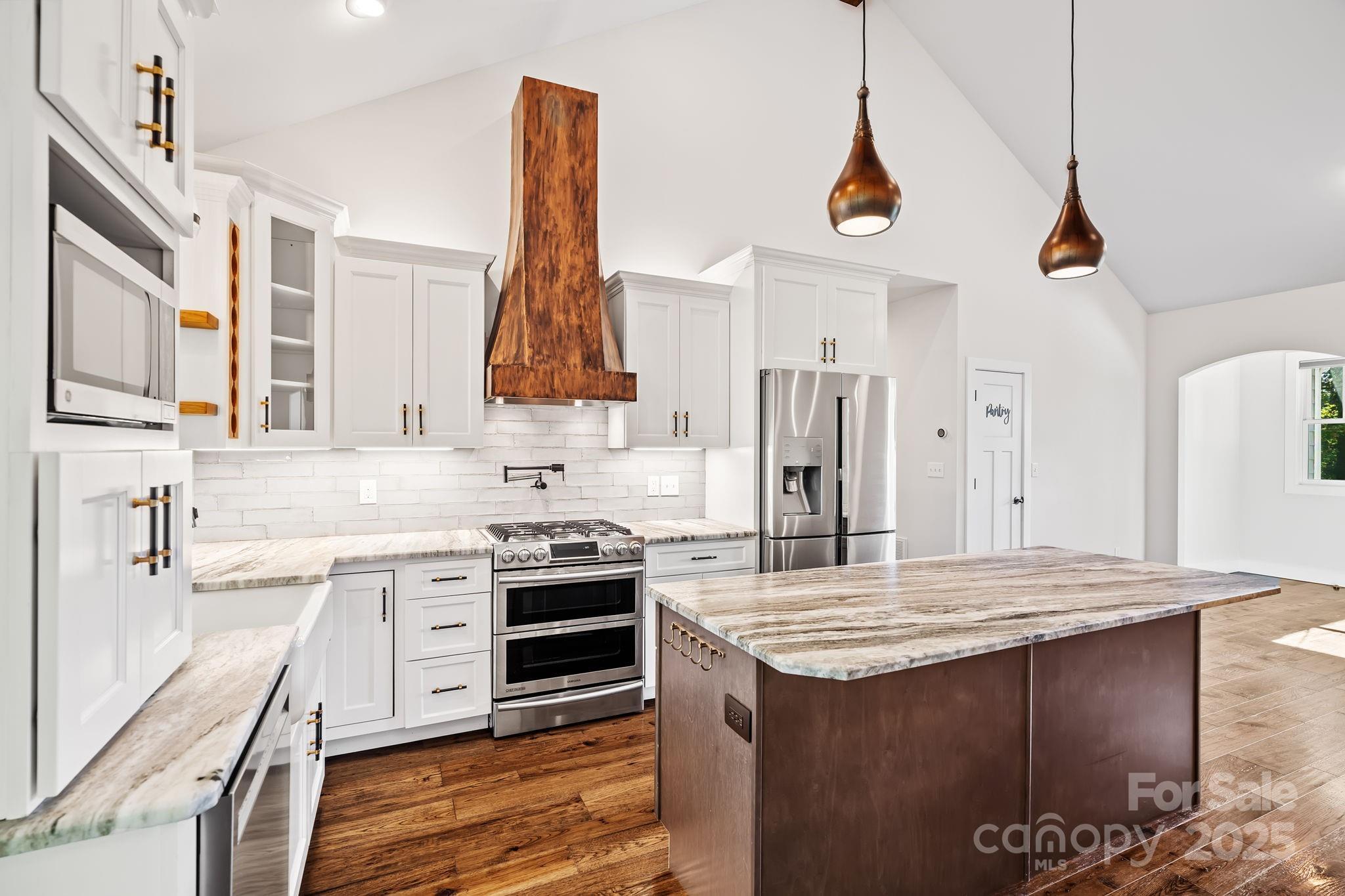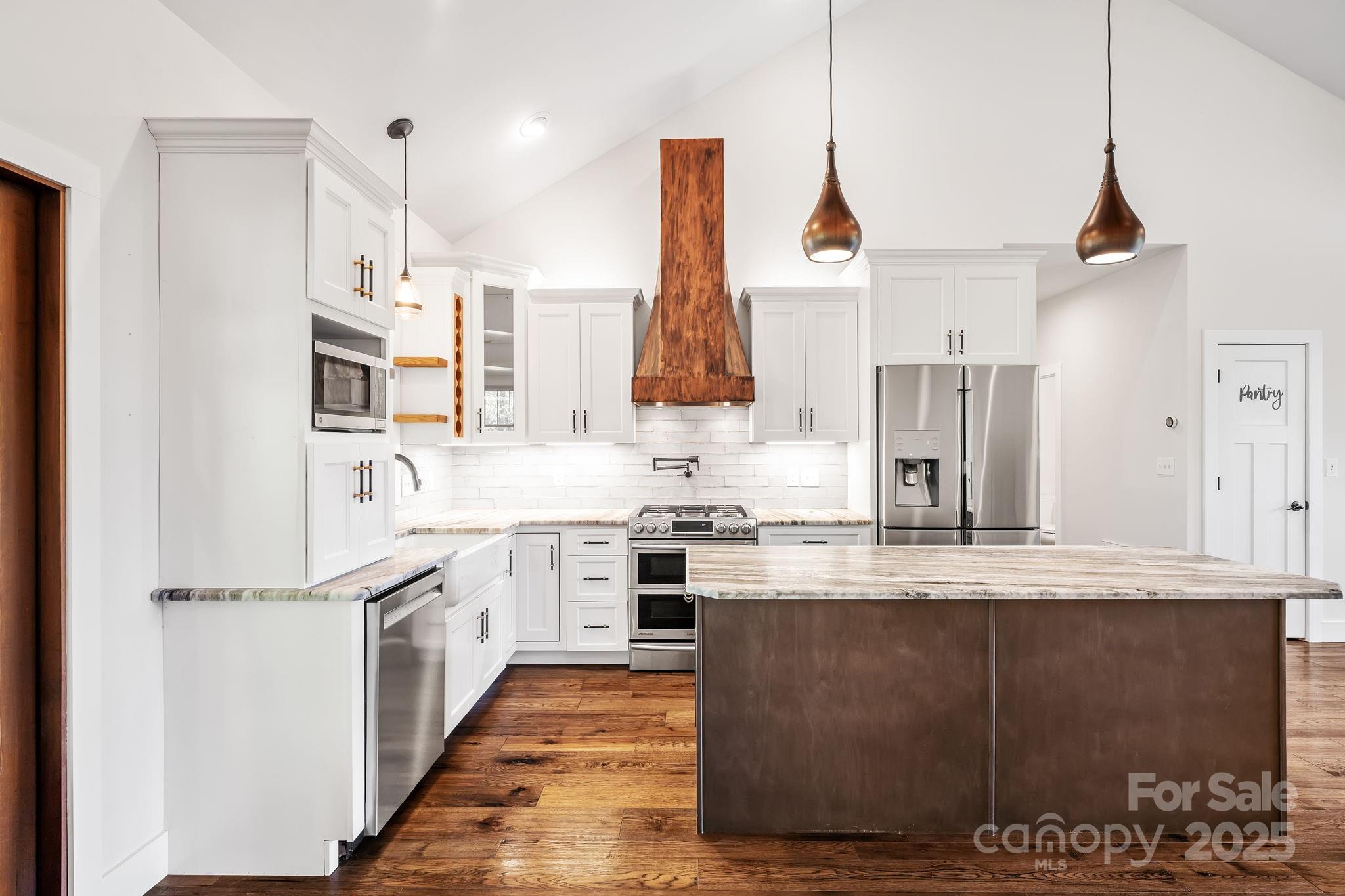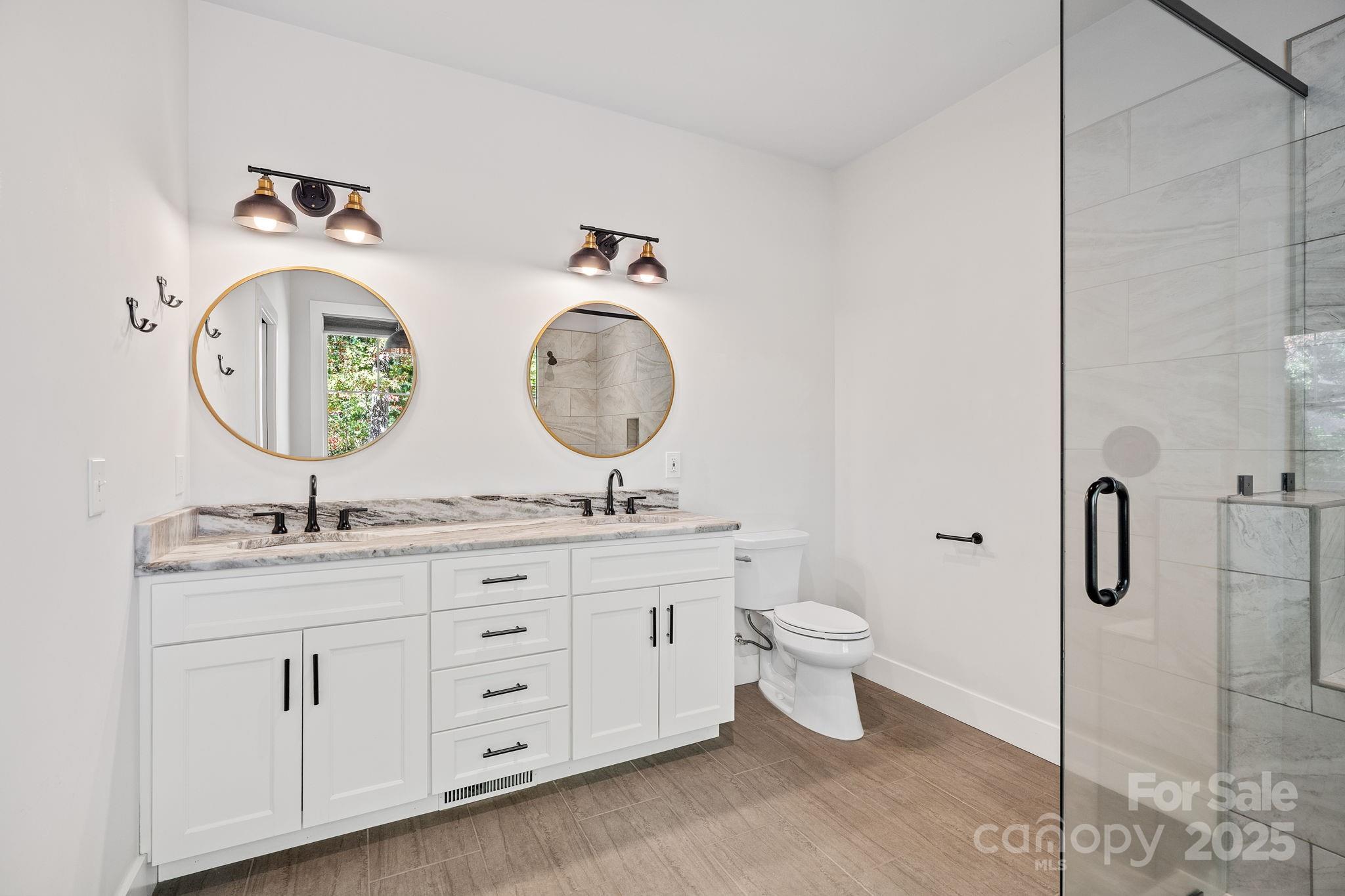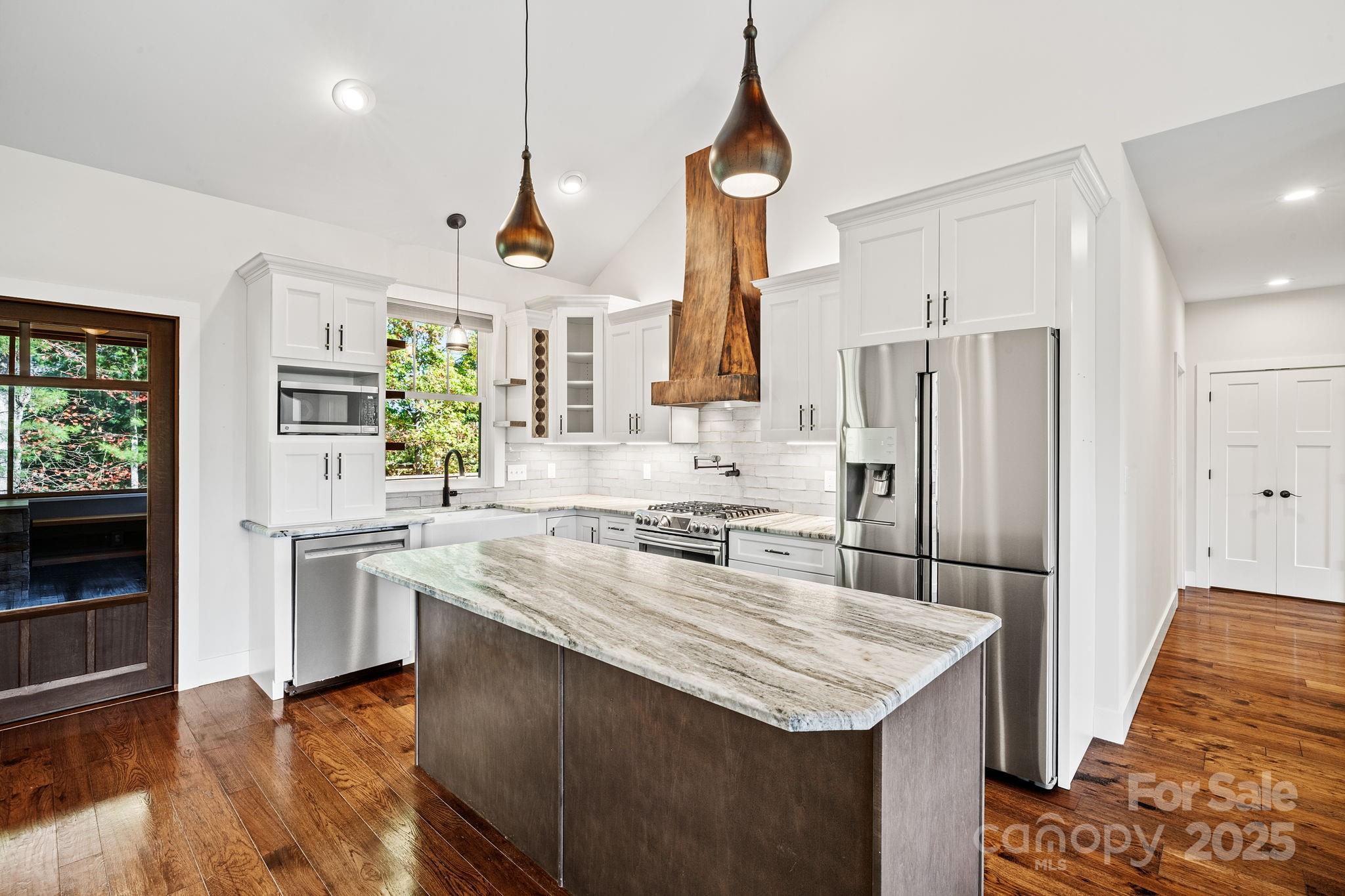 Elevated living reaches new heights at 9 Oak Mountain Drive. Set within a prestigious gated community just 20 minutes from downtown Asheville, this extraordinary custom built home was crafted with an uncompromising commitment to quality and design. From its hand-selected materials to its sweeping mountain backdrop, every detail reflects luxury at its finest. The main level unfolds with vaulted ceilings, rich wood floors, and expansive windows that frame the mountain views like living art. The chef’s kitchen pairs beauty and function with a custom copper range hood, duel fuel range, farmhouse sink, stainless appliances and more. Two elegant primary suites on the main level each feature spa-inspired baths with dual vanities and tiled walk-in showers, offering comfort and privacy for owners and guests alike. The lower level includes a third bedroom, full bath, and flexible bonus space ideal for a gym, studio, or media room. Outdoor living is exceptional, enjoy the screened porch with its stone fireplace, a pergola patio with a second fireplace, and a heated and cooled workshop. Thoughtfully designed, flawlessly built, and perfectly placed, this home defines modern mountain luxury.