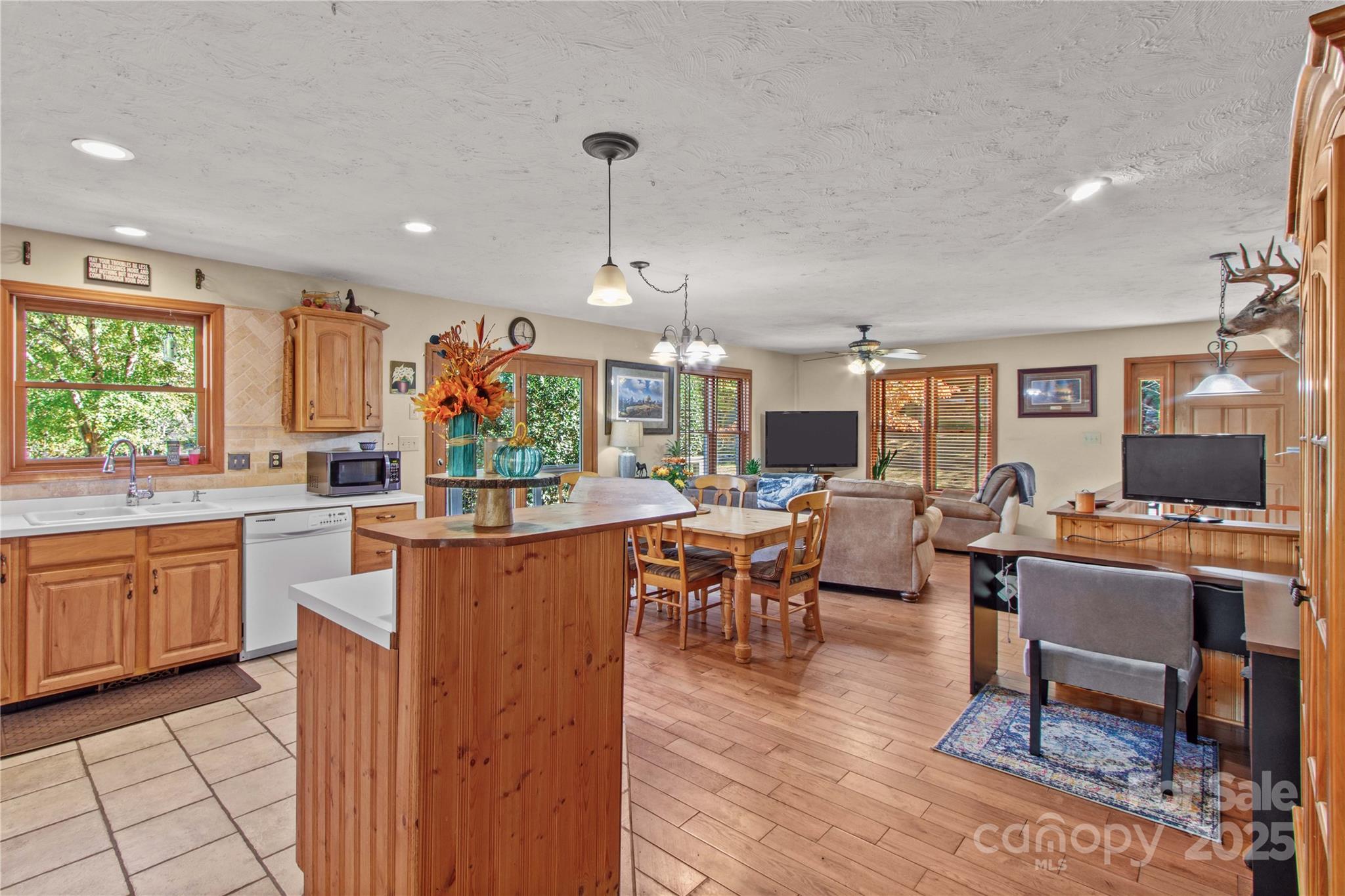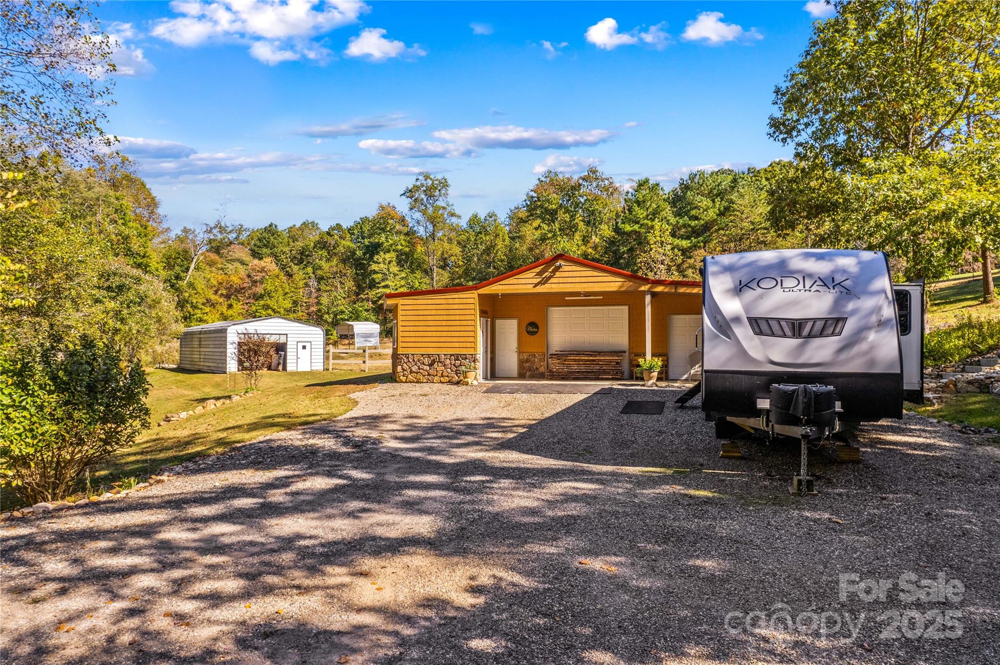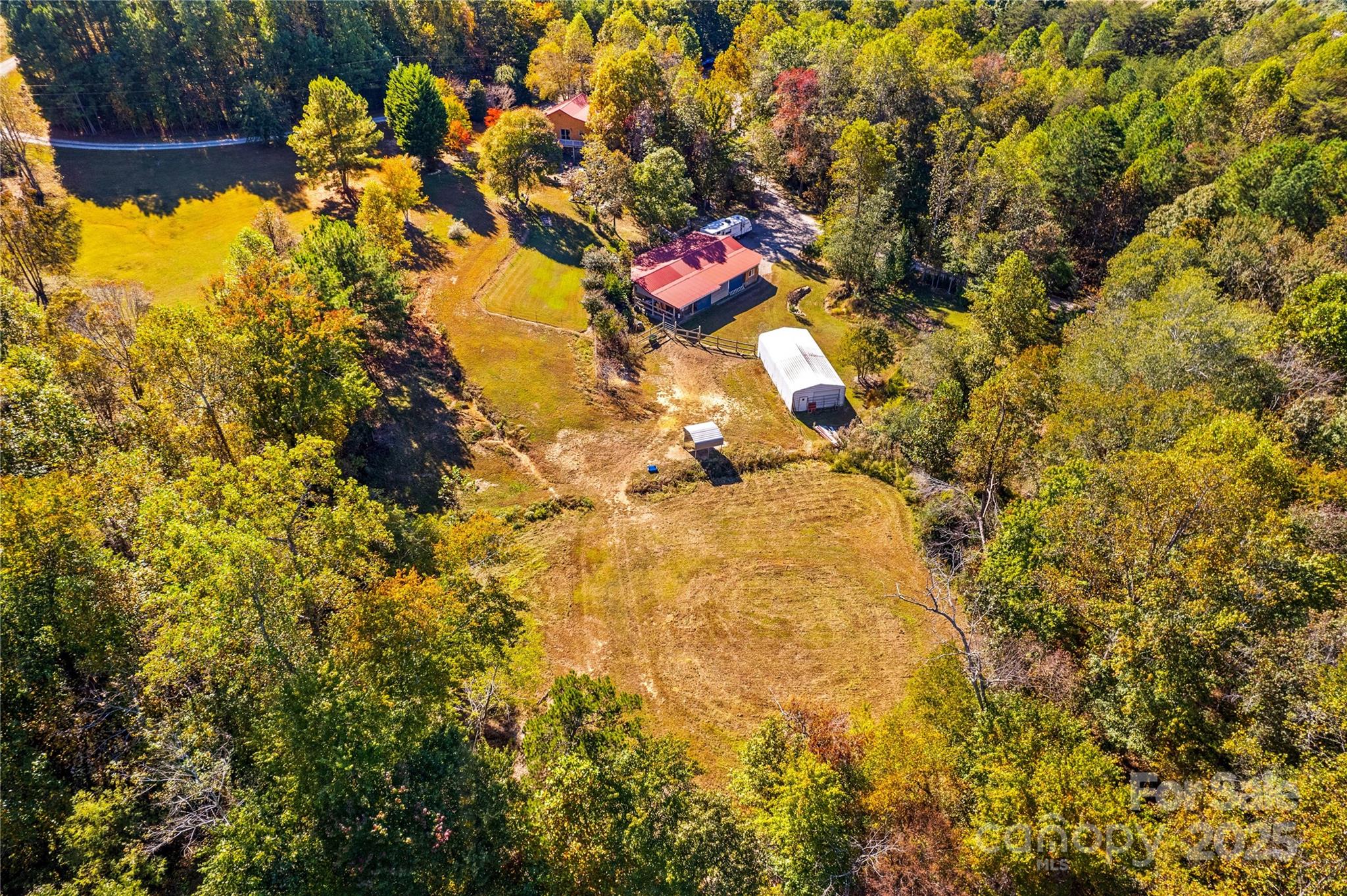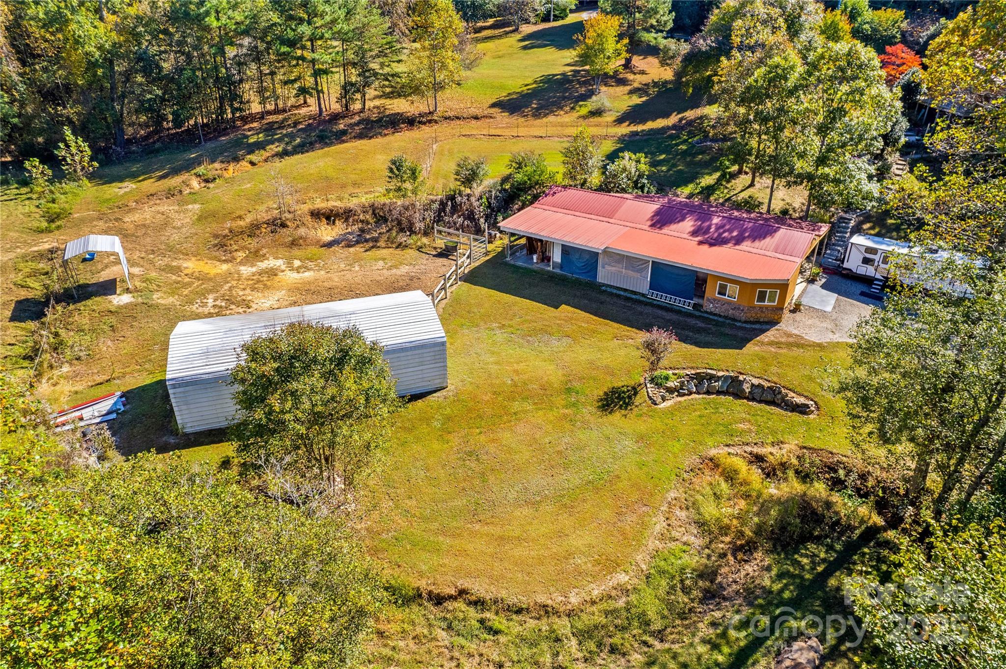 This charming home sits on 2.78 acres of gorgeous land with a partially finished basement. The main level offers a primary suite, half bath, and spacious living areas. Kitchen includes recessed lighting, breakfast bar, matching appliances, and provides direct access to the deck for enjoying breakfast with a view. The lower level has a bedroom, full bath, a bar area, and a bonus room that would be ideal for guests. Interior and exterior access to the basement makes it an ideal space for second living quarters or multi-generational living. Outside, you’ll find a 20x40 metal storage shed and a 42x62 shop/barn with 200-amp service, insulated walls and ceilings, two garage doors, hay and general storage, two RV hookups, and two horse stalls. The property also includes fenced pasture, a creek, and partially wooded surroundings for added privacy and natural charm.