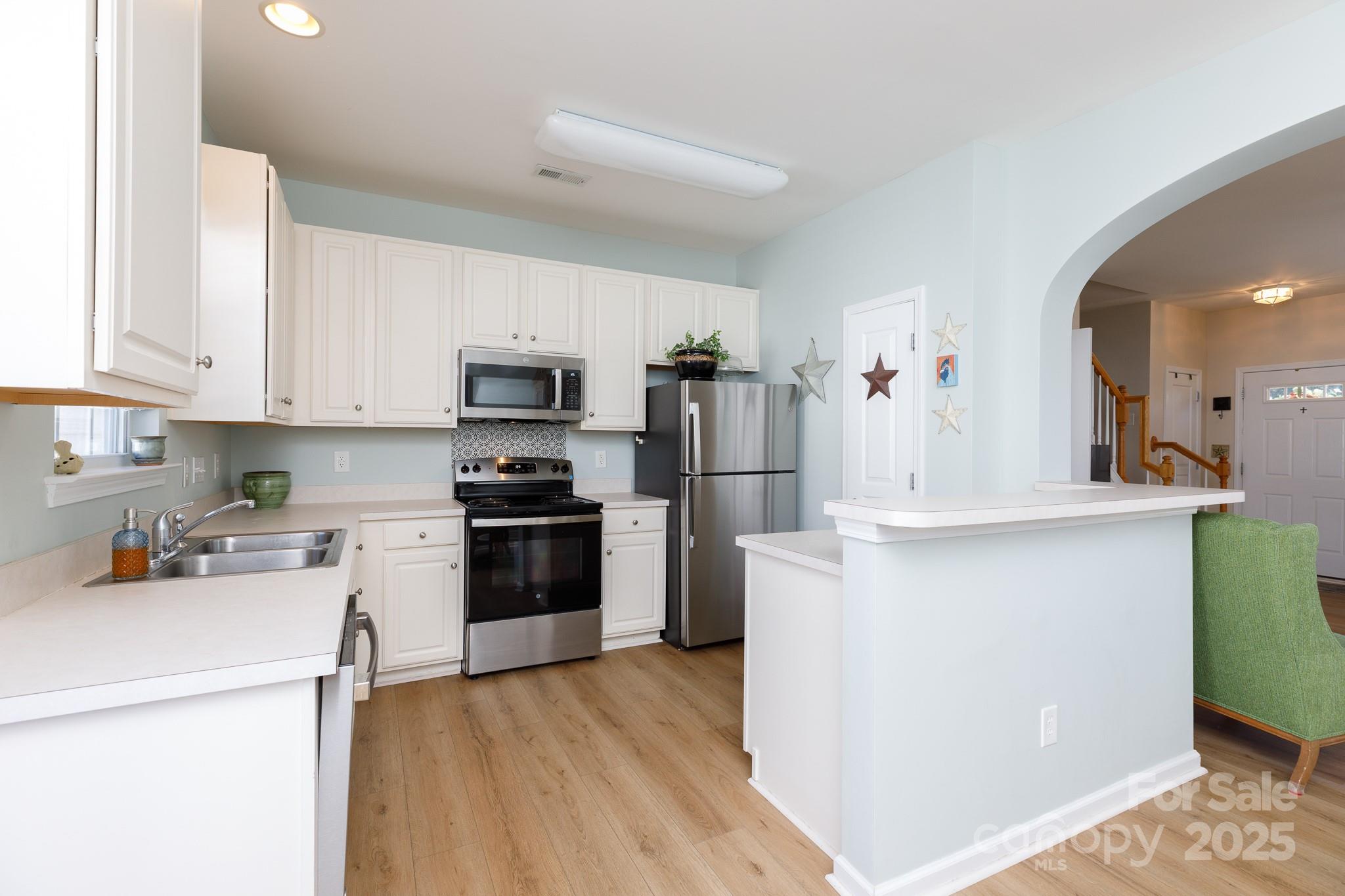 Welcome to effortless living in Ridge Pointe! This charming townhome offers fantastic neighborhood amenities like a community pond, pool, and playground. The heart of the home is the inviting den, complete with a cozy fireplace, seamlessly flowing into a spacious kitchen. Here, you'll find stainless steel appliances, a breakfast bar, a pantry, and a large dining area perfect for gatherings. Retreat to the primary bedroom suite, a private sanctuary featuring a huge walk-in closet and a luxurious, large walk-in shower. Functional details like the tankless water heater and an installed stair-lift add to the home's ease of living. Enjoy your mornings on the lovely front porch or step out to the privacy-fenced back area with a patio and attached exterior storage. Best of all, the location is unbeatable—close to all assigned schools, shopping, and local dining spots.
