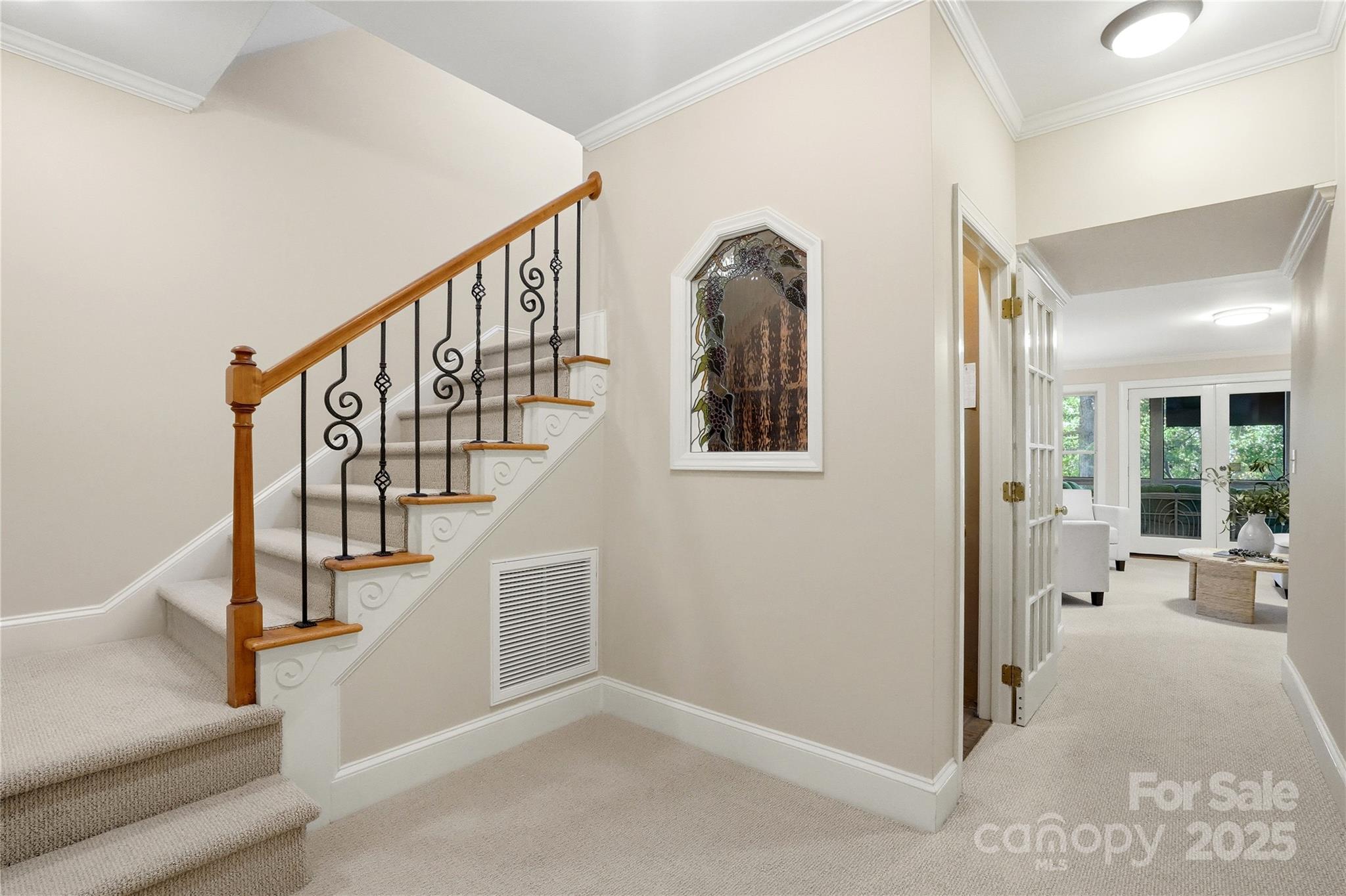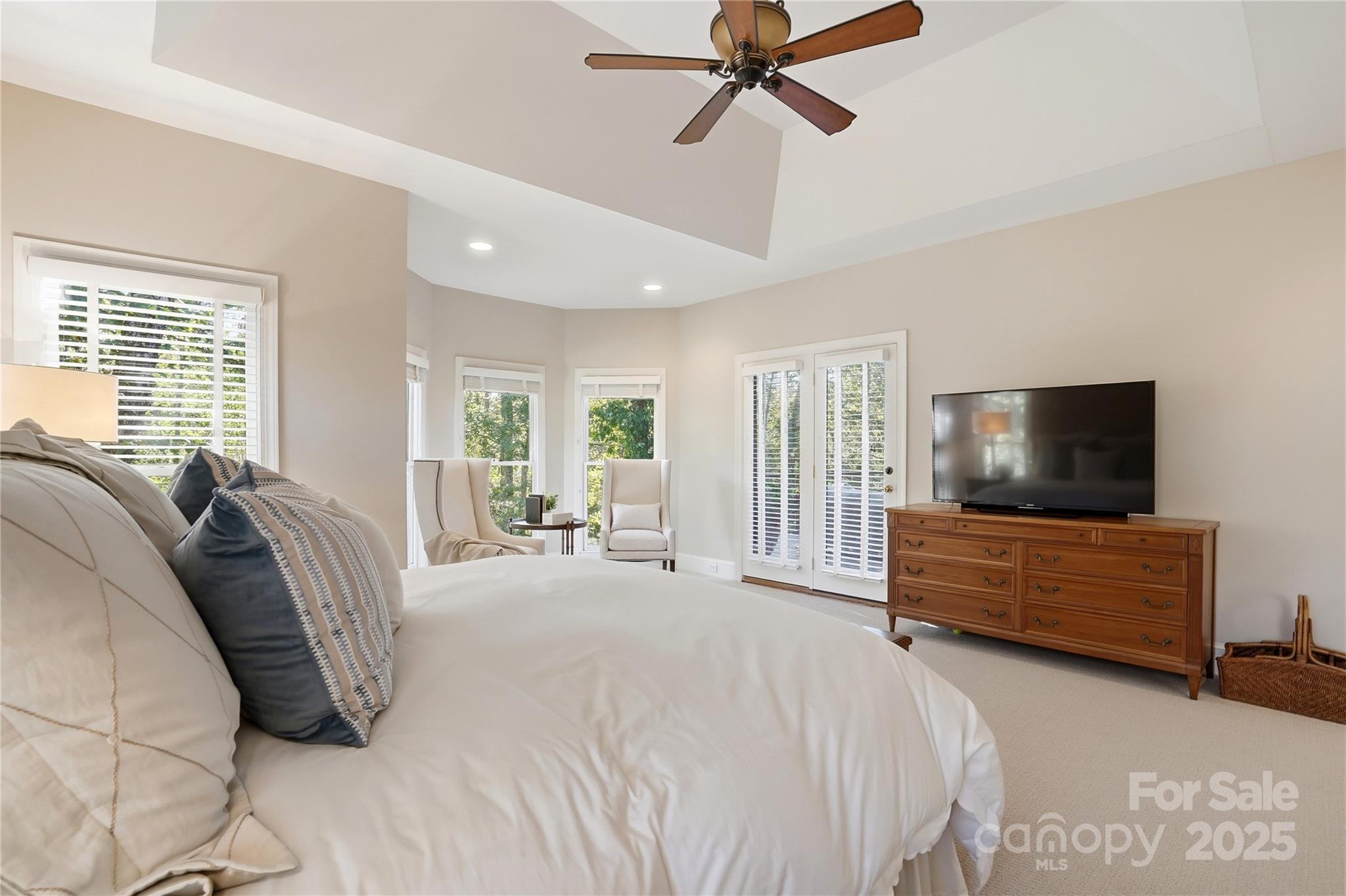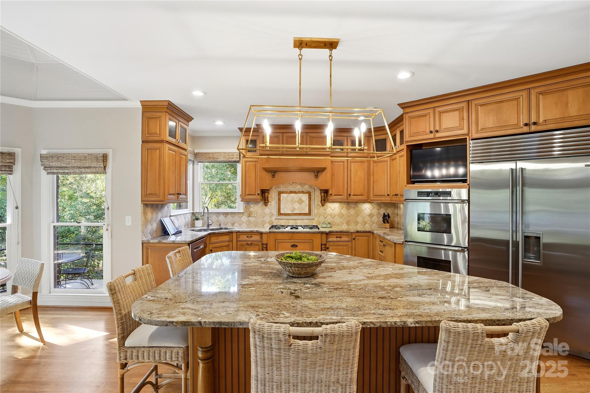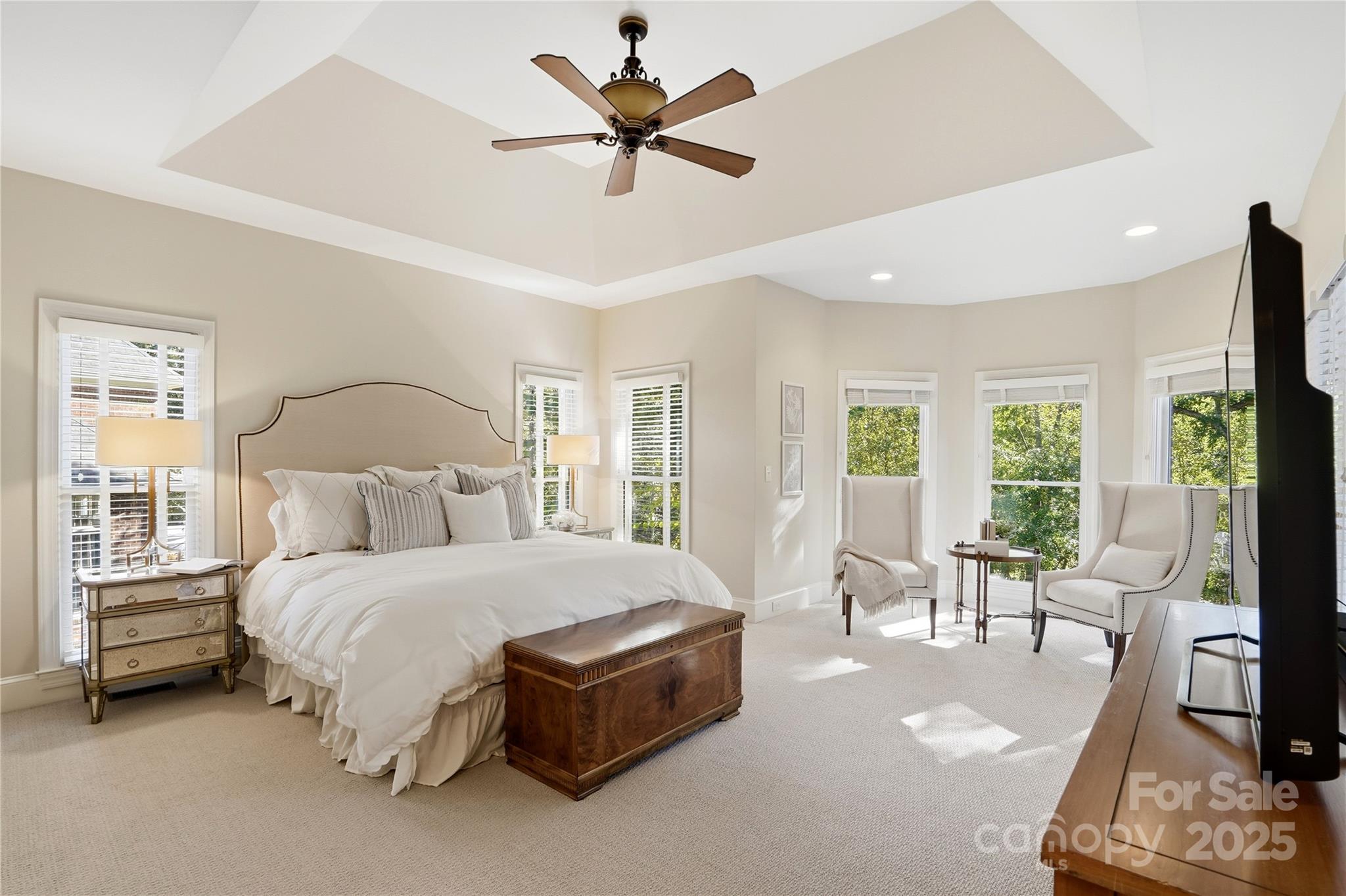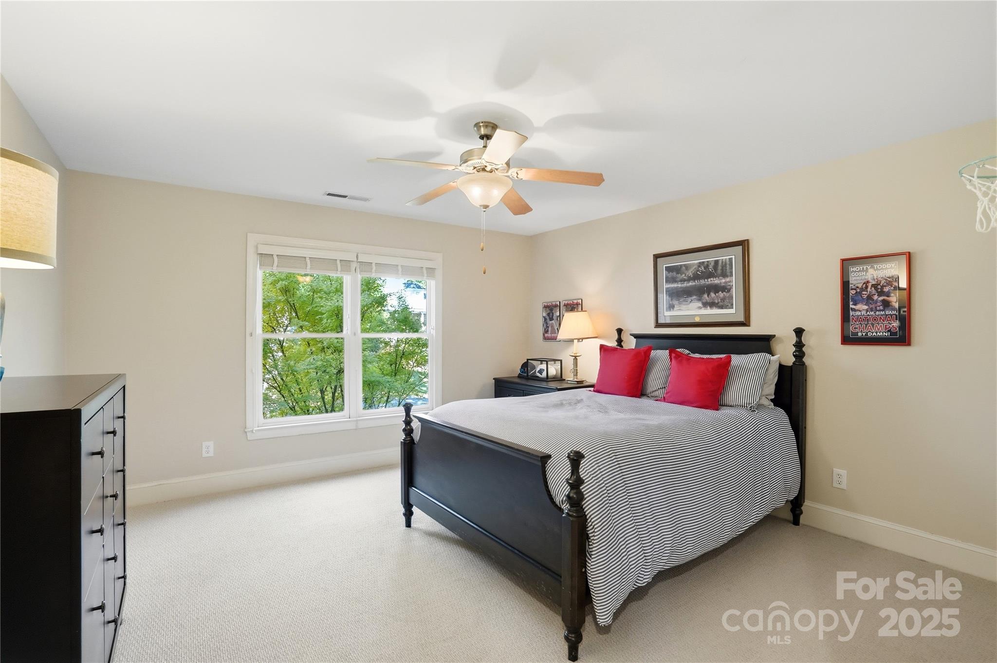 Welcome to this stunning home in the highly sought-after Carrington community! This exceptional two-story BASEMENT home truly has it all—offering 5 bedrooms, a bonus room with a back staircase, and 4 full plus 1 half baths. The impressive chef’s kitchen features a Sub-Zero refrigerator (new in 2022), double ovens, warming drawer, a large center island with seating, and a walk-in pantry. A dramatic vaulted ceiling and French door leading to the deck add volume and light to the breakfast area. Additional French doors from the adjoining family room fill the space with bright light and beautiful panoramic views of the expansive backyard (Lot is .83 acres). The main level also includes elegant formal dining and sitting room (currently used as an office). The primary suite is a true retreat. Sitting area, French doors to the deck, spacious walk-in closet, dual vanities, garden tub, separate shower, private water closet, and heated floors complete the luxurious retreat. The AMAZING WALK OUT BASEMENT features custom wine storage, wet bar, cozy den with fireplace, and a generous bedroom en suite with a walk-in closet and attached bath—plus an additional room that could serve as another bedroom or flex space. Enjoy the outdoors from the main-level expansive maintenance-free composite deck (new in 2022), offering private views, or unwind on the lower-level screened porch all overlooking the large backyard. From the screened porch, enjoy the big game on the mounted TV along with scenic views of the backyard. This home has been meticulously maintained, with a new roof (2022), two HVAC systems (2023 & 2024), and brand new carpet (2025). Carrington is a vibrant neighborhood with a pool, clubhouse, tennis, pickleball, and basketball courts, all supported by a low HOA. Residents love the year-round swimming made possible by the covered pool and the many community holiday events held throughout the year.