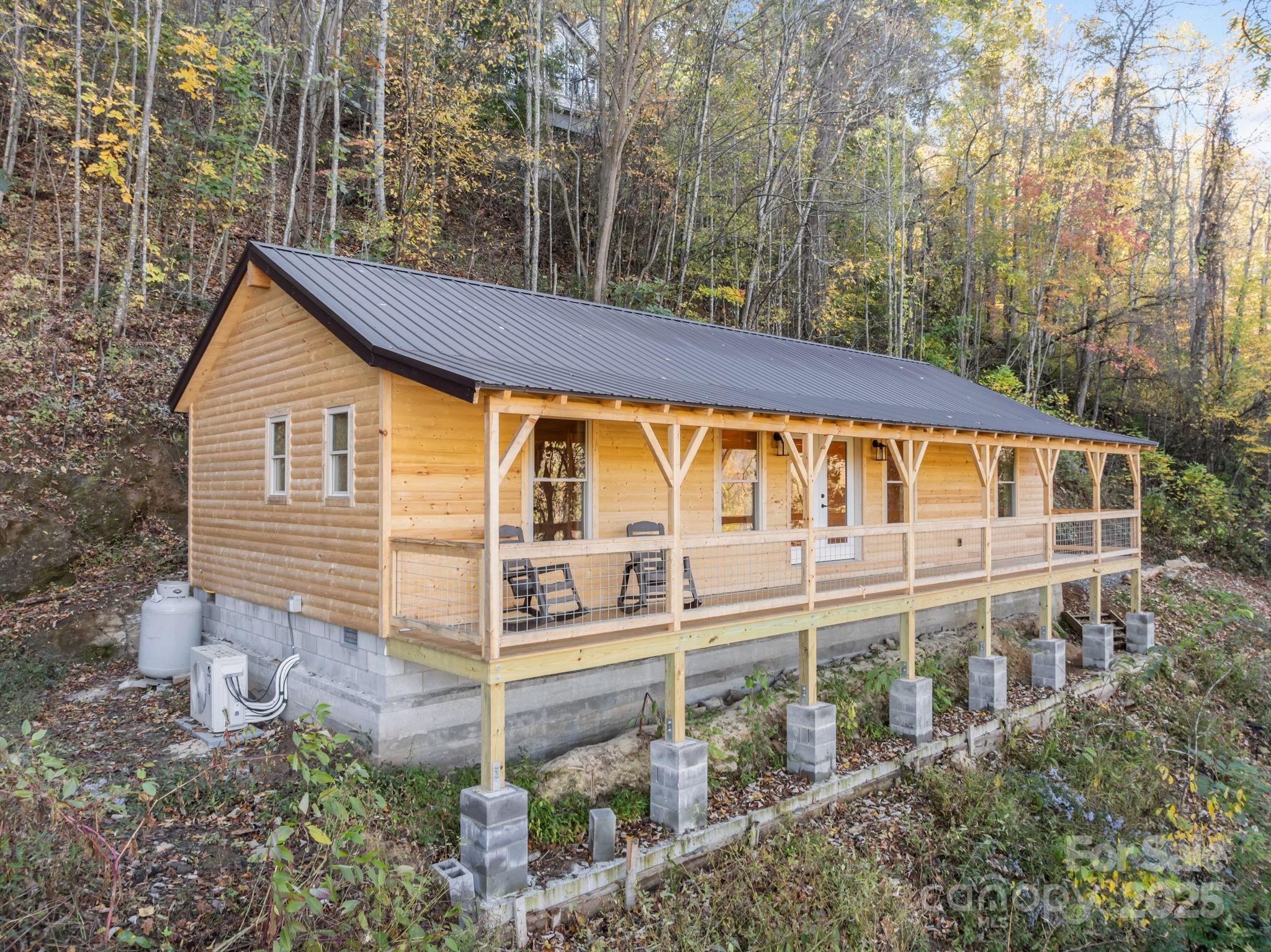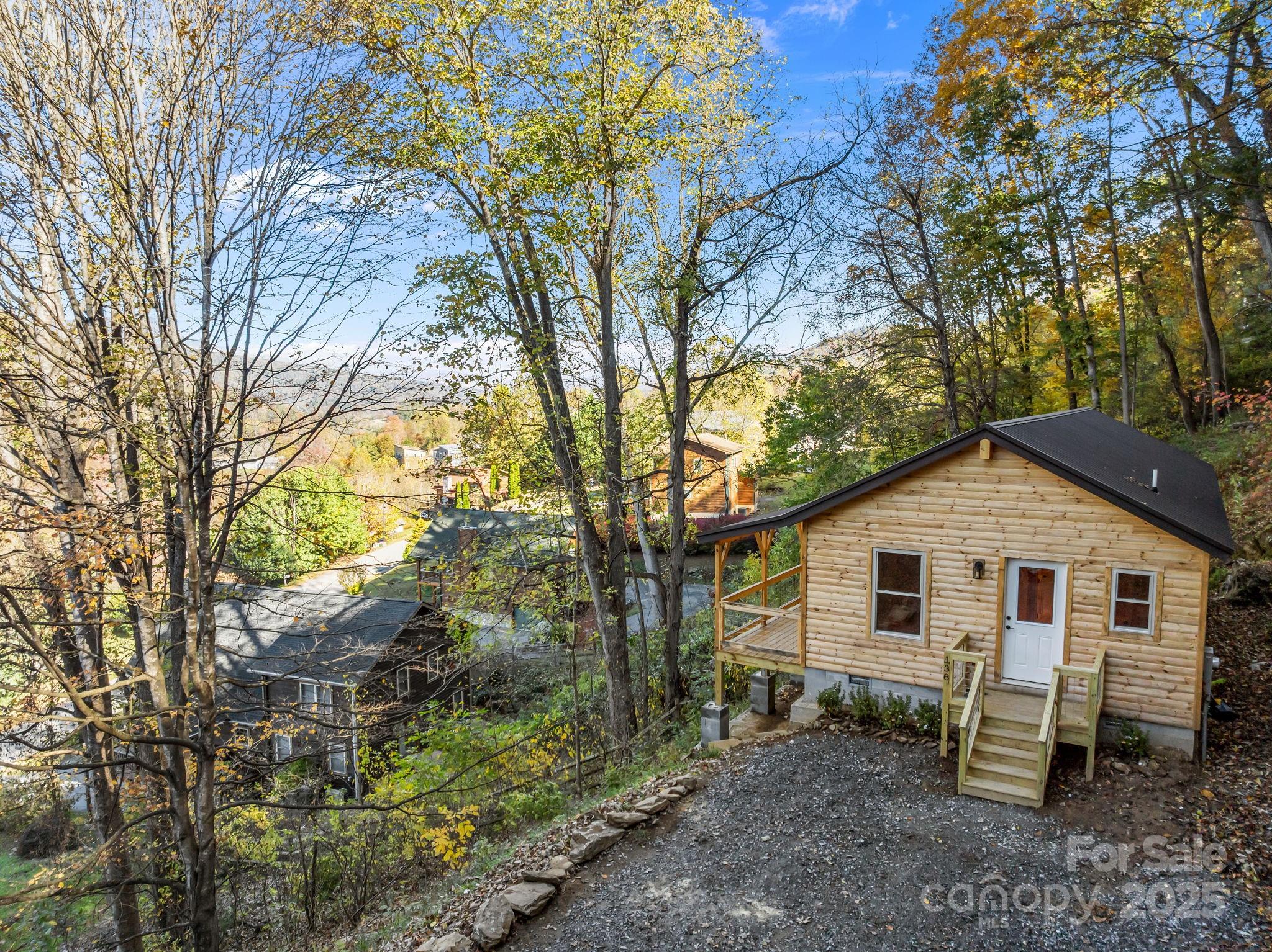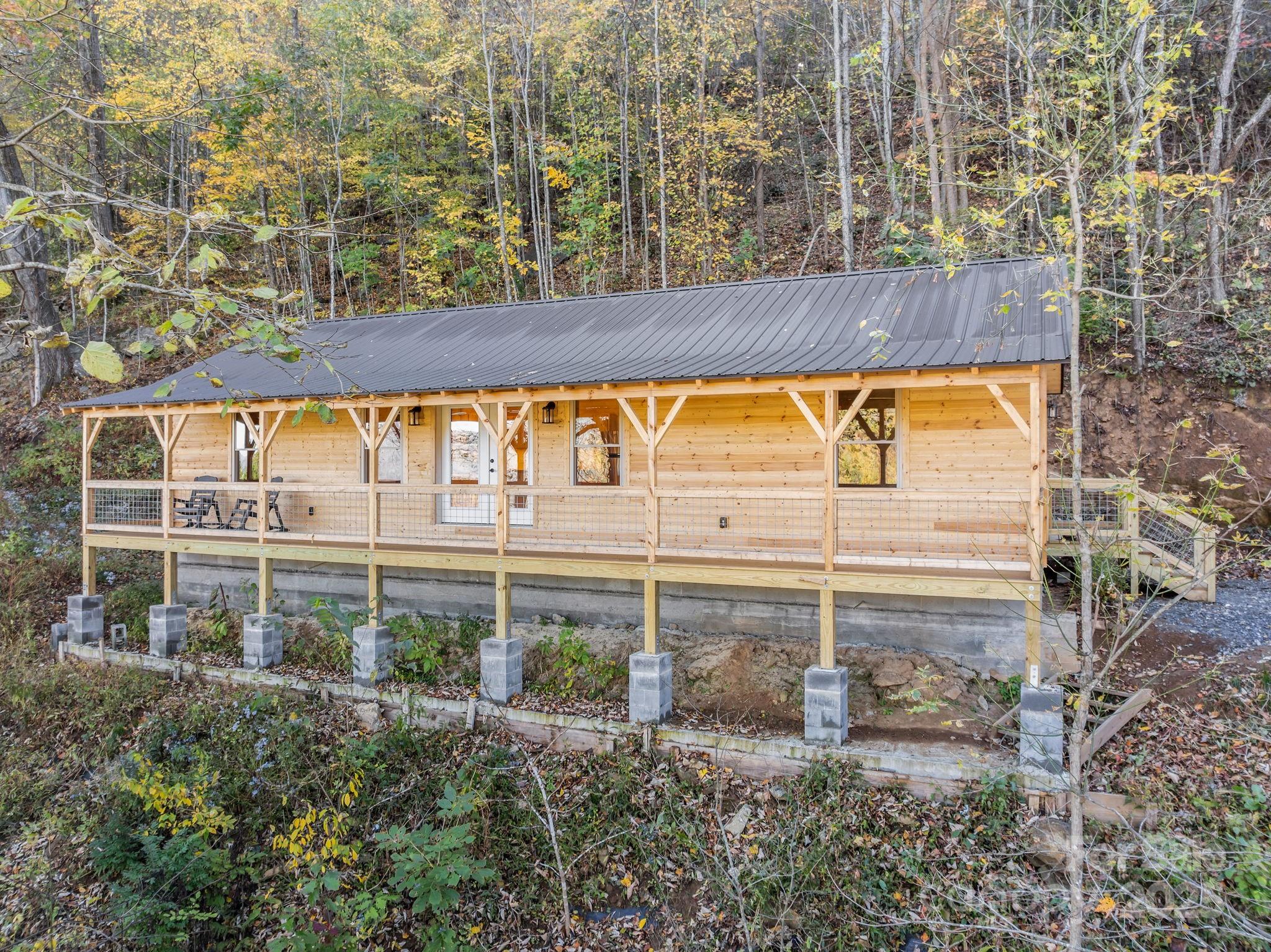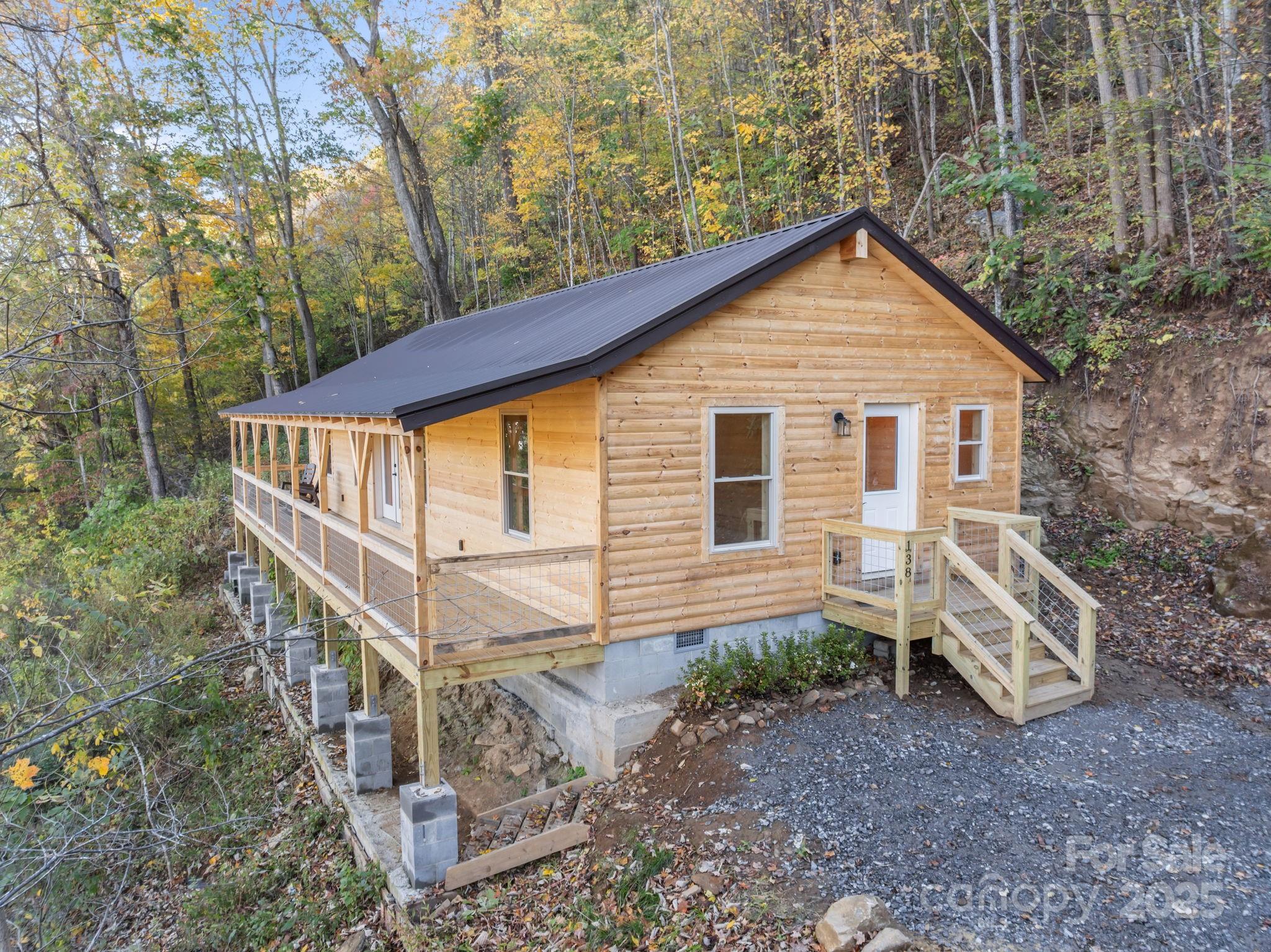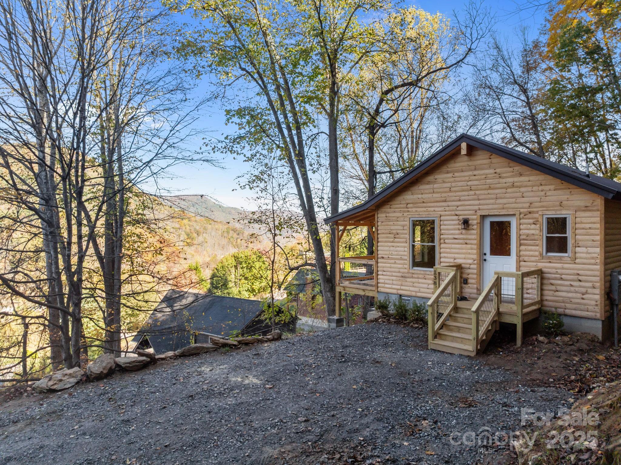 BRAND NEW CABIN WITH MOUNTAIN VIEWS! Discover the charm of this brand-new cabin, thoughtfully designed to combine rustic warmth with modern comforts. This single-family retreat offers 2 bedrooms, 2 full baths, and one-level living, all set beneath soaring 13-foot ceilings in the main living area. The open floor plan is wrapped in rich wood finishes, creating a cozy yet spacious feel throughout. The kitchen is as functional as it is beautiful, featuring custom cabinetry and leathered granite countertops that add a touch of natural elegance. Each detail has been crafted with care, making this home both inviting and practical for everyday living or vacation stays. Step outside to enjoy the impressive 50-foot covered porch—perfect for relaxing, entertaining, or simply soaking in the serene mountain views. The nearly one-acre lot provides privacy and a lush natural setting, with paved driveway, and ample parking for guests. This property balances peaceful seclusion with investment potential, as the neighborhood allows short-term rentals. Whether you’re searching for a private getaway, a full-time residence, or an income-producing retreat, this home is designed to fit your needs.