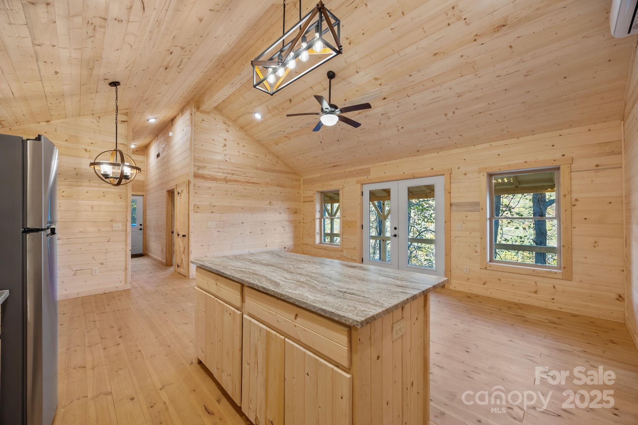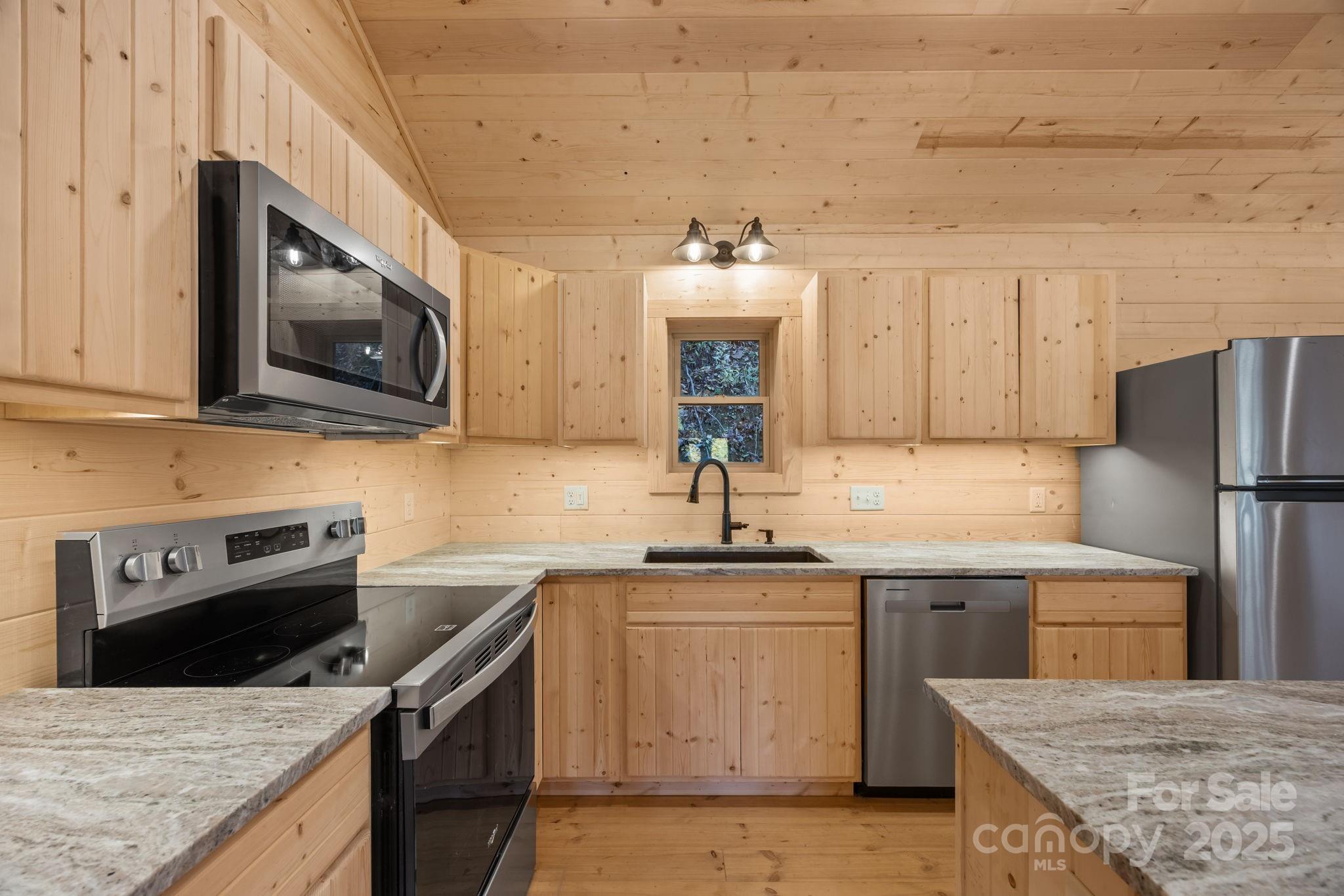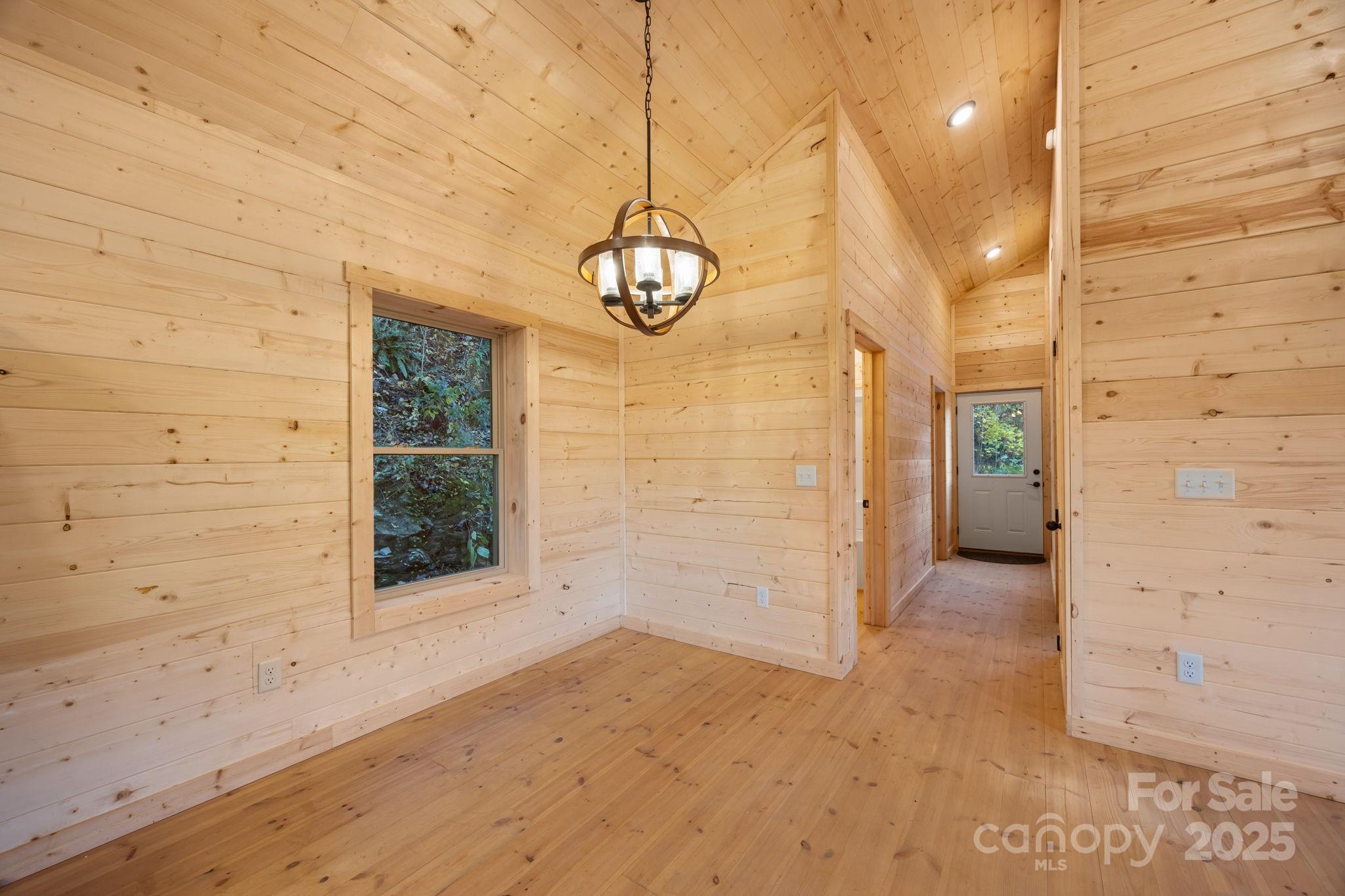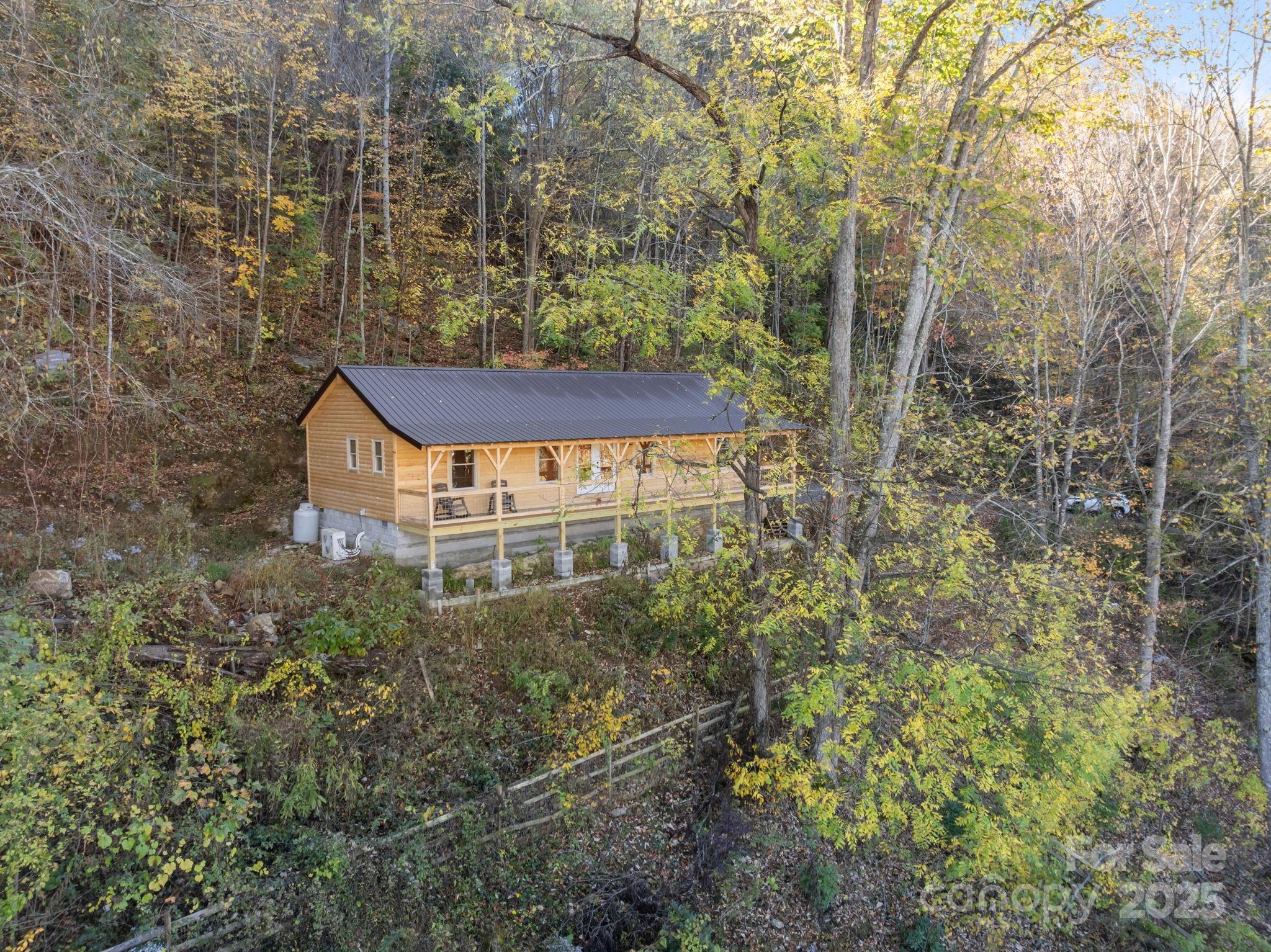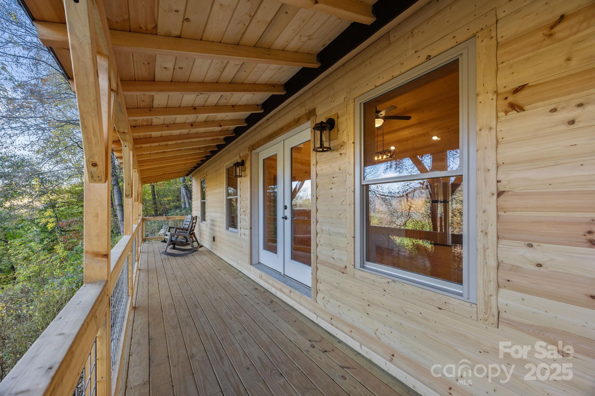 BRAND NEW CABIN WITH MOUNTAIN VIEWS! Discover the charm of this brand-new cabin, thoughtfully designed to combine rustic warmth with modern comforts. This single-family retreat offers 2 bedrooms, 2 full baths, and one-level living, all set beneath soaring 13-foot ceilings in the main living area. The open floor plan is wrapped in rich wood finishes, creating a cozy yet spacious feel throughout. The kitchen is as functional as it is beautiful, featuring custom cabinetry and leathered granite countertops that add a touch of natural elegance. Each detail has been crafted with care, making this home both inviting and practical for everyday living or vacation stays. Step outside to enjoy the impressive 50-foot covered porch—perfect for relaxing, entertaining, or simply soaking in the serene mountain views. The nearly one-acre lot provides privacy and a lush natural setting, with paved driveway, and ample parking for guests. This property balances peaceful seclusion with investment potential, as the neighborhood allows short-term rentals. Whether you’re searching for a private getaway, a full-time residence, or an income-producing retreat, this home is designed to fit your needs.