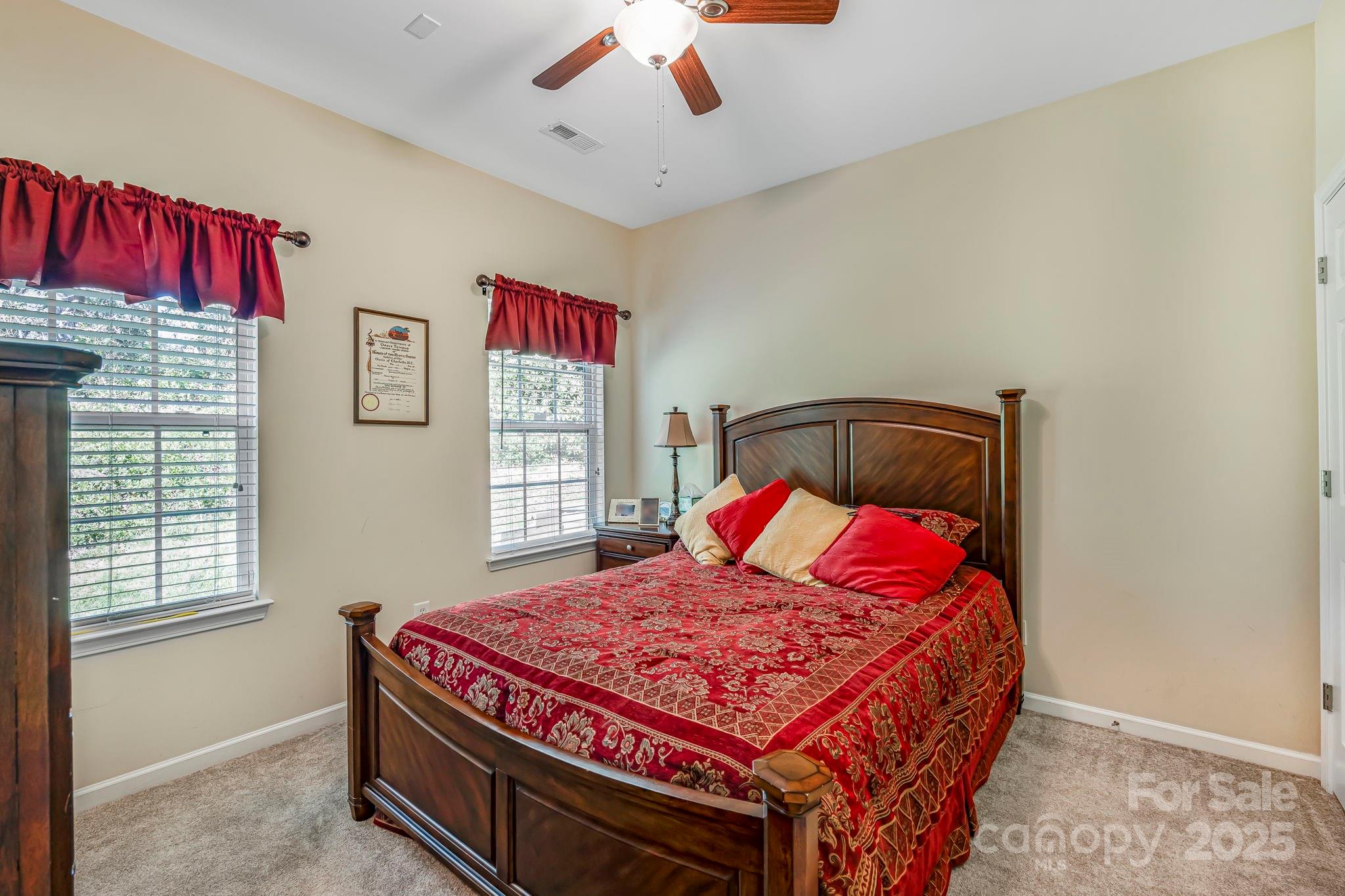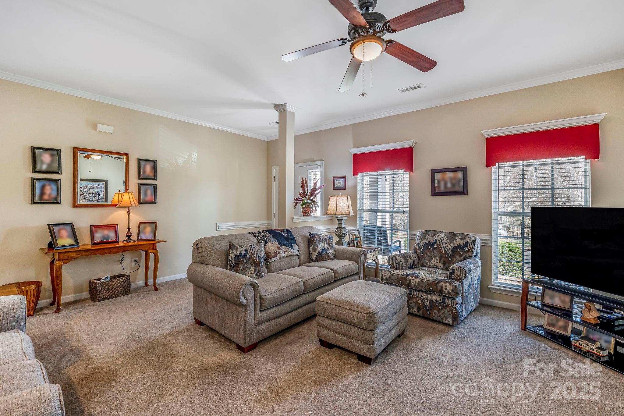 This charming 3 BDR, 2 BA one-level, end unit home is conveniently located in Catawba Hills subdivision. The home boasts an open & spacious floor plan featuring a large, eat-in kitchen with plenty of counter & cabinet space. A separate dining room is located conveniently off the kitchen. The primary BDR offers an added space for a sitting or flex area & is complemented by en suite w/ a walk-in shower & tub, a dual vanity & large closet. Both of the secondary bedrooms are comfortably-sized w/ spacious closets. The guest BA and laundry are centrally located, w/ the guest bath featuring a walk-in shower. A neutral color palette throughout makes this home move-in ready! The home also features a one-car garage & a fully enclosed back patio for privacy. Maintenance-free living at its best! *Recent updates per seller: newer carpet, bathroom tile, hot water heater, dish washer, garage door motor & opener & A/C coil replaced.* Neighborhood amenities include & outdoor pool & clubhouse.