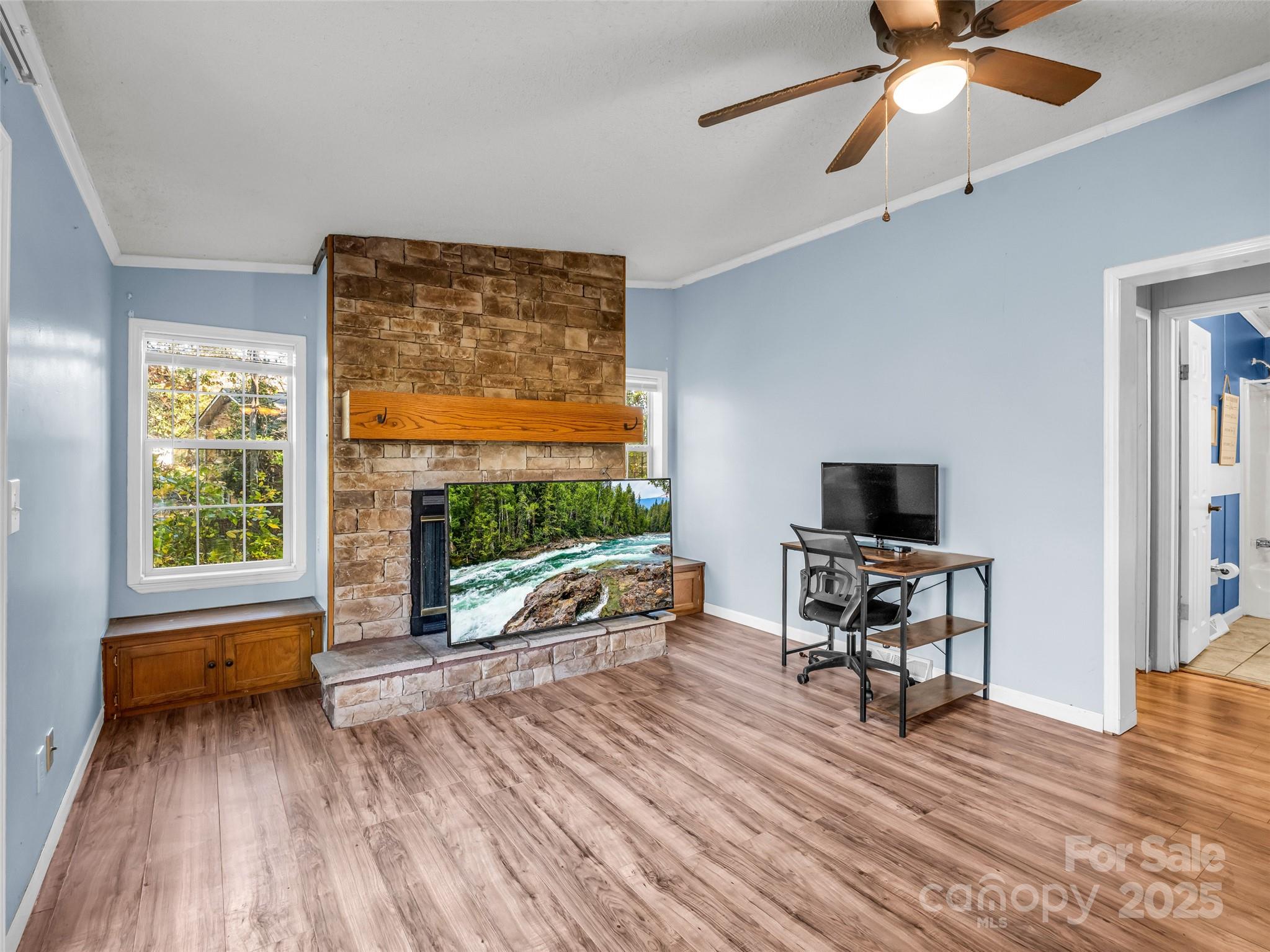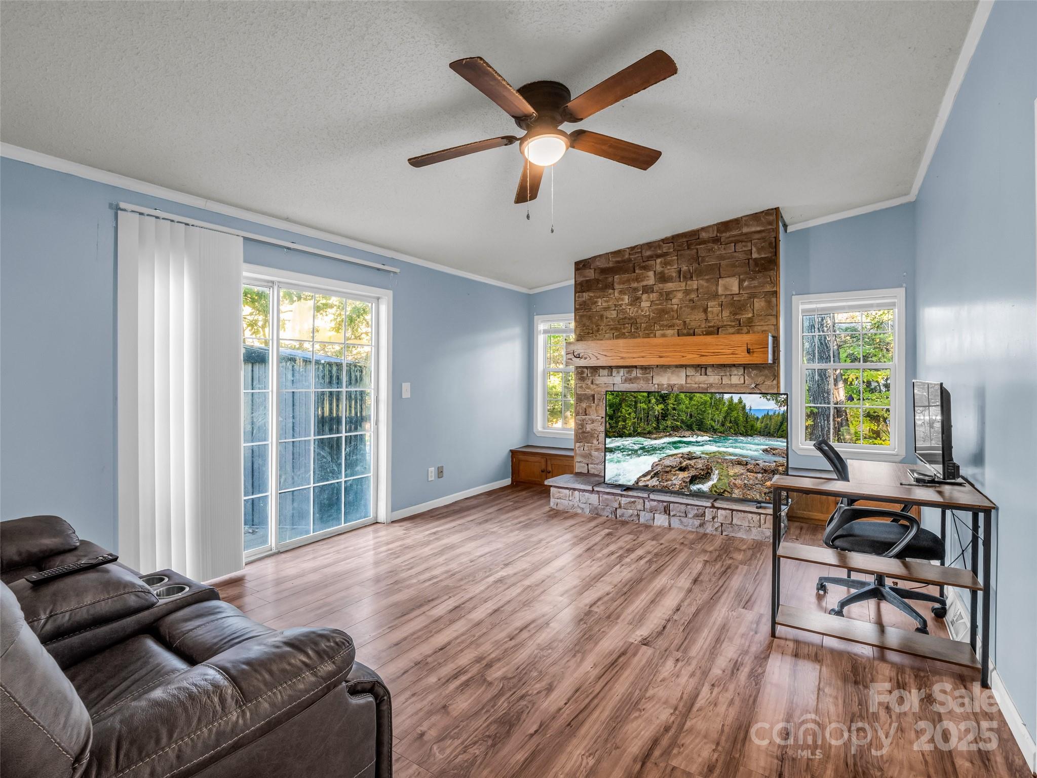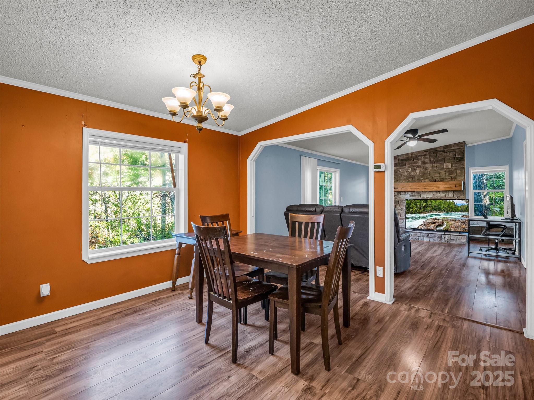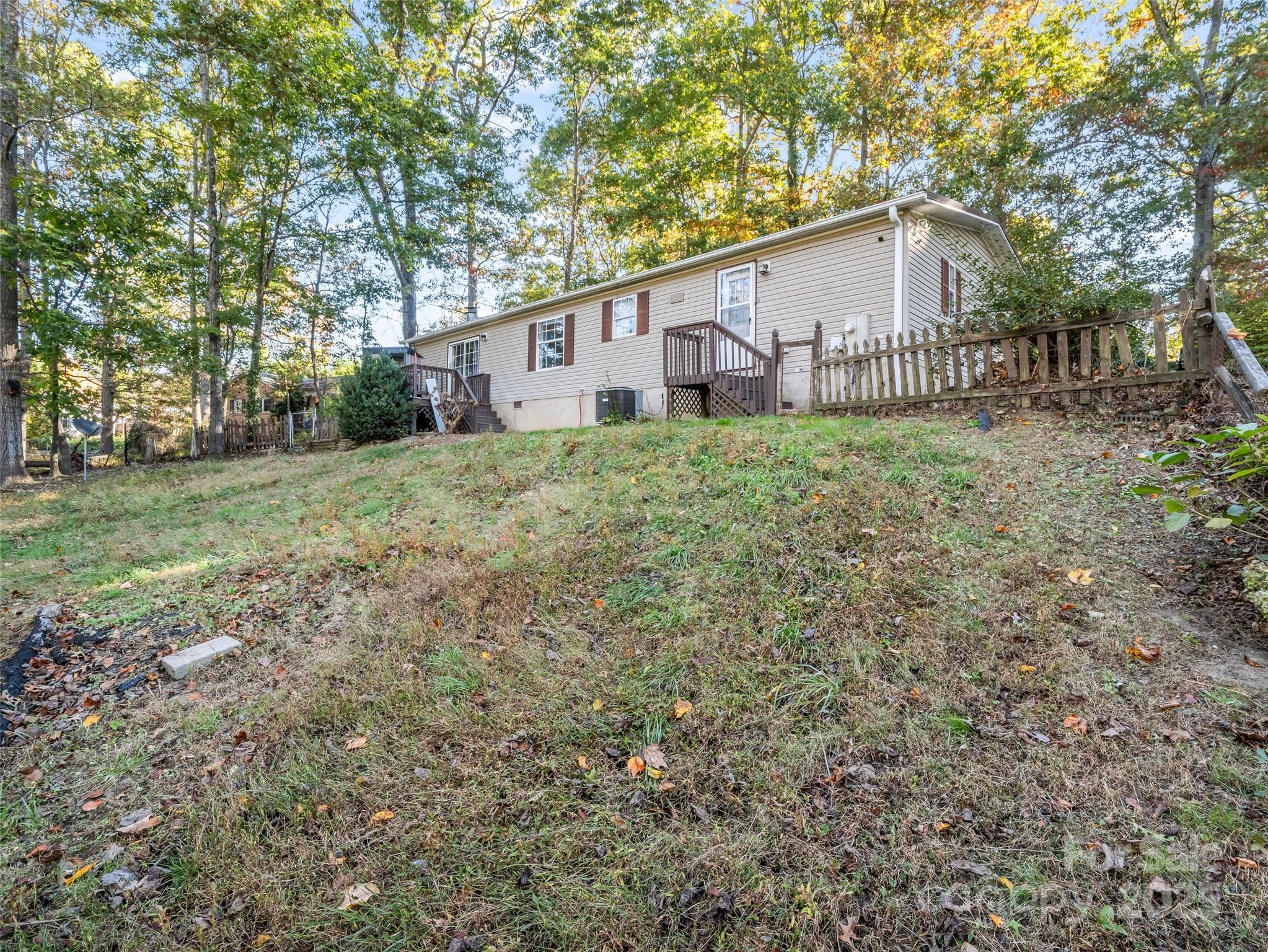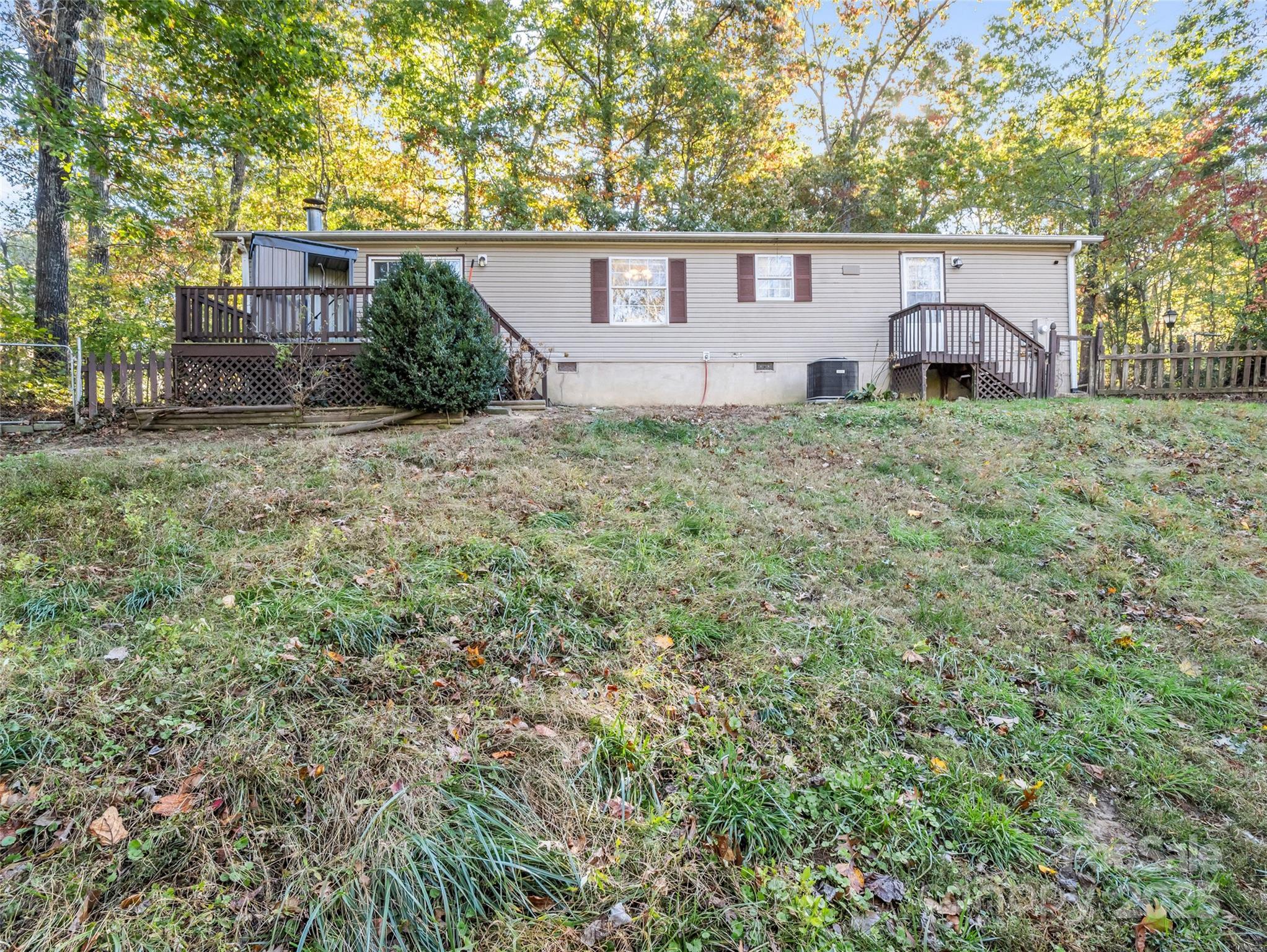 Tucked away in the peaceful trees of Flat Rock, this inviting home offers privacy, freedom, and all the comforts of home. Set on nearly half an acre with a fully fenced backyard, it’s the perfect place to let pets roam or enjoy quiet evenings under the stars. Inside, the home features a split-bedroom layout with both a family room and a living room — ideal for entertaining or creating separate spaces for work and play. The kitchen is generous in size with ample cabinets and an easy flow to the dining and living areas that open to a small back deck. A stone fireplace with a gas log insert adds warmth and charm — simply connect a propane tank and enjoy cozy winter nights by the fire. With city water, septic, no HOA, and only county taxes, this home offers the flexibility you’ve been looking for, whether you’re a first-time buyer, investor, or simply ready to put down roots in Flat Rock.