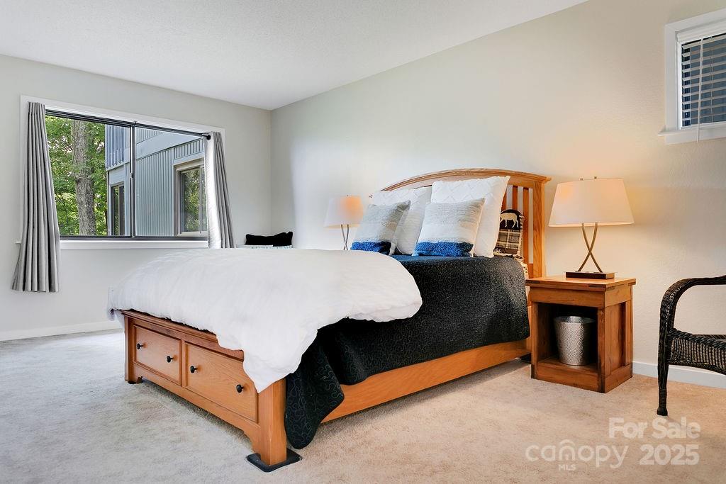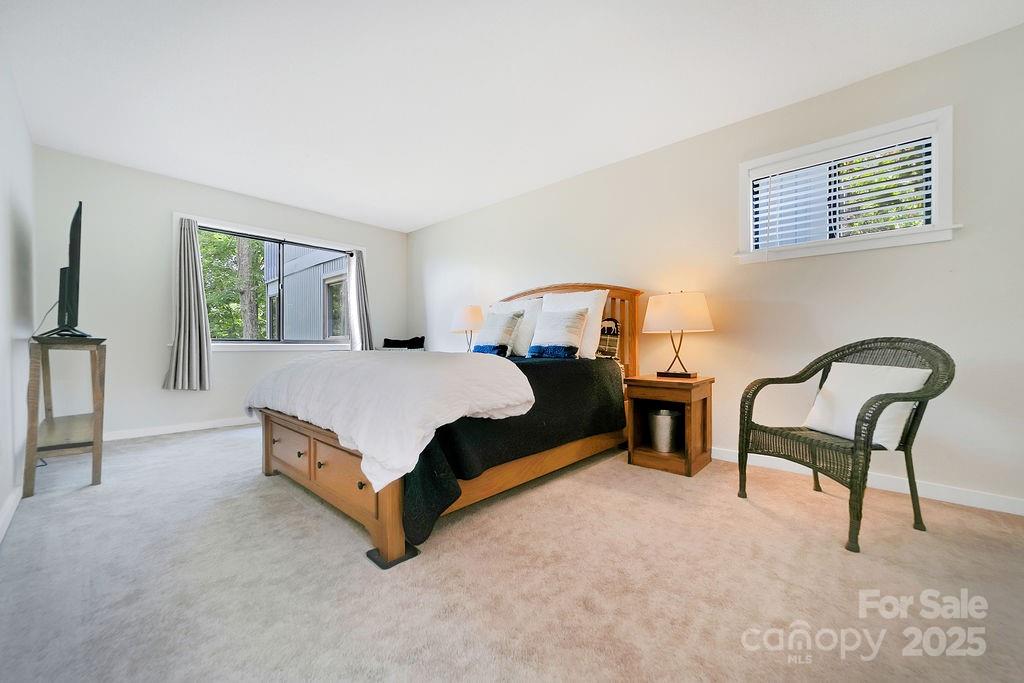 Freshly renovated with designer sensibilities, this furnished & pristine Connestee Falls condo delivers layered mountain views & single-level living. Continuous hardwood floors create continuity in the open living area, while the sleek, tiled fireplace adds a contemporary feel to the space. The spacious sunroom boasts wrap-around windows for enjoying the year-round mountain views, abundant nature & privacy. Both baths have been lovingly updated with stylish cabinetry, fixtures & custom tiled walk-in showers. The spacious primary suite, with a walk-in closet & roomy bath, is situated at the back of the condo for privacy. The outdoor community grill area is located steps away from the front door. A new HVAC w/ dehumidifier was recently installed for enhanced comfort & indoor air quality. Located a quick drive to Connestee's main gate, Lake Atagahi & the clubhouse, this property enjoys a fabulous location within the community. New residents pay a $13,500 one-time amenity fee at closing.