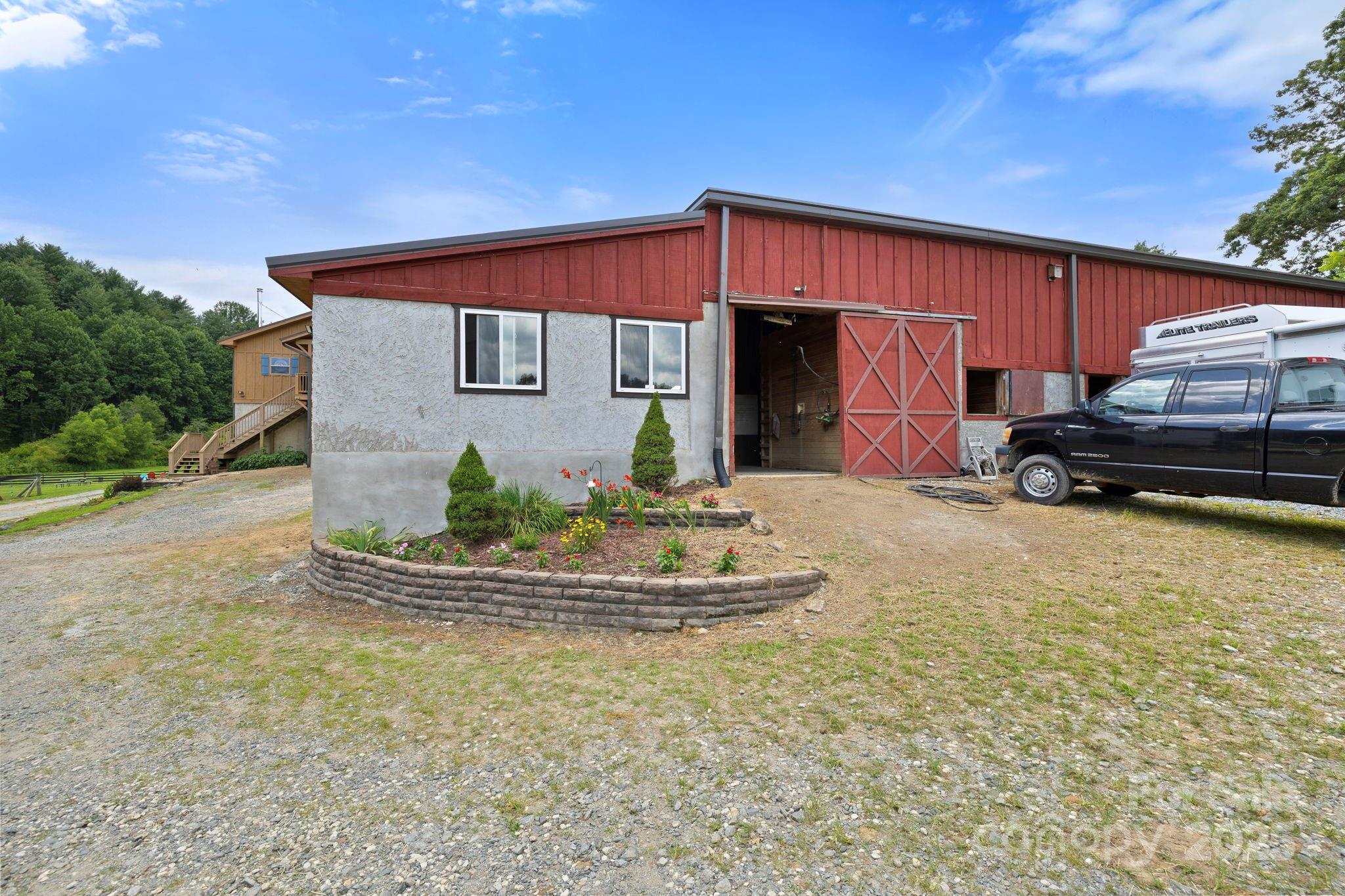 Discover your equestrian paradise on this exceptional 10.59-acre farm positioned in Horse Shoe, close to both DuPont and Pisgah Forests. World Class facility combines professional-grade amenities w/comfortable living, creating an ideal haven for horse enthusiasts and professionals alike. Established Boarding Business in place, insulated training barn offers 10 12x12 stalls and 2 12x16 stalls, tack room, 2 hot&cold wash racks, hay storage and a covered 140x80 indoor 4 season/all weather lit arena w/an upper level viewing room. 160x240 sq ft outdoor lit arena, round pen, multiple pastures w/run-in sheds, and tractor/shavings/tool shed w/3 add'l stalls. Main Barn offers 10 14x12 stalls, climate-controlled tack room w/full bath&wash rack. 3600sqft of living space above main barn w/2 living quarters, allowing for VRBO or housing a trainer. Mud room w/separate entrance. Trailer and RV hook ups on site w/power, water and separate septic is great for HorseHotel options. See Features List