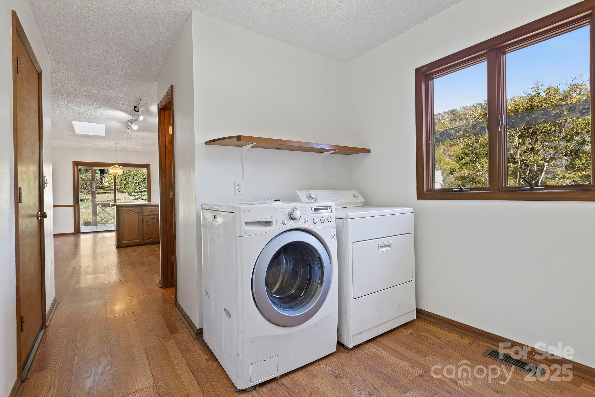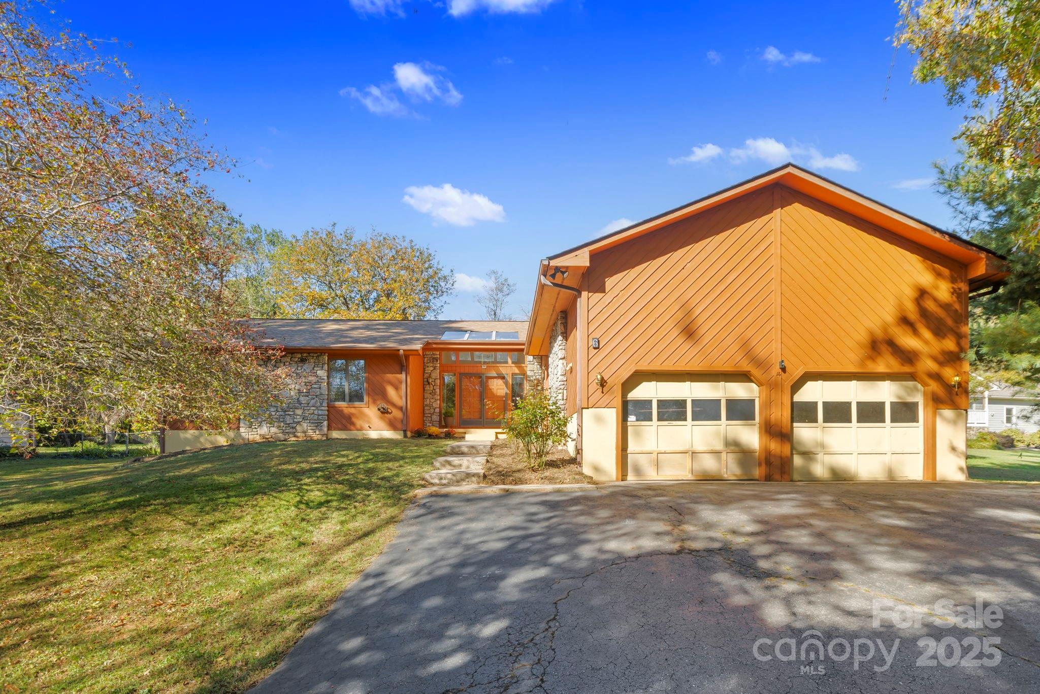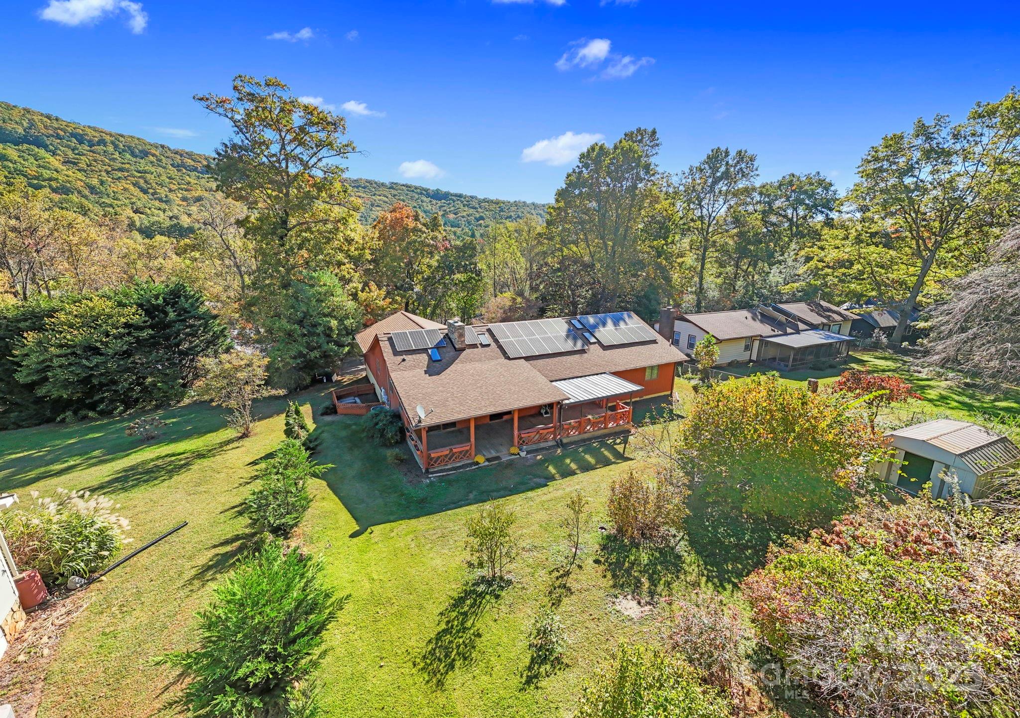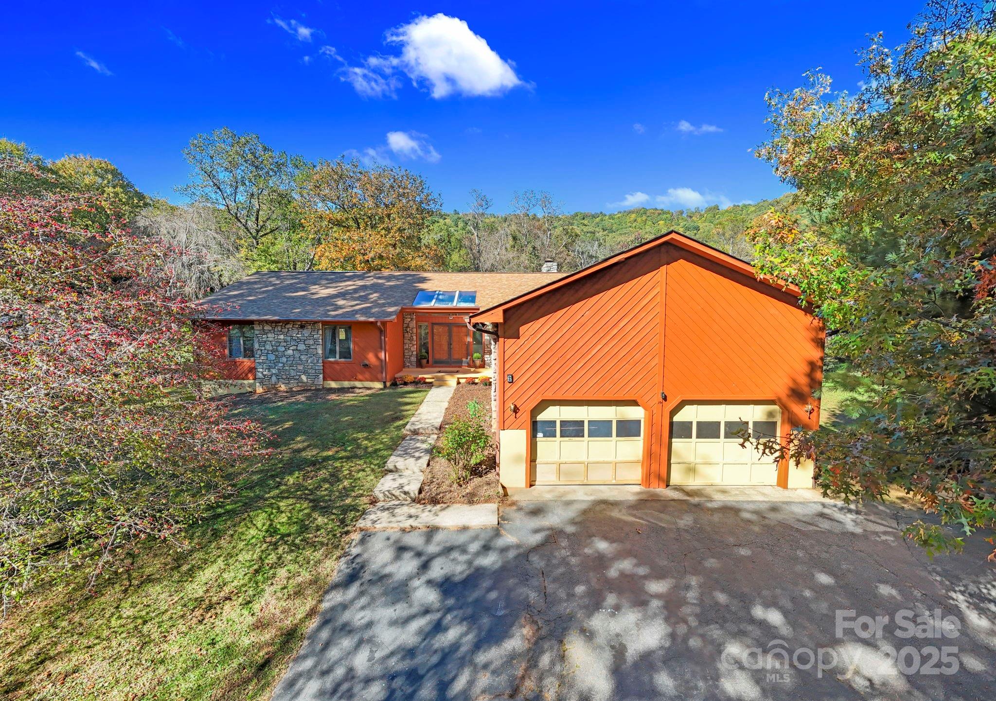 Contemporary Home located on the north end of Haw Creek with Blue Ridge Parkway Views. The walkable neighborhood offers parks, hiking trails to the parkway, restaurants, bike shop, East Asheville pool and ball field. This welcoming community is actively engaged in beautification efforts and the creation of new green spaces for all to enjoy. This stunning contemporary home is perfectly positioned at the north end of Haw Creek, offering beautiful vistas of the Blue Ridge Parkway. A grand entrance welcomes you into a thoughtfully designed floor plan highlighted by abundant natural light from large skylights throughout. The formal living room, den, and kitchen each open onto a covered deck—perfect for effortless indoor-outdoor entertaining. The spacious, open kitchen captures a picturesque view of Sondley Mountain, while the gently sloping backyard provides both privacy and scenic view of the Haw Creek overlook off the Blue Ridge Parkway. The large finished basement offers endless possibilities—ideal for a media room, den, or office—and includes a charming stone-walled patio where you can relax and enjoy the peaceful northeast side of the property. A generous mechanical room provides additional space perfect for storage or hobbies.