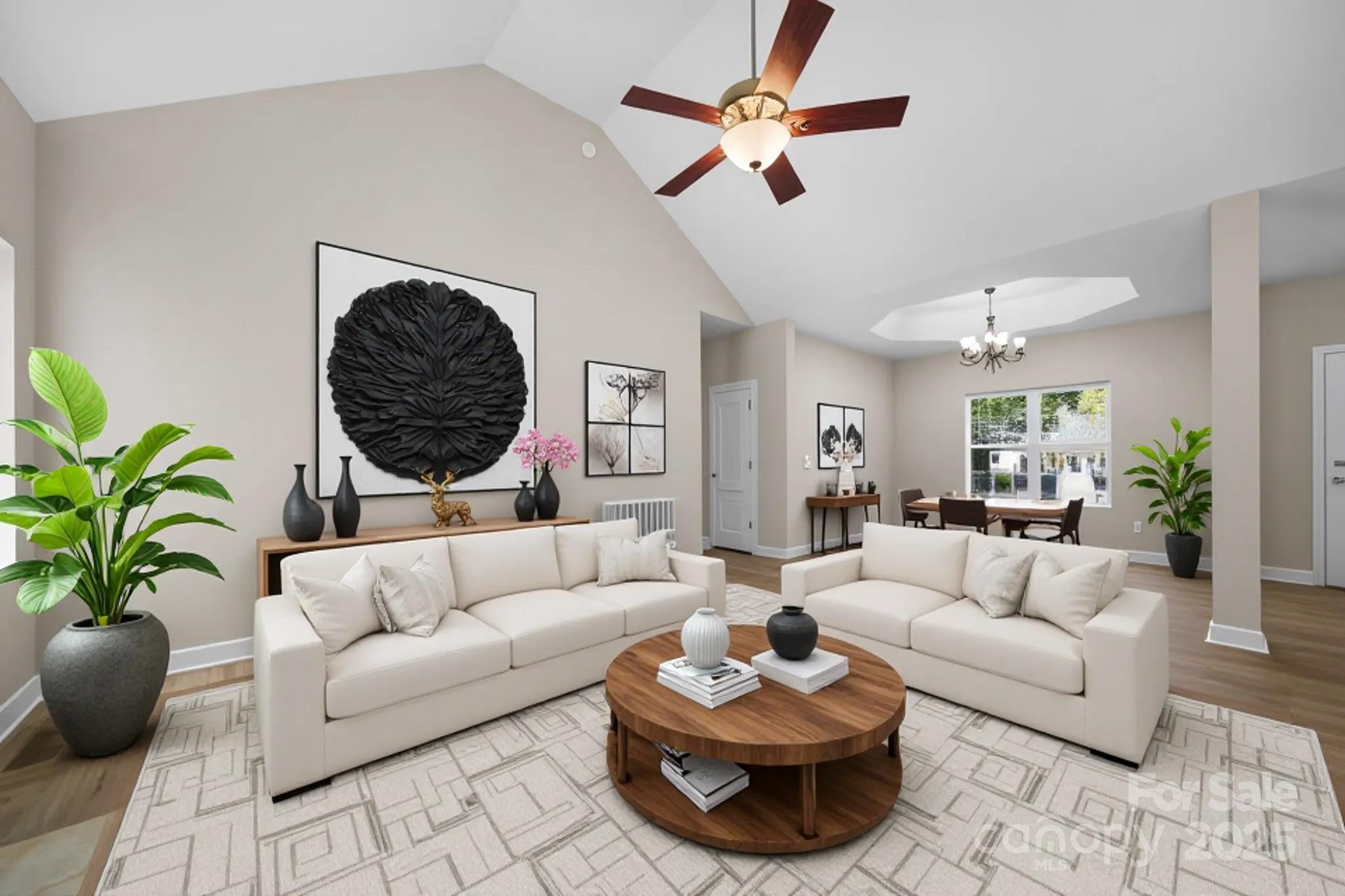 Discover this beautifully updated 3-bedroom, 2-bath ranch on a spacious 1.17-acre lot in desirable Troutman. With 1,424 sq. ft. of stylish living space, this home offers an open floor plan with vaulted ceilings—perfect for entertaining family and friends. The split-bedroom layout provides privacy, while the fully renovated kitchen features new cabinetry, stainless steel appliances, modern lighting, and sleek quartz countertops. Both bathrooms have been updated with new cabinets, lighting and quartz vanities. Luxury vinyl plank flooring adds warmth, durability, and contemporary appeal throughout the home. Brand new roof and HVAC mean this should be low maintenance for years. Step outside to a large deck overlooking a peaceful, private backyard—ideal for relaxing or hosting gatherings. Enjoy the freedom of no HOA fees and the convenience of being close to shopping, Lake Norman State Park, and I-77. Move-in ready and beautifully finished, this home perfectly blends comfort, style, and location. Some Photos virtually staged.