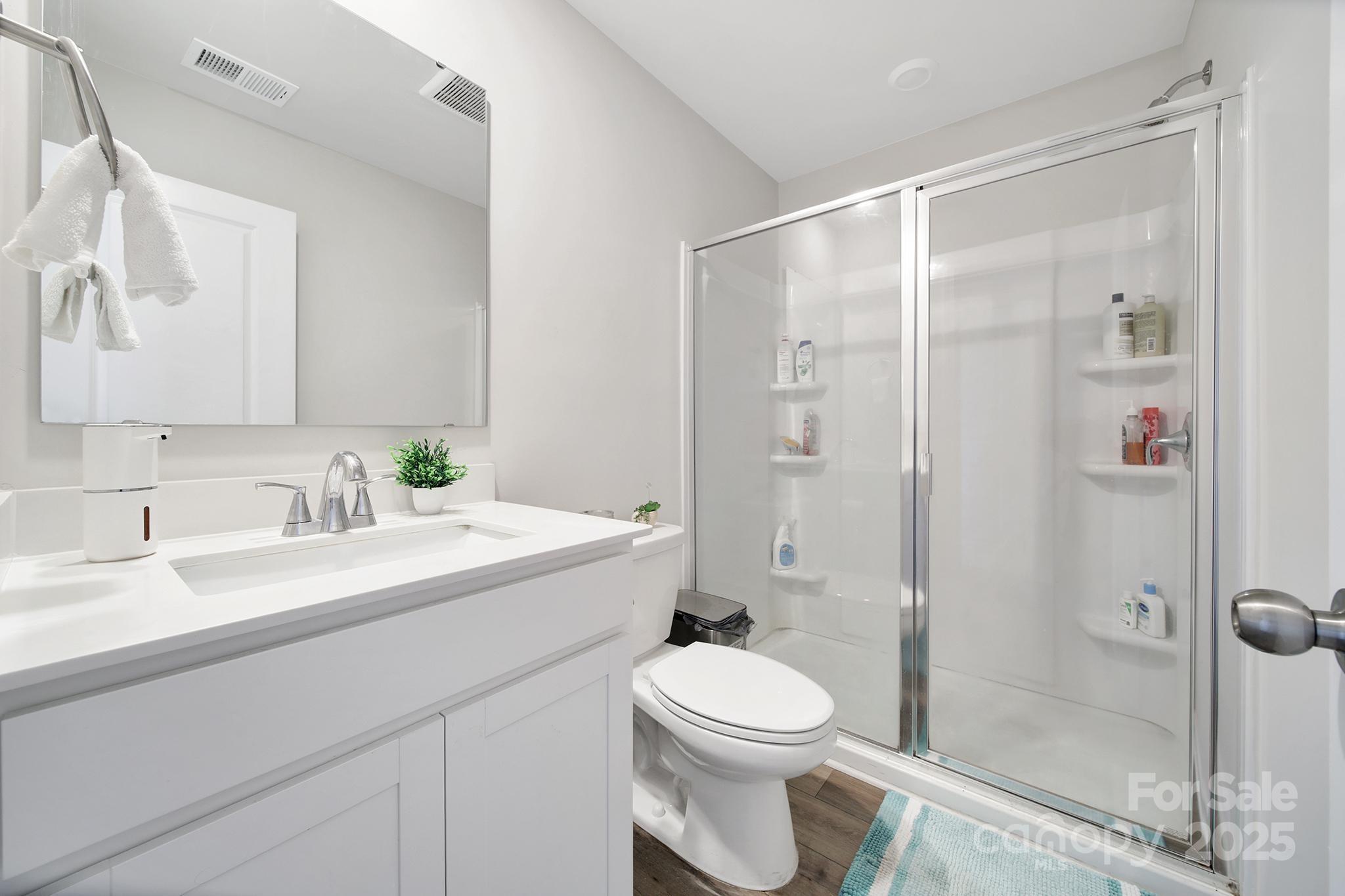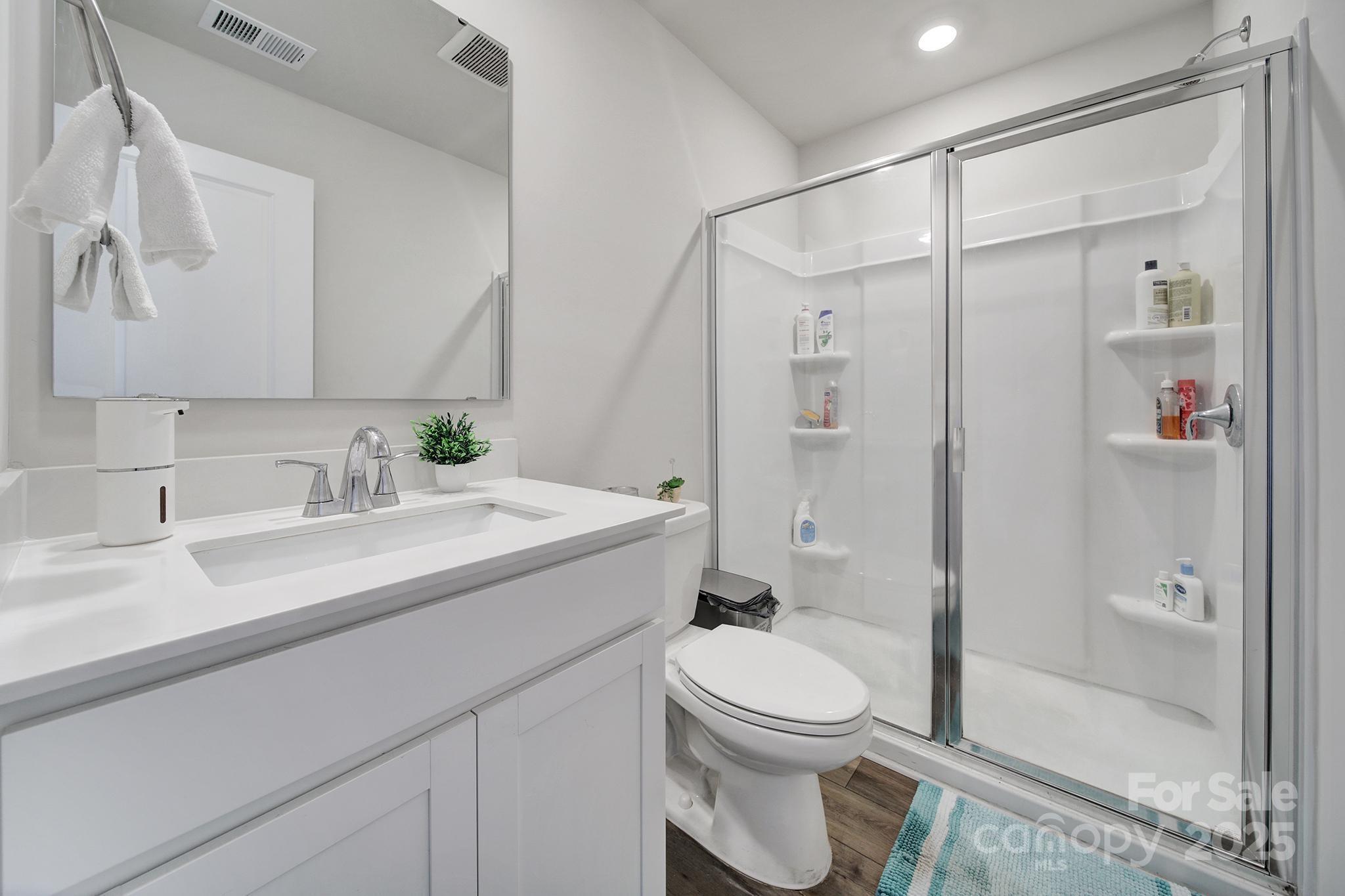 Welcome to the sought-after Hughes layout in the newly developed Walkers Mill community! This spacious two-story home offers 5 bedrooms, including a main-level bedroom with a full bathroom featuring a walk-in shower—perfect for guests or multi-generational living. Upstairs, you’ll find a versatile loft space, four additional bedrooms, a full hall bathroom with double sinks, and a convenient laundry room with bonus storage closet. The heart of the home is the open-concept kitchen, complete with quartz countertops, a large kitchen island, walk-in pantry, and gas oven. A sliding glass door leads to the extended concrete patio, ideal for outdoor entertaining. Upstairs bedrooms and hallway feature plush carpet for added comfort. This home is move-in ready and still under the builder's structural warranty, which transfers to the new owner for peace of mind. Only 6 miles to Interstate 77.