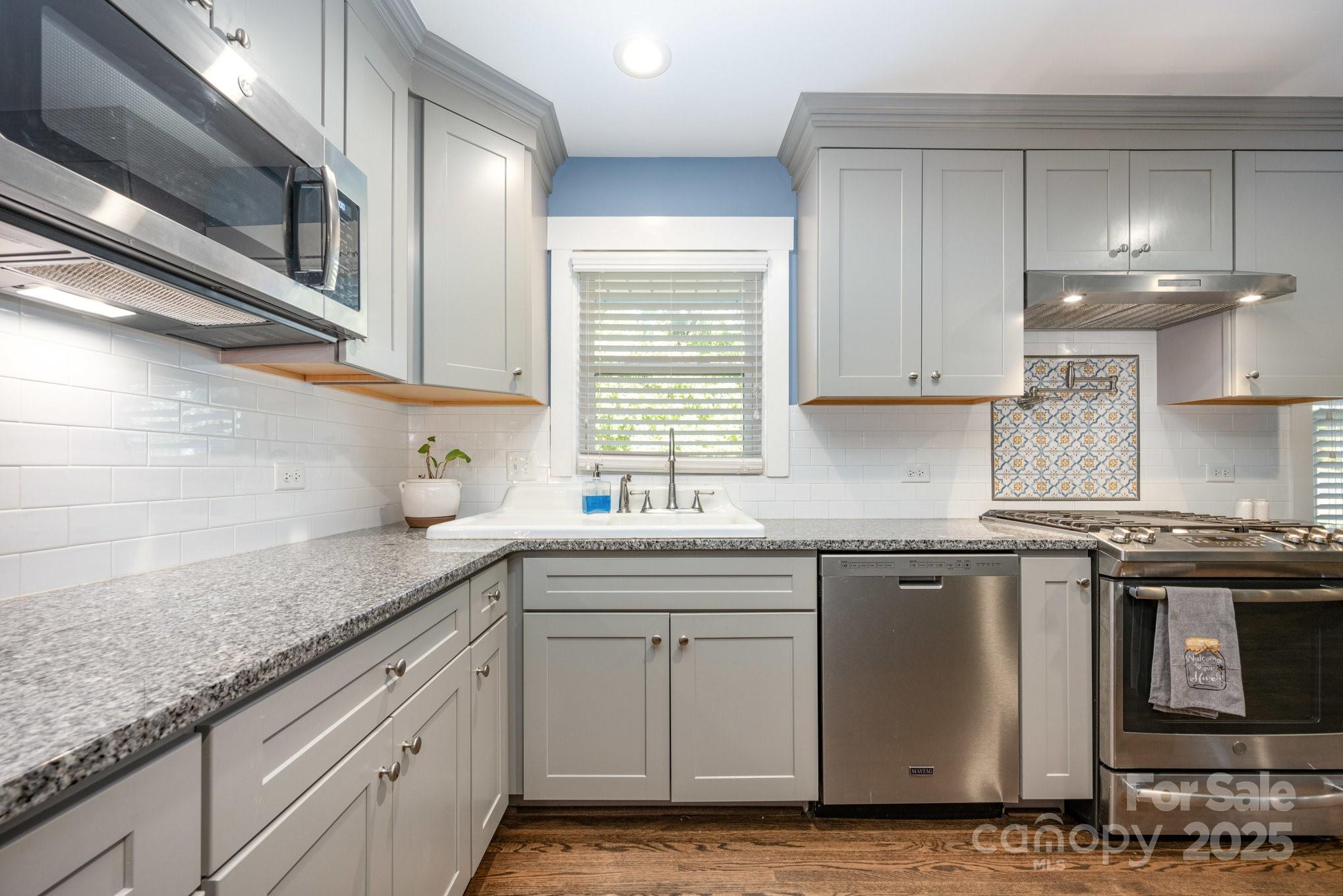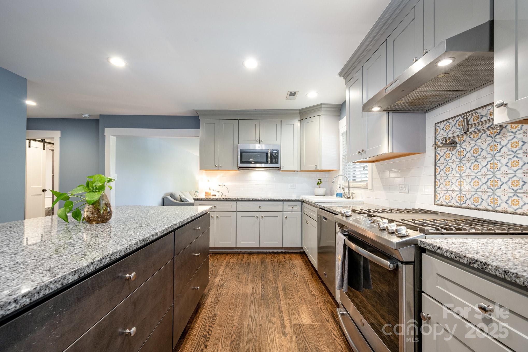 On the market for the first time since 1954, this cherished family home blends Concord history with modern updates. Remodeled in 2019, it features beautiful hardwood and LVP flooring throughout, granite countertops and a stylish subway tile backsplash in the kitchen. The kitchen is a cook’s delight with a gas range, built-in microwave, and a convenient pot filler. A coffee niche with granite counters adds kitchen functionality perfect for your morning routine and entertaining guests. Updates from 2019 include new windows, recessed lighting in the living, dining, and kitchen areas, and a custom garage door with a LiftMaster operator. The spacious two-car garage includes hot and cold water connections, and a storage area. There is a Bunce building located at the rear of the property that offers additional storage or vehicle parking. Enjoy outdoor living with a fenced backyard inside the circle driveway, ideal for pets or play, plus a gas connection for your grill on the back patio. This home is also equipped with a tankless water heater, heat pump HVAC system, and updated plumbing and drains throughout. One of the bedrooms features an upgraded closet system for added storage. House to be professionally measured week of 10.25.25. Enjoy the nearby parks, retail, restaurants, and access to the main roads of Concord and the Downtown life. Pride of ownership shines through every detail—this is a piece of Concord’s history ready for its next chapter.