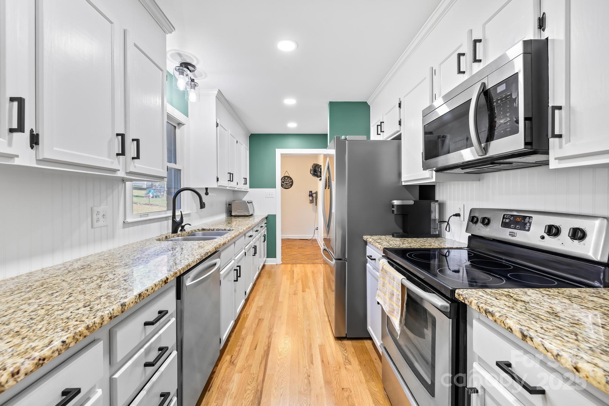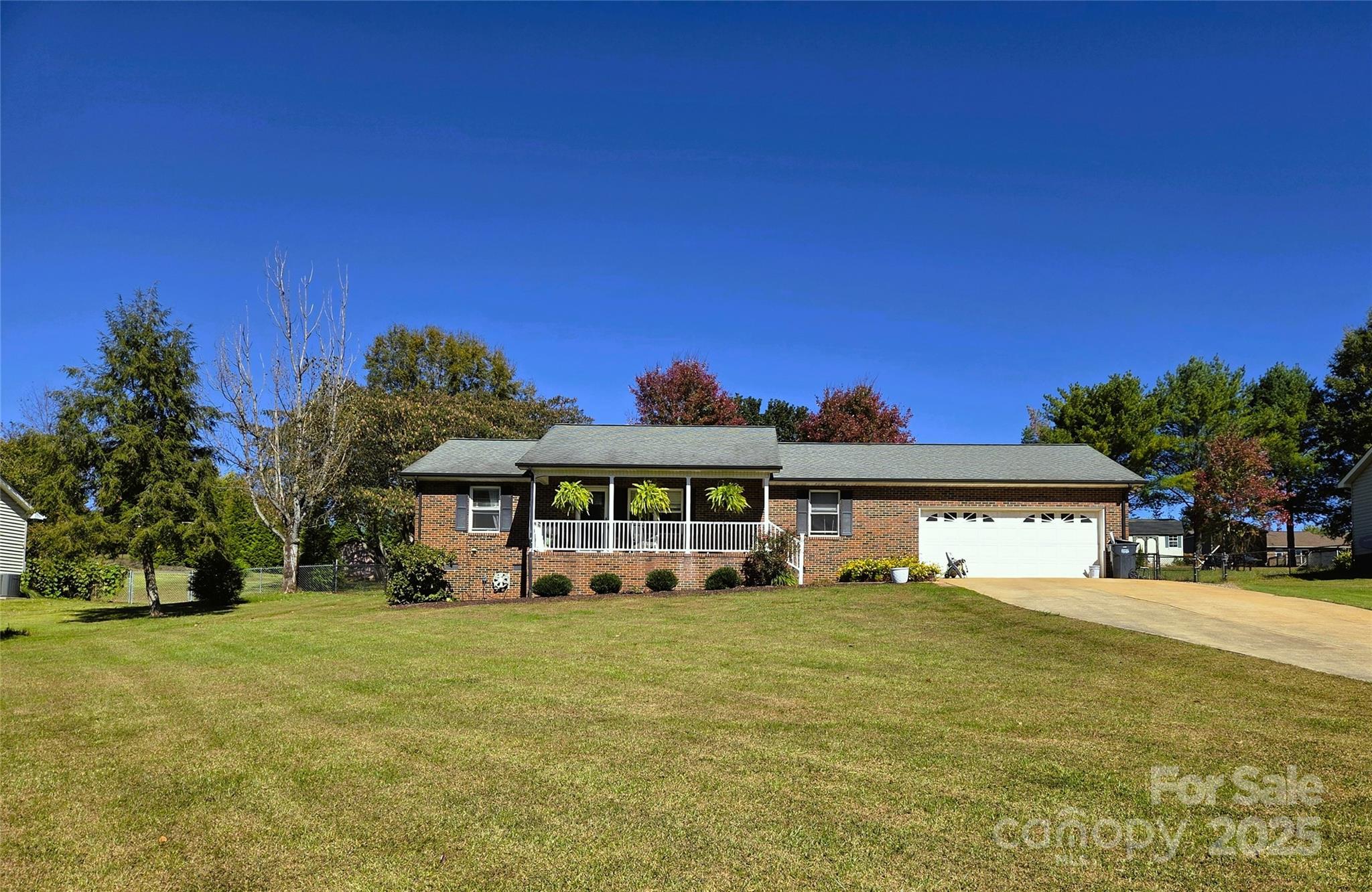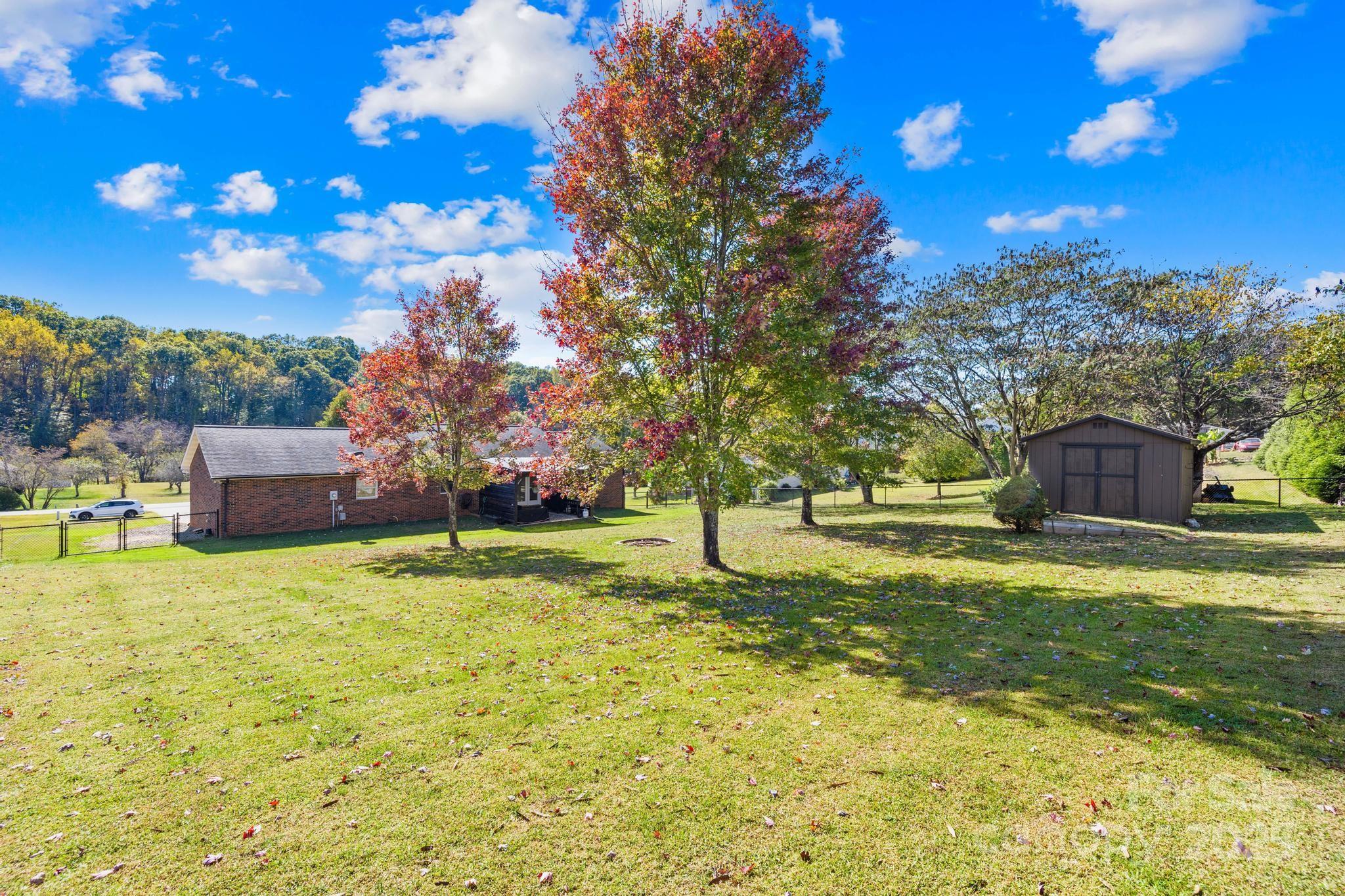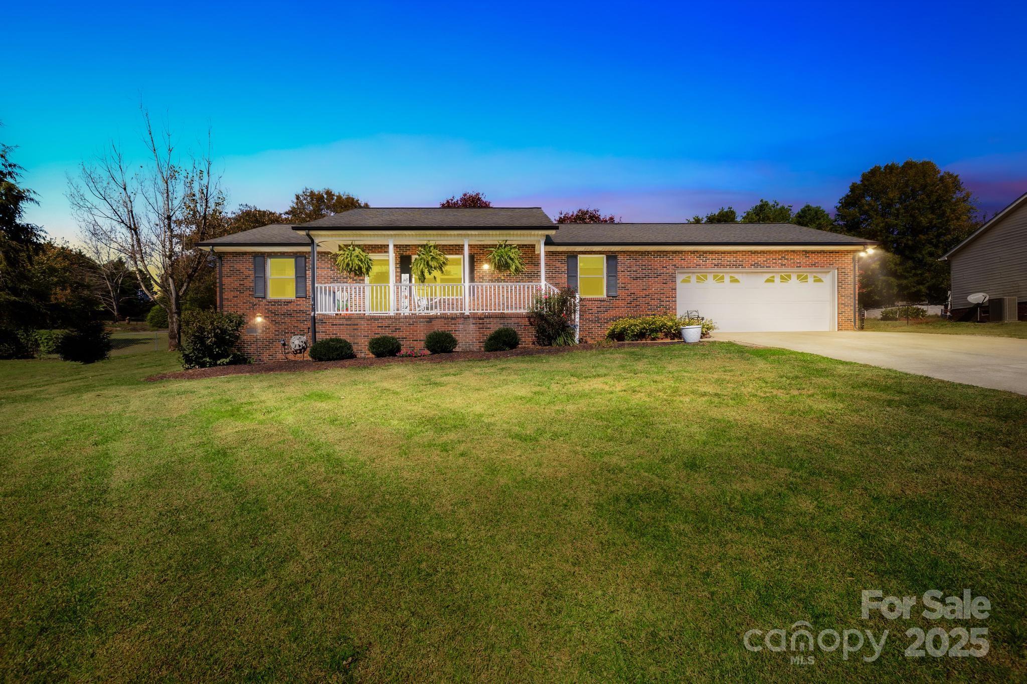 Charming Full Brick Ranch in a Peaceful Country Setting. Covered front porch with outward views is a delight as you enter. This well-maintained home features a split-bedroom floor plan with an open-concept living room and dining area, complete with a cozy fireplace and beautiful hardwood floors. Smooth ceilings and updated lighting create a move in ready home. The kitchen features granite countertops, a stylish bead board backsplash, and hardwood flooring. The backyard has an additional patio featuring shade and tv setup to relax or entertain. You'll love the exterior on this larger size lot, fenced backyard, and convenient storage building. Easy access to shopping, downtown Statesville, I40 and I77.