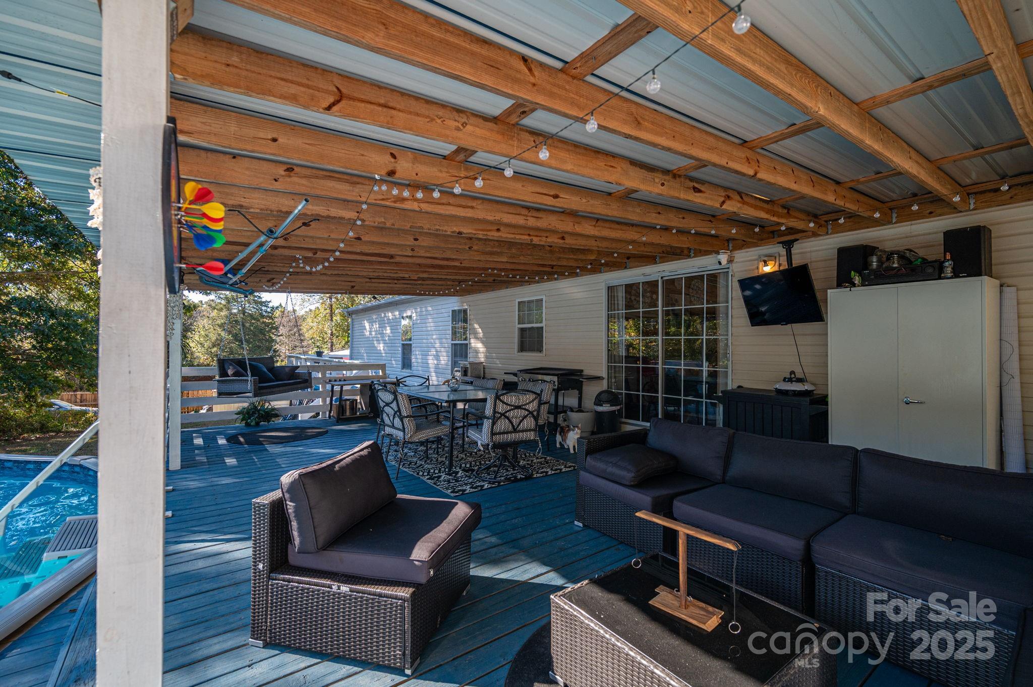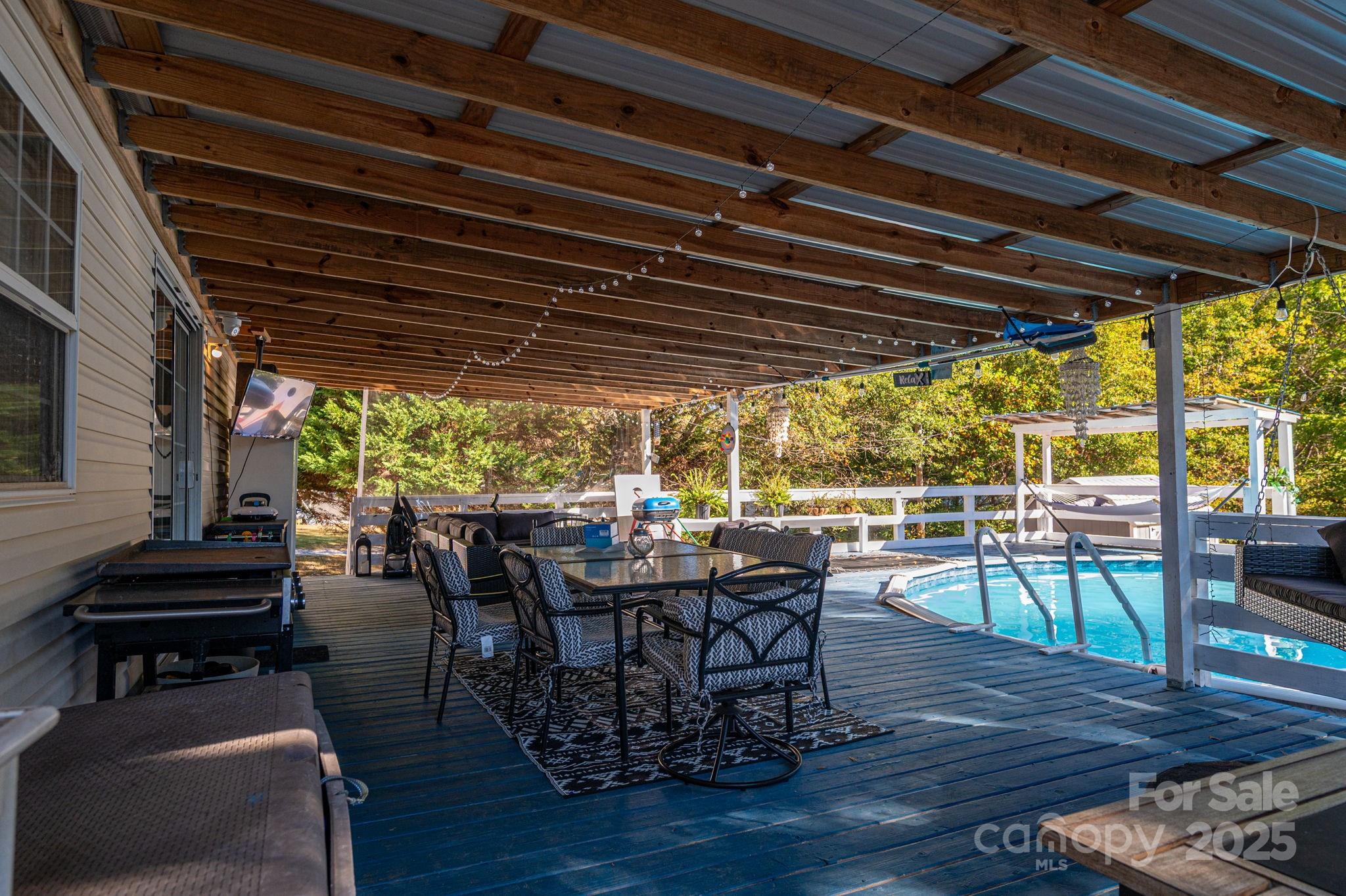 Welcome home to this beautifully maintained 4-bedroom, 2-bathroom residence nestled on a spacious ±0.8-acre lot. Inside, you’ll find an inviting layout featuring an eat-in kitchen, bright living area, and a versatile den/flex space perfect for a home office, playroom, or cozy media room. The spacious primary suite offers a relaxing retreat with its own private bathroom and generous closet space. Double doors off the living room open to a sprawling ±500 sq. ft. deck overlooking a well-maintained above-ground pool—ideal for entertaining, relaxing, or soaking up summer days. Surrounded by mature trees offering privacy and a serene wooded backdrop, this home perfectly balances comfort, function, and outdoor living.
