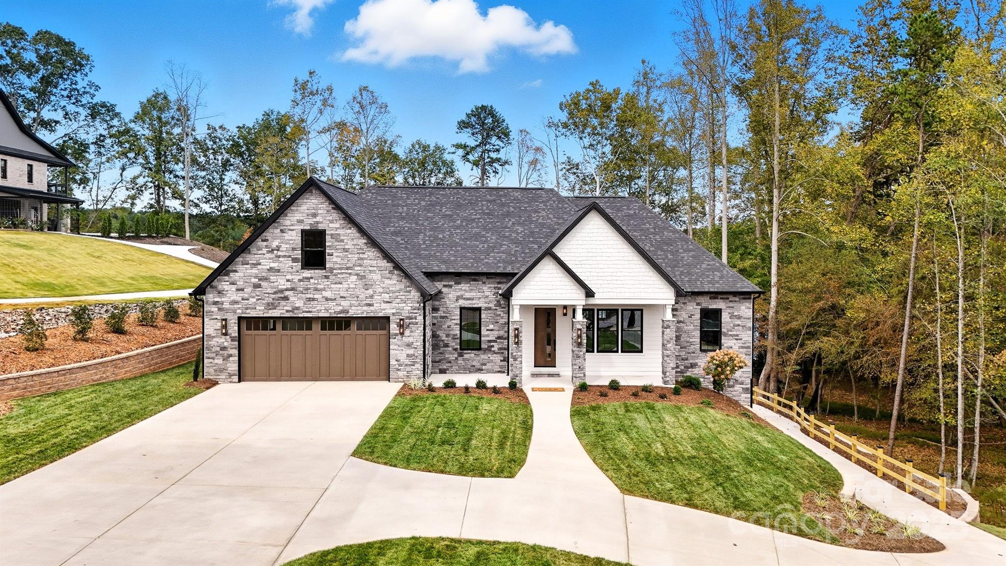 Luxury Waterfront Living on Lake Hickory! Experience refined lakefront living in this stunning new construction home located in the highly desirable Waterfront Harbor community. Nestled on a 0.86-acre lot with breathtaking lake views from every room, this 1.5-story home with a partially finished basement blends timeless design with modern sophistication. The main level welcomes you with an open-concept layout featuring a designer kitchen adorned with custom cabinetry, a grand island, high-end backsplash, built-in refrigerator, double oven, gas cooktop, and dishwasher. The spacious living and dining areas flow seamlessly together—perfect for entertaining or relaxing while taking in the serene water views. The primary suite offers a true retreat with two walk-in closets and a spa-inspired bath showcasing a custom walk-in shower and upscale lighting. A split-bedroom floor plan provides privacy, with two additional main-level bedrooms sharing a beautifully finished full bath. The main level also includes a stylish half bath, laundry room, and a two-car garage. Upstairs, you’ll find a versatile loft area, forth bedroom, movie room, a dedicated office, and a full bath—plus an unfinished attic offering abundant storage. The partially finished basement expands your living space with a large family room, full bath, generous storage, and an extra garage bay—ideal for tools, a golf cart, or lake gear. Step outside to enjoy the ultimate outdoor oasis featuring a covered patio with an outdoor kitchen setup and firepit. A gentle paved path leads to your private double-decker dock, perfect for sunset views, boating, or gathering with friends and family. This is more than a home—it’s a luxury lake lifestyle waiting to be experienced.