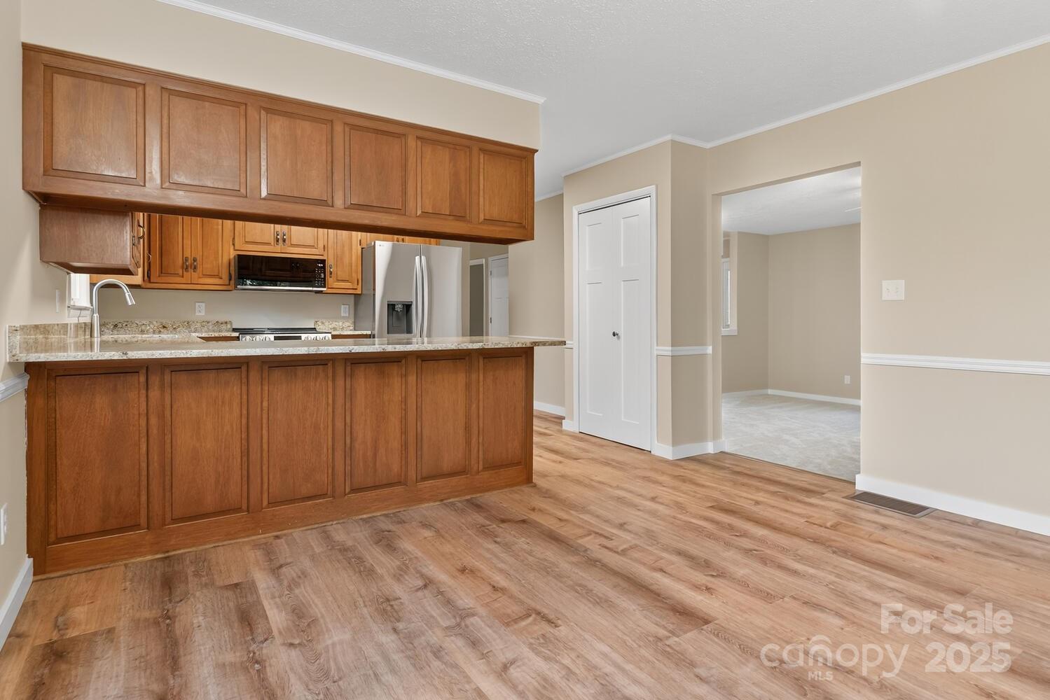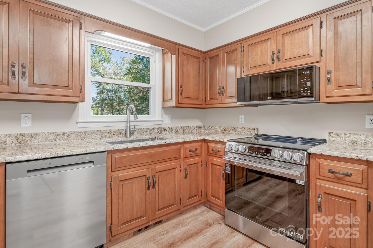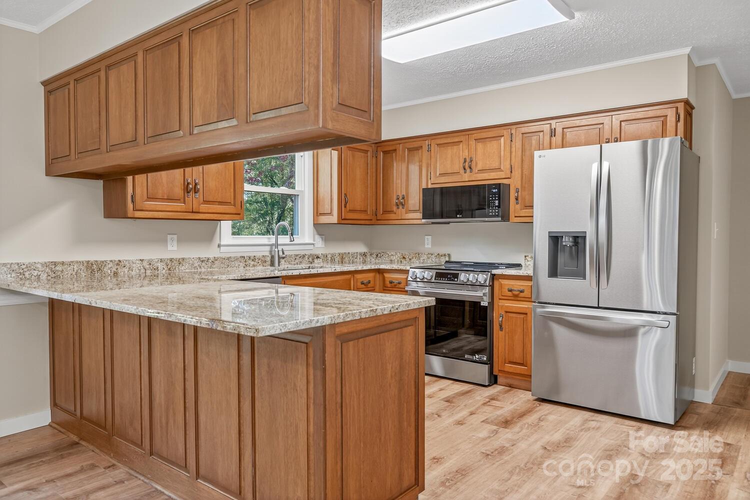 Total Renovation! This beautifully renovated home has been completely updated inside and out, featuring a new roof, vinyl siding, insulated windows, garage doors with openers, HVAC system, bathrooms, interior doors, lighting, flooring, granite kitchen countertops, and LG appliances. A Redstone built-in electric fireplace adds both warmth and inviting ambiance—perfect for cozy winter nights. Enjoy outdoor living on the spacious 23’x12’ deck off the breakfast area—ideal for BBQs, entertaining, or simply relaxing with family and friends. The deck includes stairs leading down to the backyard and creek, offering a scenic and serene backdrop. The lower level boasts a large family and game room with plenty of space for a pool table or ping-pong table. An adjoining office area with a half bath and sliding door opening to a covered porch and the backyard—ideal for working from home or guest accommodations. The oversized 30’x25’ garage provides ample room for a workbench and additional storage for lawn and garden equipment. Perfectly located at the end of a quiet street on 1.6 acres of gently rolling lawn, this property offers generous space for recreation, gardening, and peaceful country living.