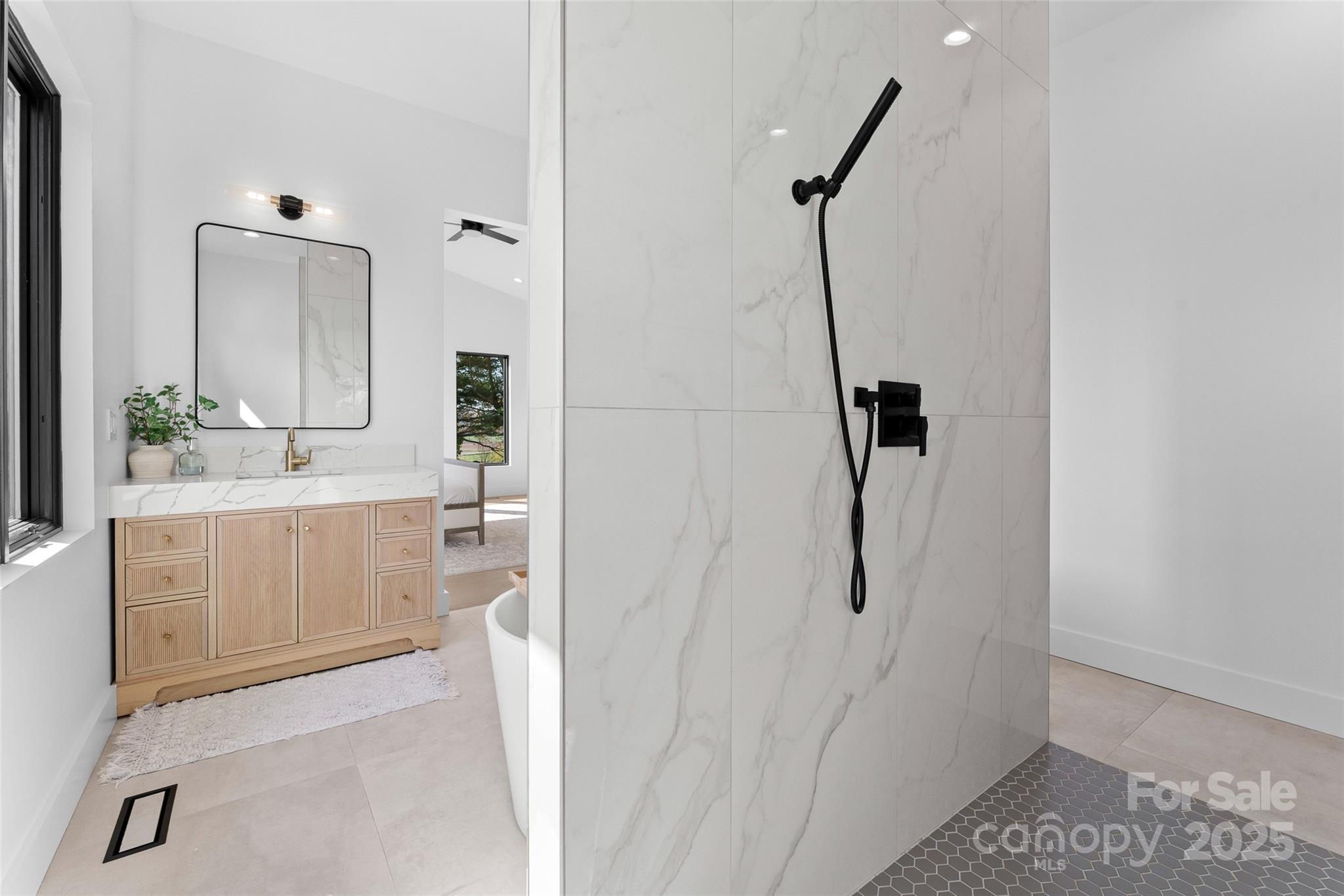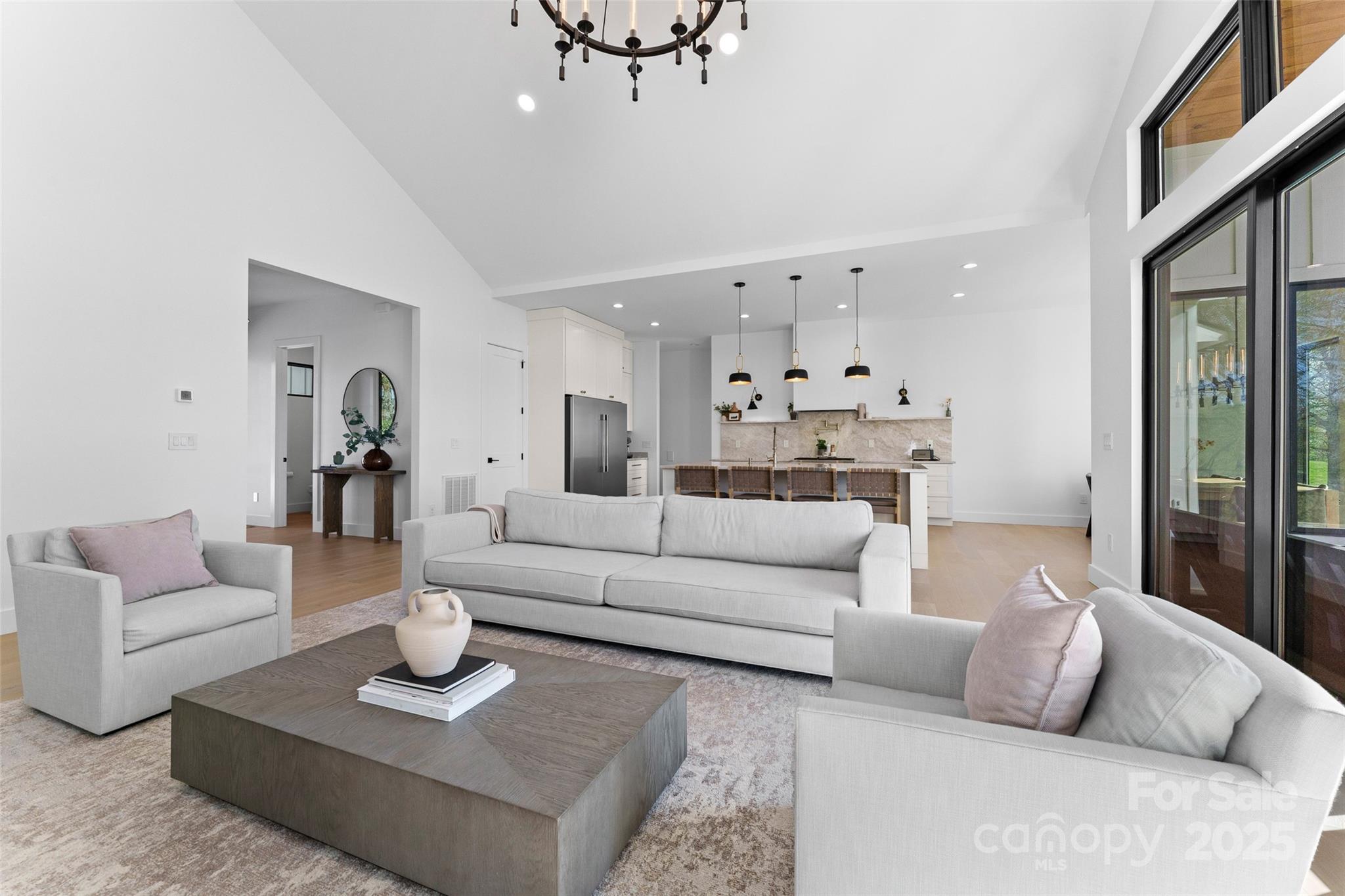 Welcome to your dream home! This custom-built, one-level home blends luxurious comfort with convenience. You’ll be greeted by soaring ceilings and an open floor plan making the space feel spacious and inviting. Kitchen features Taj Mahal quartzite counters, soft-close cabinets, and large pantry allowing for plenty of storage while also housing an ice machine. Primary suite includes a walk-in closet and a spa-inspired en-suite bath with a standalone soaking tub, walk-in shower, heated floors and dual vanities. For ultimate relaxation, unwind in the separate built-in sauna. In the living room, glass doors open to the back patio, offering beautiful views of the peaceful surroundings. Bedrooms are spacious, providing the perfect spot to recharge. With upgraded finishes throughout, this home is designed for those who value quality craftsmanship. Just 30 minutes from Asheville and 15 minutes from Biltmore Park, this home offers peaceful living and easy access to all Asheville has to offer.