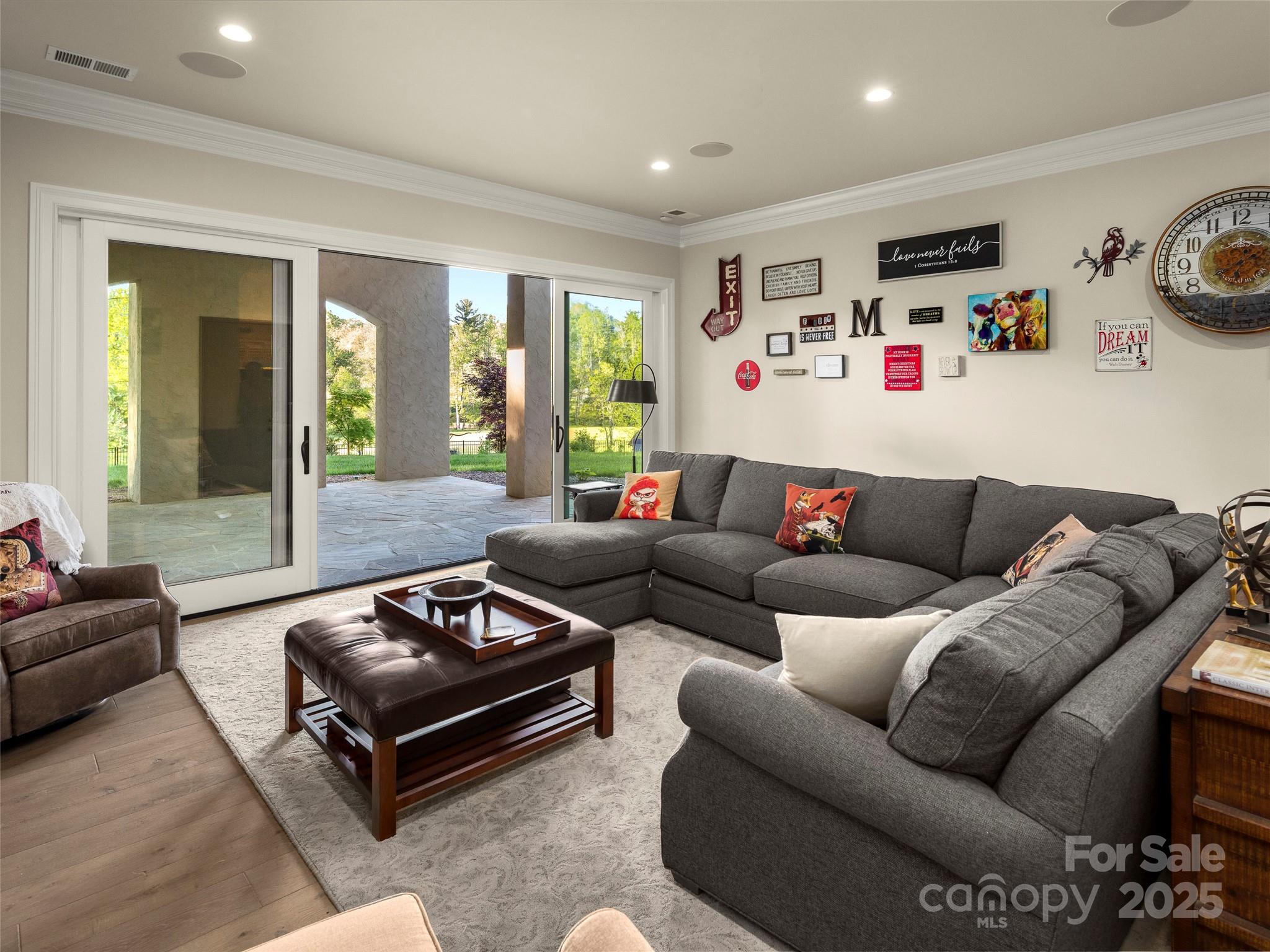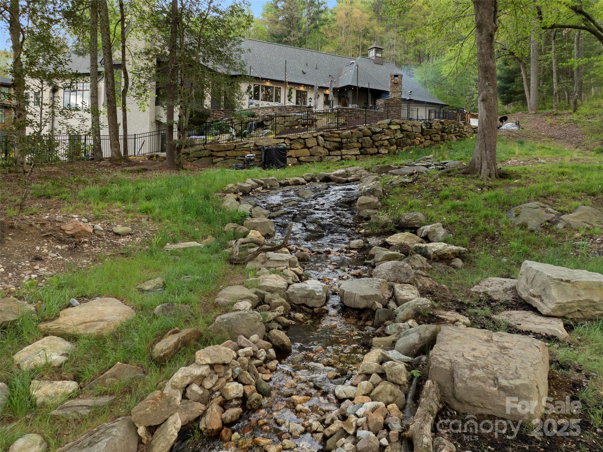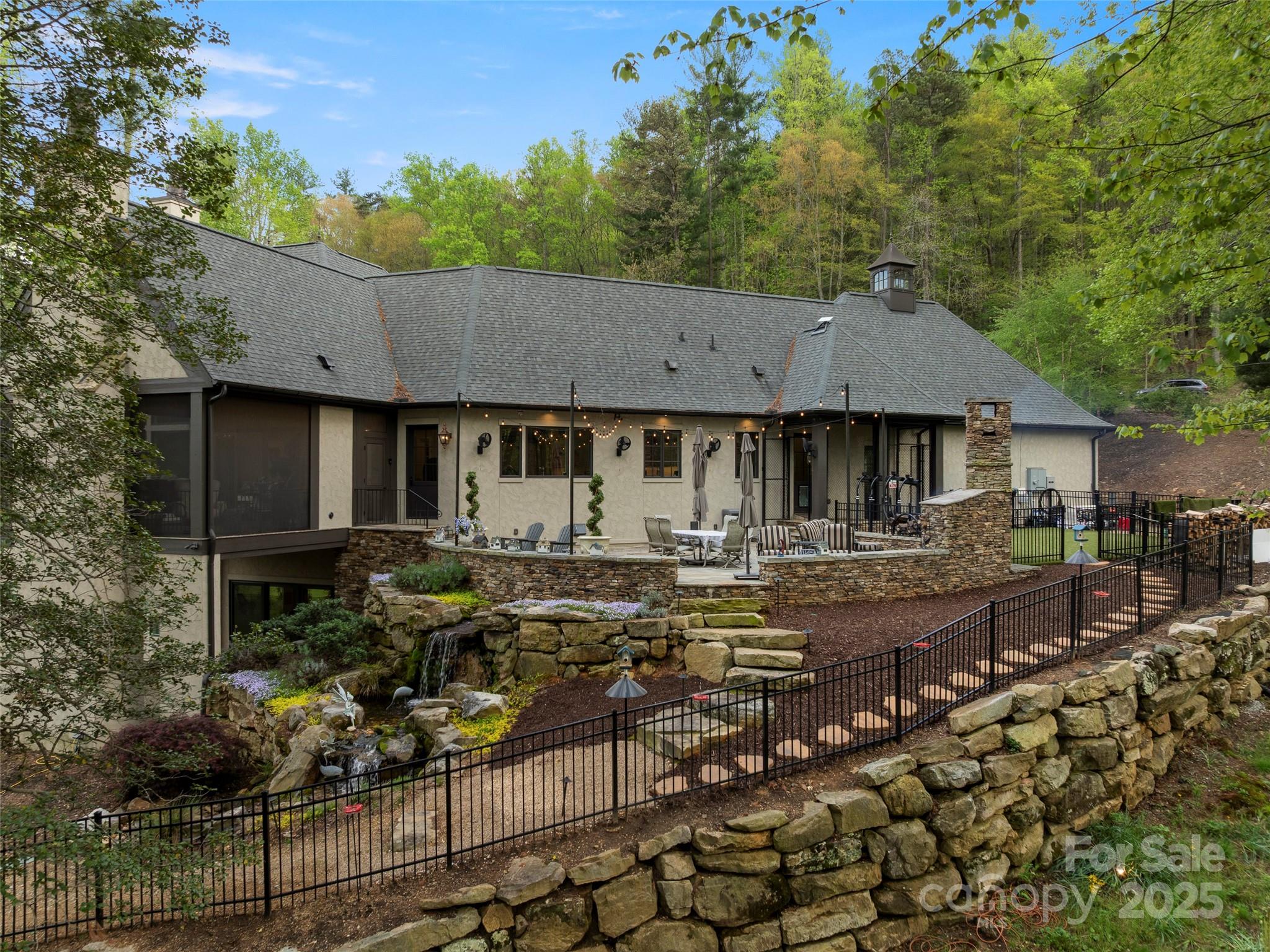 Private French Country Estate in The Cliffs at Walnut Cove, offering timeless architecture, panoramic meadow and mountain views, and exceptional privacy. Built by a premier custom builder with uncompromising craftsmanship, the home features a sunlit great room with soaring ceilings, a gourmet kitchen with premium appliances, and an expansive patio with a wood-burning fireplace—ideal for entertaining or quiet evenings surrounded by nature. Designed for wellness and comfort, it includes upgraded air and water quality, natural materials, energy-efficient systems, and smart features thoughtfully integrated for convenience. Highlights include a luxurious primary suite, main-level executive office, screened-porch overlooking a tranquil water feature, elevator, generator, walk-in vault, ample storage, and an attached garage w/workshop. Set on 1.5 serene acres, with adjoining 1.73-acre parcel available, the property offers both exceptional privacy and easy access to amenities.