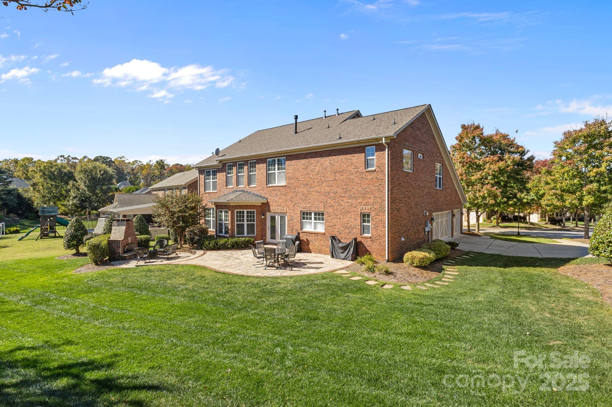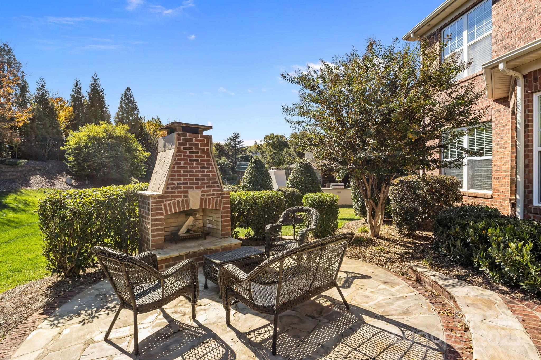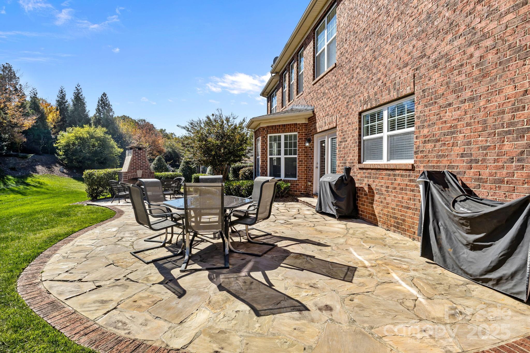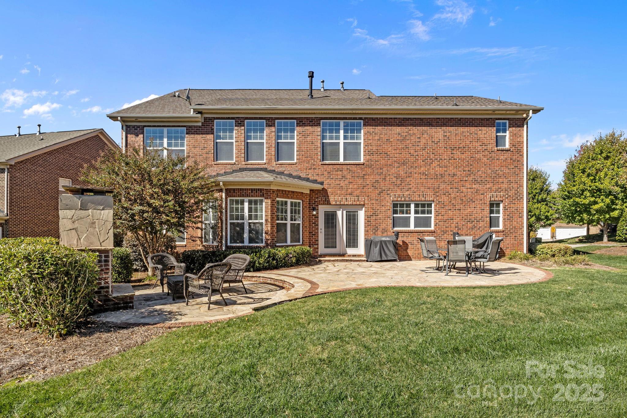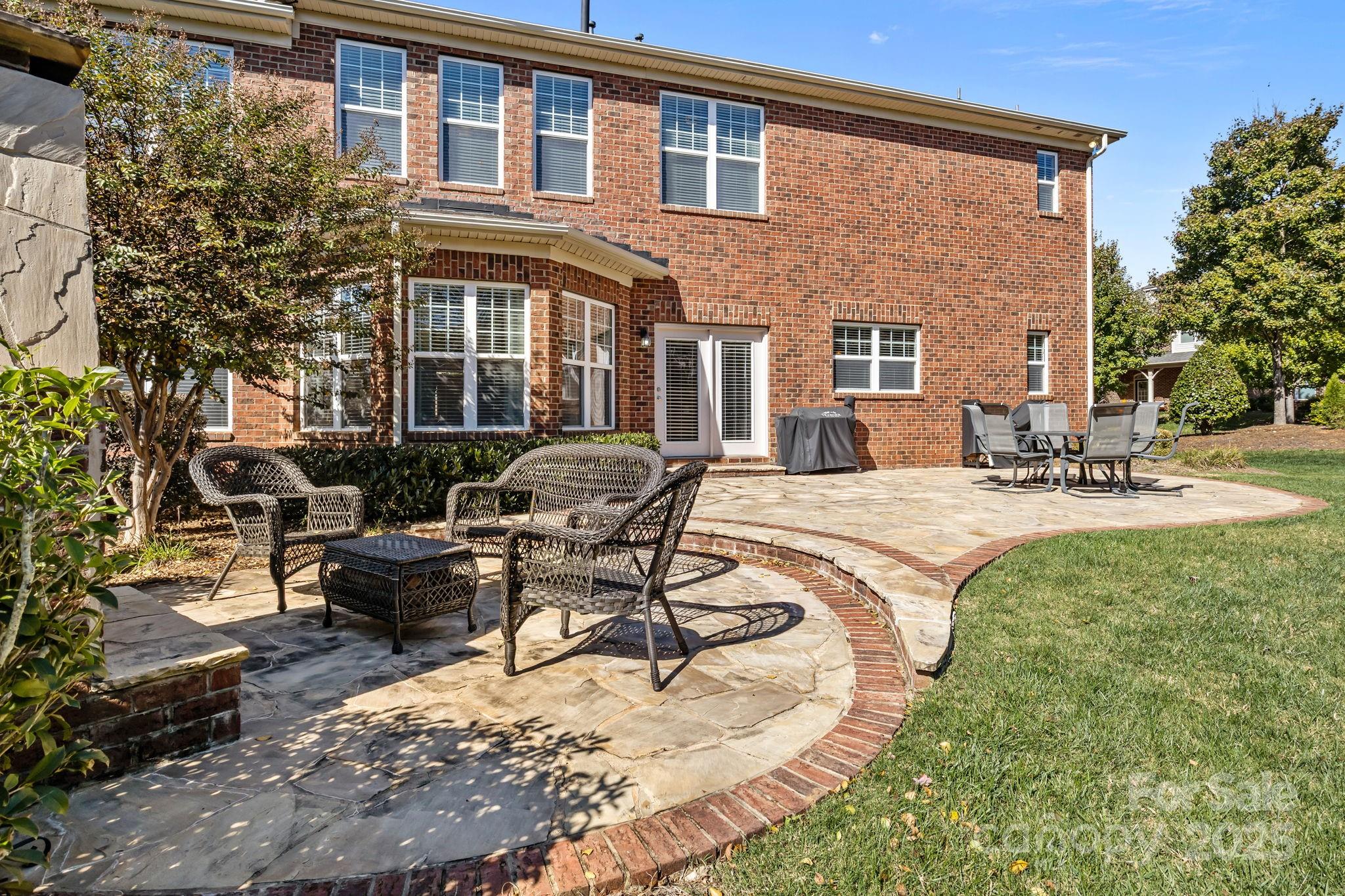 Stunning full-brick home in the desirable Northbridge subdivision! This meticulously maintained property offers exceptional quality and curb appeal, complete with a 3-car garage and beautiful outdoor living spaces. Step inside to a grand 2-story foyer with elegant molding details, crown molding, wainscoting, tray ceilings, and ceiling fans throughout. The open floor plan features a see-through gas log fireplace connecting the great room and breakfast area, plus a convenient drop zone in the mudroom. The gourmet kitchen is sure to impress with a center island, granite countertops, 42" maple cabinets, tile backsplash, and stainless steel appliances. A main-floor guest suite includes a private bath for comfort and convenience. Upstairs, the luxurious primary suite offers a sitting room, his-and-hers walk-in closets, and a spa-like bath with dual vanities and an oversized tiled shower. Enjoy outdoor living on the stone patio with outdoor fireplace, overlooking the private, landscaped backyard. Additional features include a new roof (2018) with a 30-year warranty, Energy Star certification, balance of 30-year structural warranty, and full irrigation system. Fantastic location—close to the community pool, I-77, and award-winning MGSD schools!