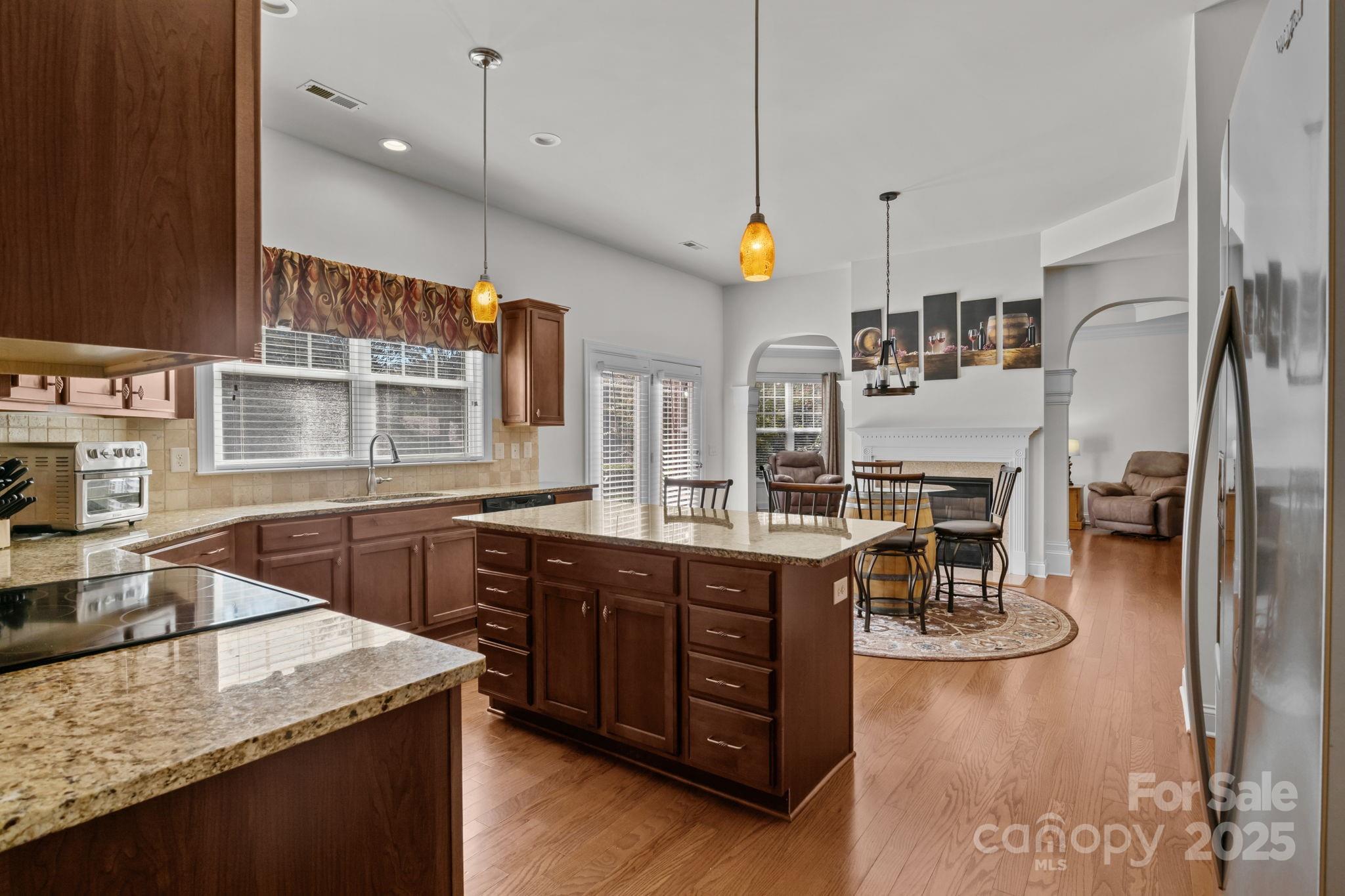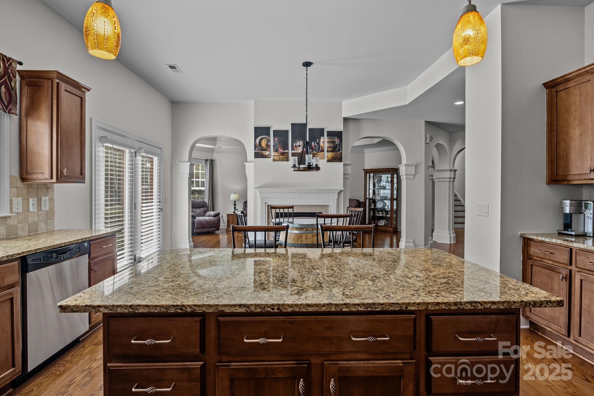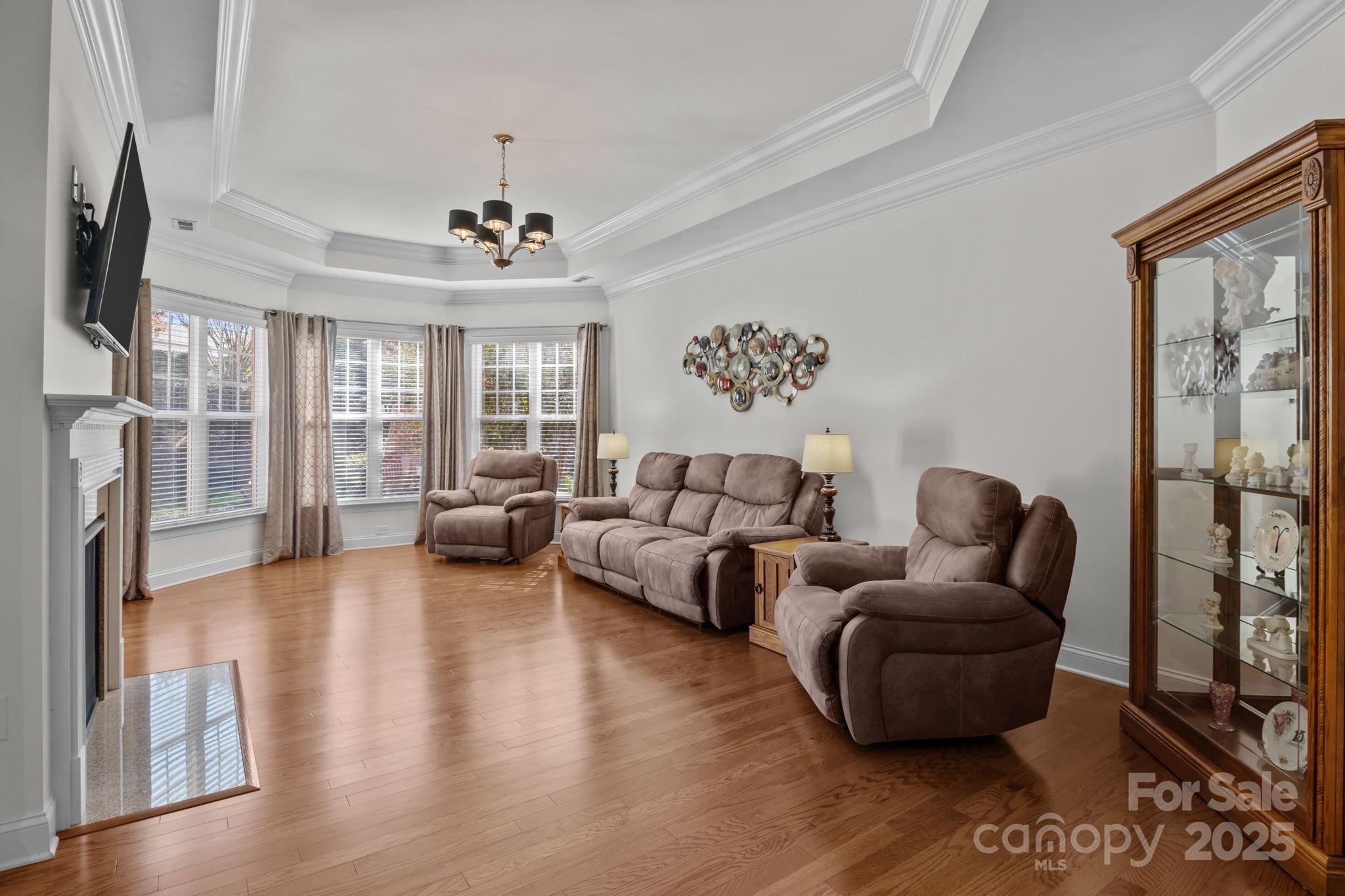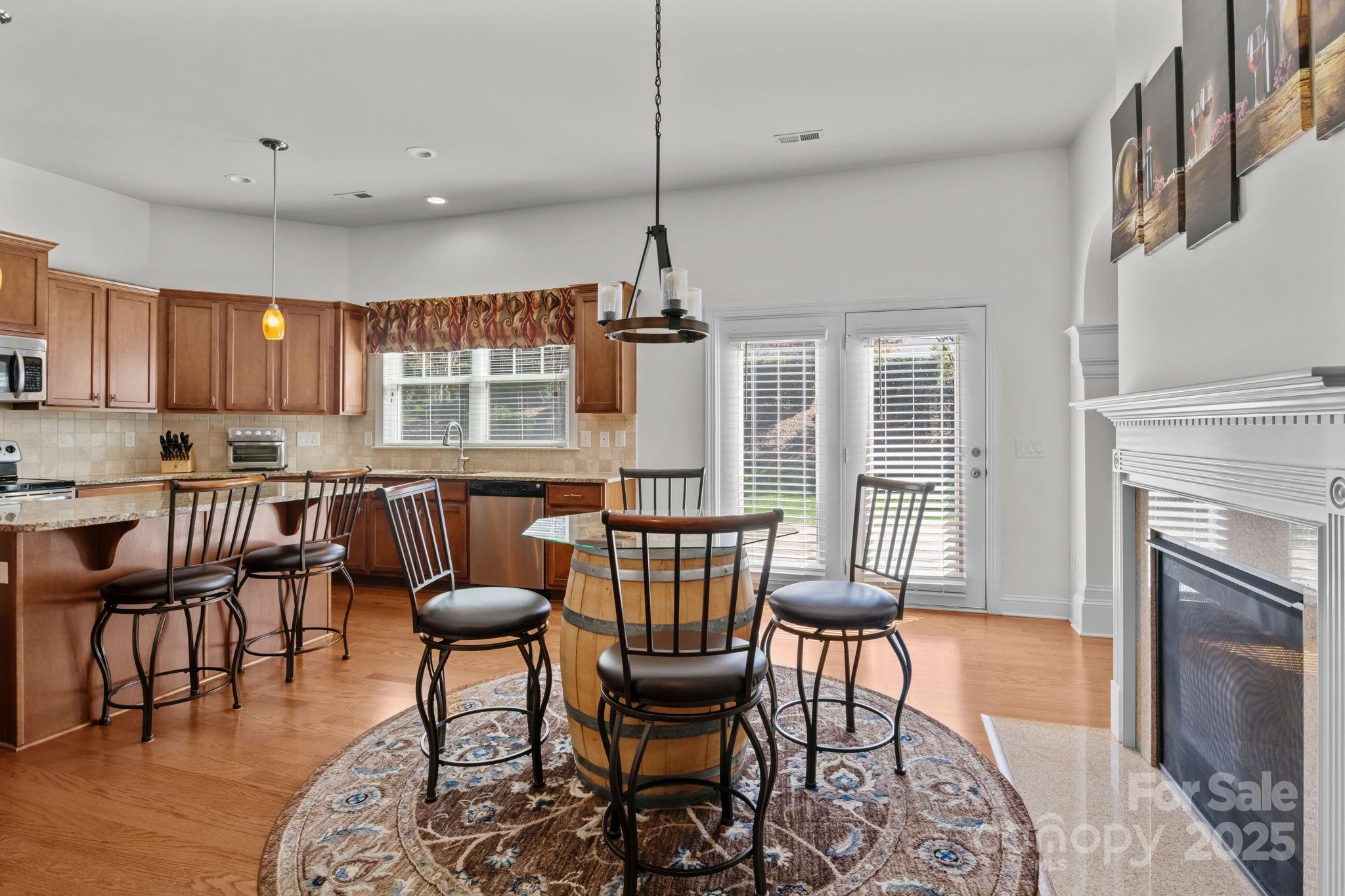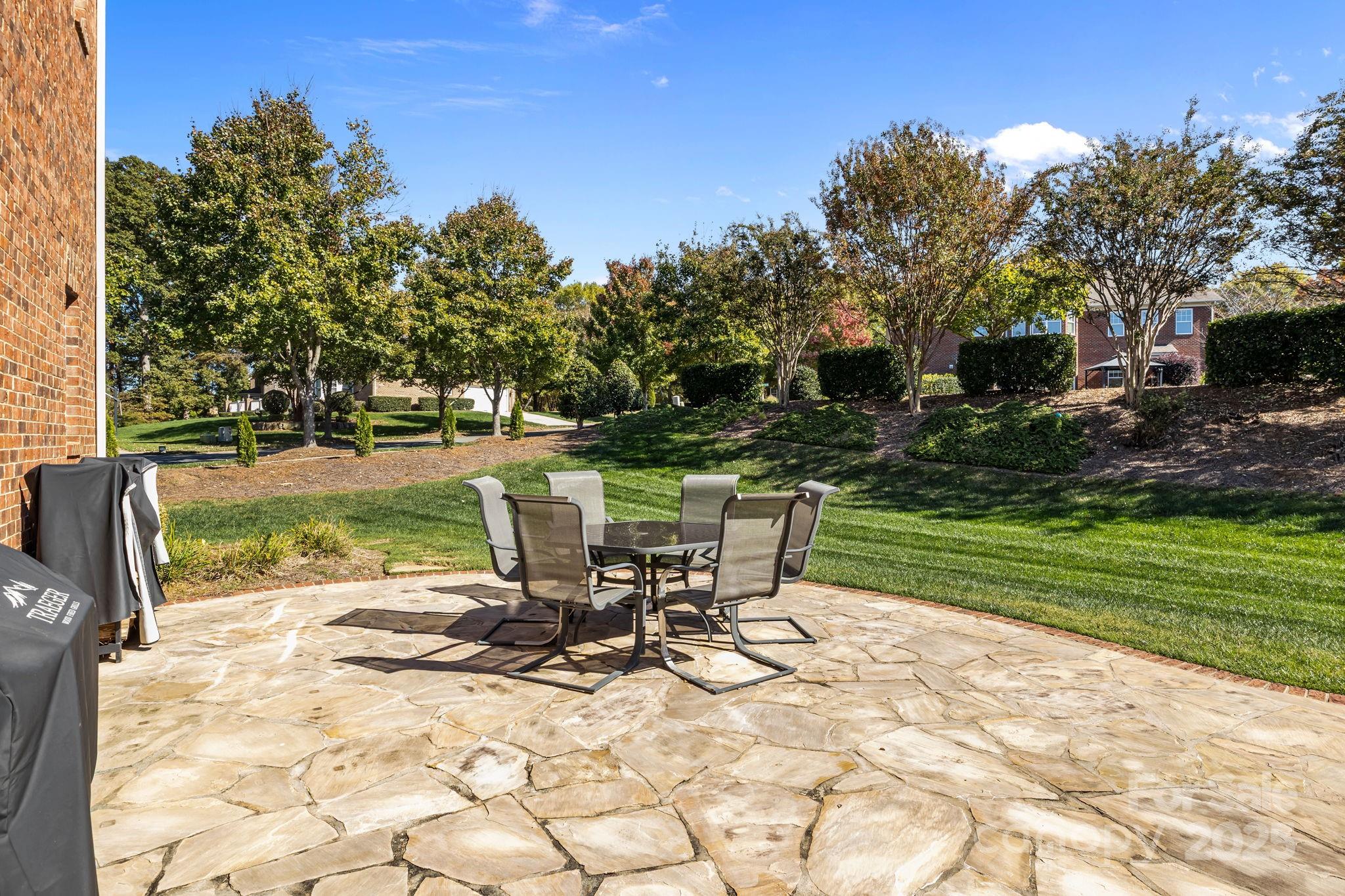 Stunning full-brick home in the desirable Northbridge subdivision! This meticulously maintained property offers exceptional quality and curb appeal, complete with a 3-car garage and beautiful outdoor living spaces. Step inside to a grand 2-story foyer with elegant molding details, crown molding, wainscoting, tray ceilings, and ceiling fans throughout. The open floor plan features a see-through gas log fireplace connecting the great room and breakfast area, plus a convenient drop zone in the mudroom. The gourmet kitchen is sure to impress with a center island, granite countertops, 42" maple cabinets, tile backsplash, and stainless steel appliances. A main-floor guest suite includes a private bath for comfort and convenience. Upstairs, the luxurious primary suite offers a sitting room, his-and-hers walk-in closets, and a spa-like bath with dual vanities and an oversized tiled shower. Enjoy outdoor living on the stone patio with outdoor fireplace, overlooking the private, landscaped backyard. Additional features include a new roof (2018) with a 30-year warranty, Energy Star certification, balance of 30-year structural warranty, and full irrigation system. Fantastic location—close to the community pool, I-77, and award-winning MGSD schools!