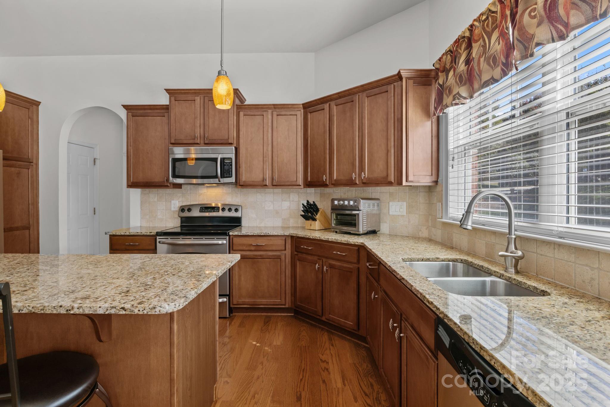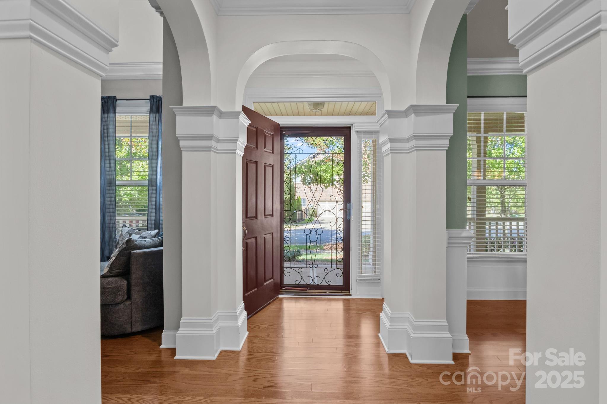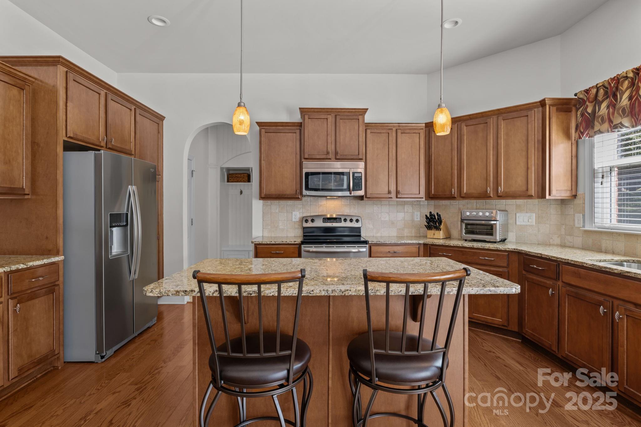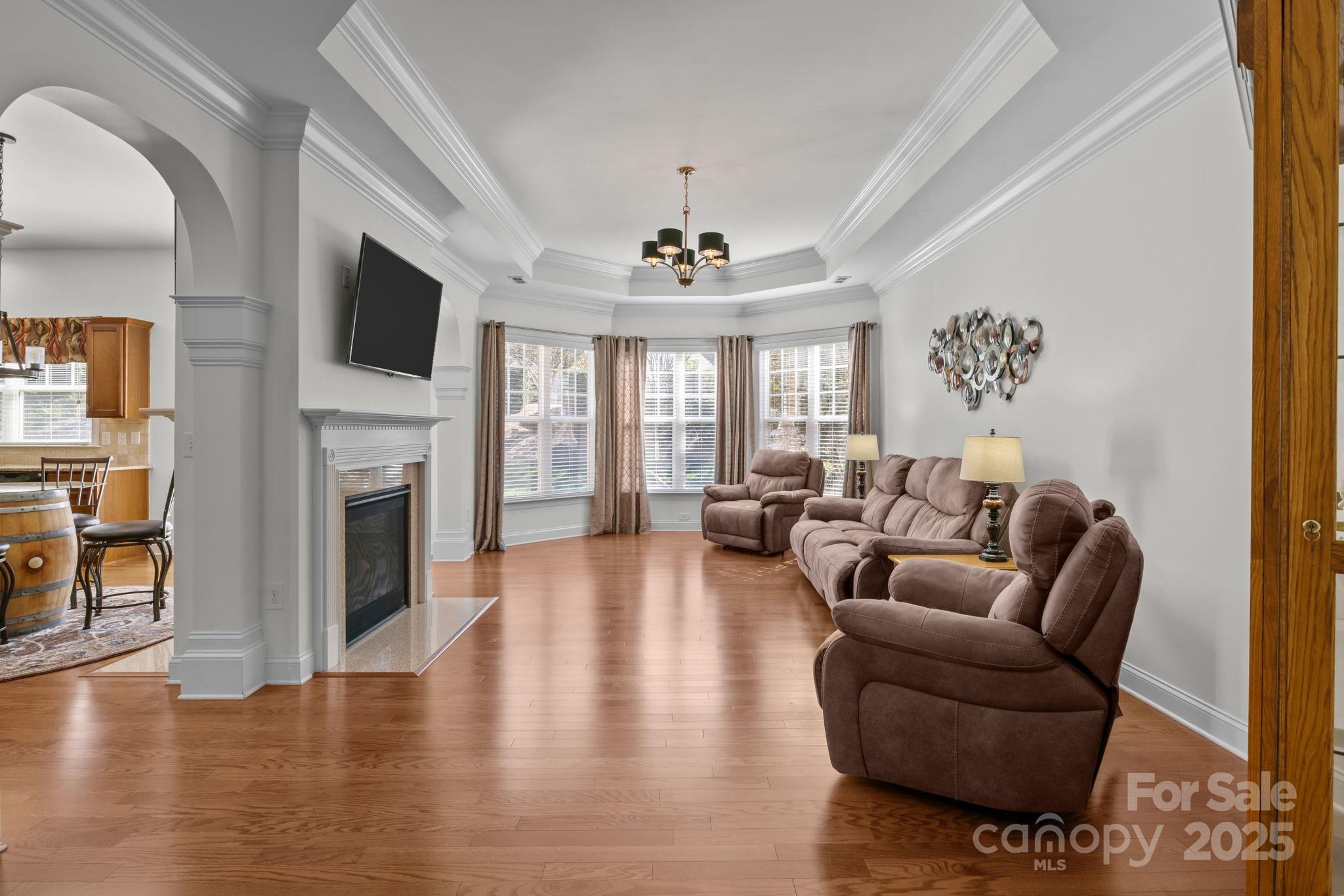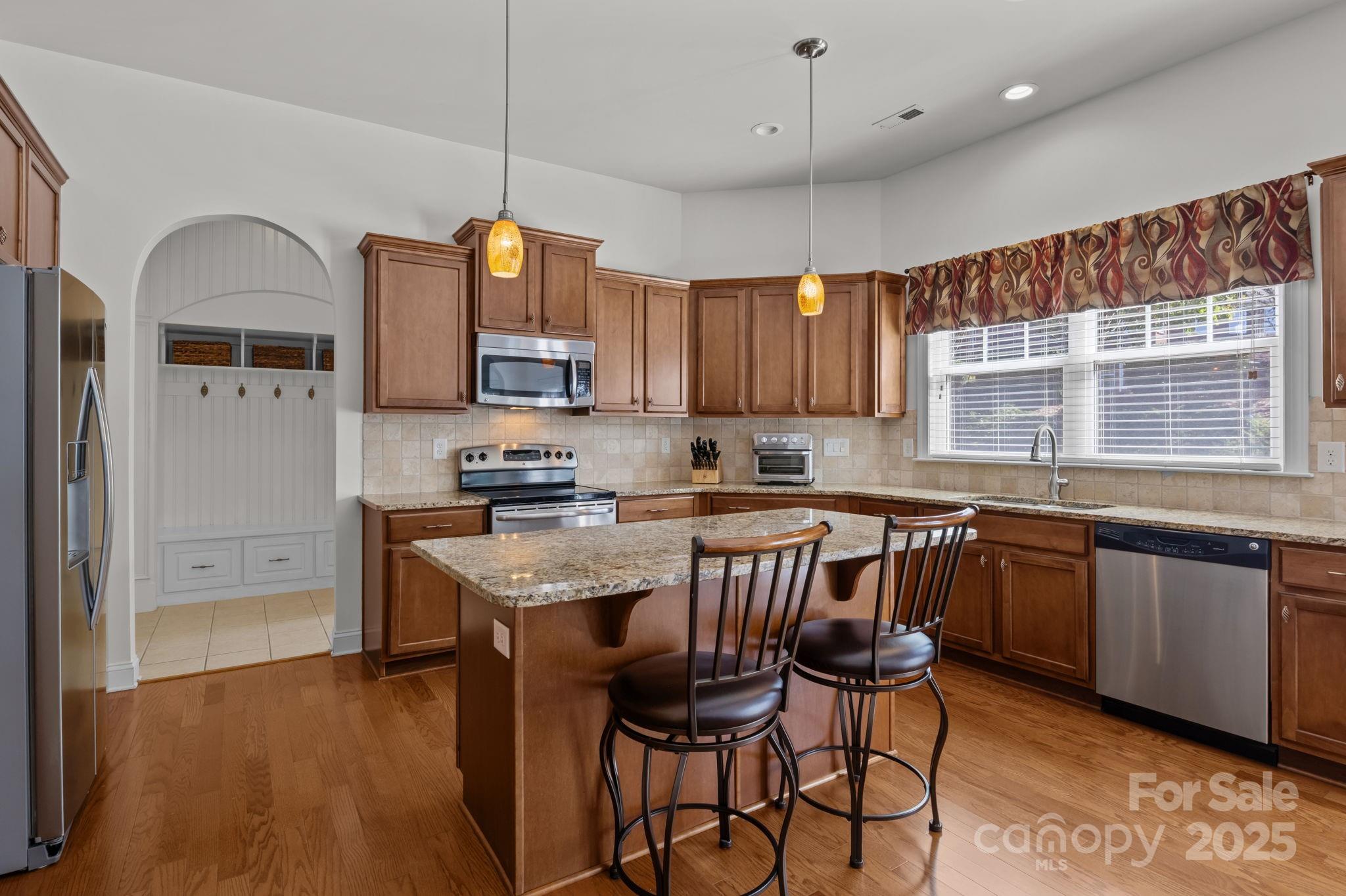 Stunning full-brick home in the desirable Northbridge subdivision! This meticulously maintained property offers exceptional quality and curb appeal, complete with a 3-car garage and beautiful outdoor living spaces. Step inside to a grand 2-story foyer with elegant molding details, crown molding, wainscoting, tray ceilings, and ceiling fans throughout. The open floor plan features a see-through gas log fireplace connecting the great room and breakfast area, plus a convenient drop zone in the mudroom. The gourmet kitchen is sure to impress with a center island, granite countertops, 42" maple cabinets, tile backsplash, and stainless steel appliances. A main-floor guest suite includes a private bath for comfort and convenience. Upstairs, the luxurious primary suite offers a sitting room, his-and-hers walk-in closets, and a spa-like bath with dual vanities and an oversized tiled shower. Enjoy outdoor living on the stone patio with outdoor fireplace, overlooking the private, landscaped backyard. Additional features include a new roof (2018) with a 30-year warranty, Energy Star certification, balance of 30-year structural warranty, and full irrigation system. Fantastic location—close to the community pool, I-77, and award-winning MGSD schools!