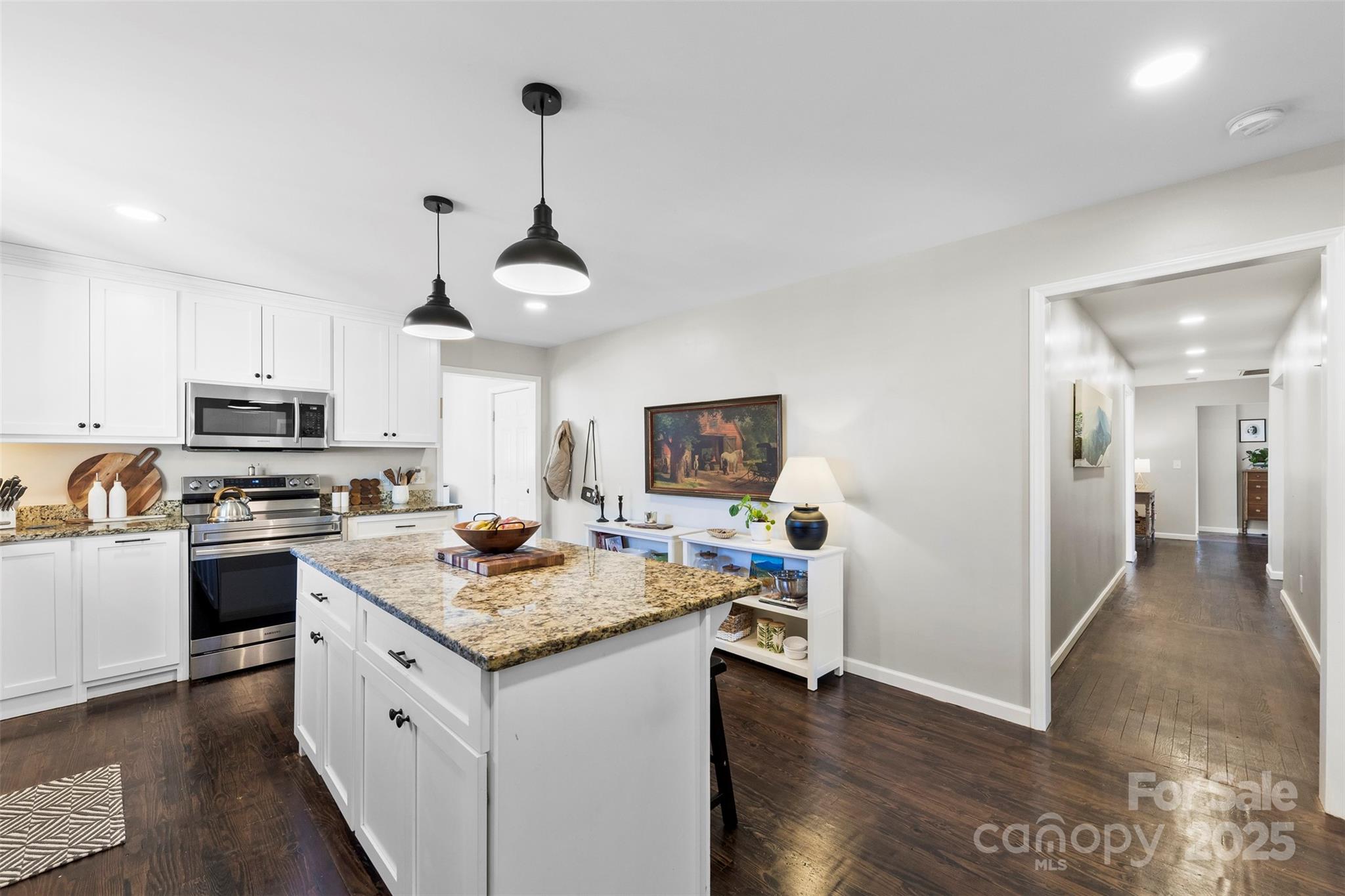 Imagine weekends where you stroll to downtown Kings Mountain for dinner with friends, or a quick stop at your favorite coffee shop. This home truly puts you in the heart of it all, and the inside is every bit as charming as the location. Remodeled and thoughtfully redesigned in 2022, this oasis just feels like home. The spacious living room welcomes you in with plenty of natural sunlight and cozy gas logs, creating the perfect spot to unwind. Just off the living area, you’ll find a formal dining room that’s ideal for dinners or entertaining friends, and a sunroom that makes the perfect home office, playroom, or flex space, whatever fits your lifestyle best. The custom kitchen is a showstopper with tons of cabinet space, granite countertops, a breakfast bar perfect for casual mornings, and sleek stainless-steel appliances that make cooking a joy. The laundry/mudroom is just as dreamy, with custom cabinetry and plenty of space to stay organized. Down the hall, you’ll find three spacious bedrooms, each with its own spacious closet. The primary suite features a beautifully designed ensuite bath with quartz countertops, custom cabinetry, and a tiled walk-in shower. The second full bath doesn’t miss a beat either, with a double vanity, quartz counters, and updated tile and lighting that make it shine. Head outside to a partially fenced backyard offering both charm and function, complete with a privacy fence along the back side of the property, and a detached two-car carport. Homes like this, move-in ready, and a stroll to everything downtown, don’t come around often. Schedule your showing today.