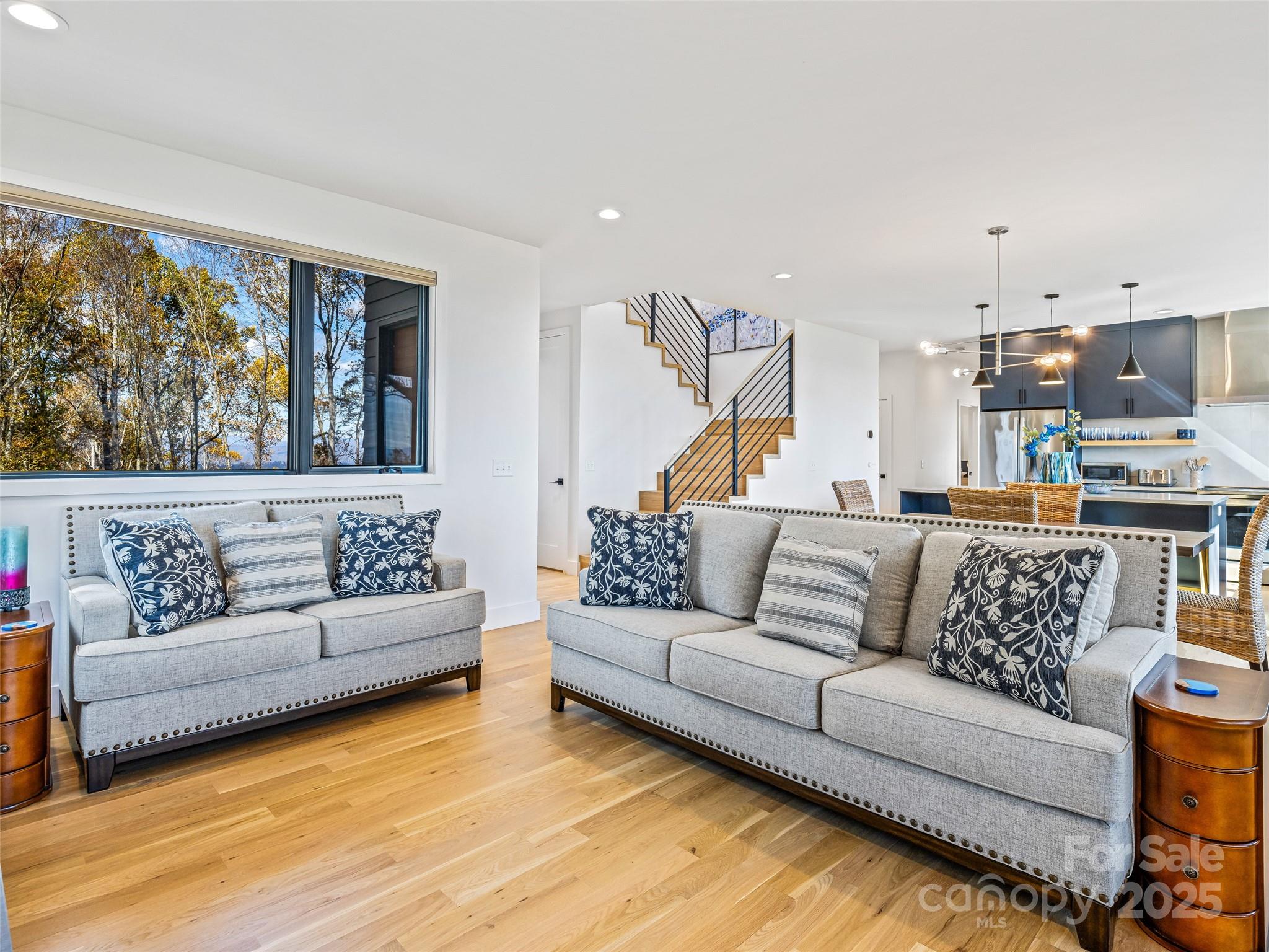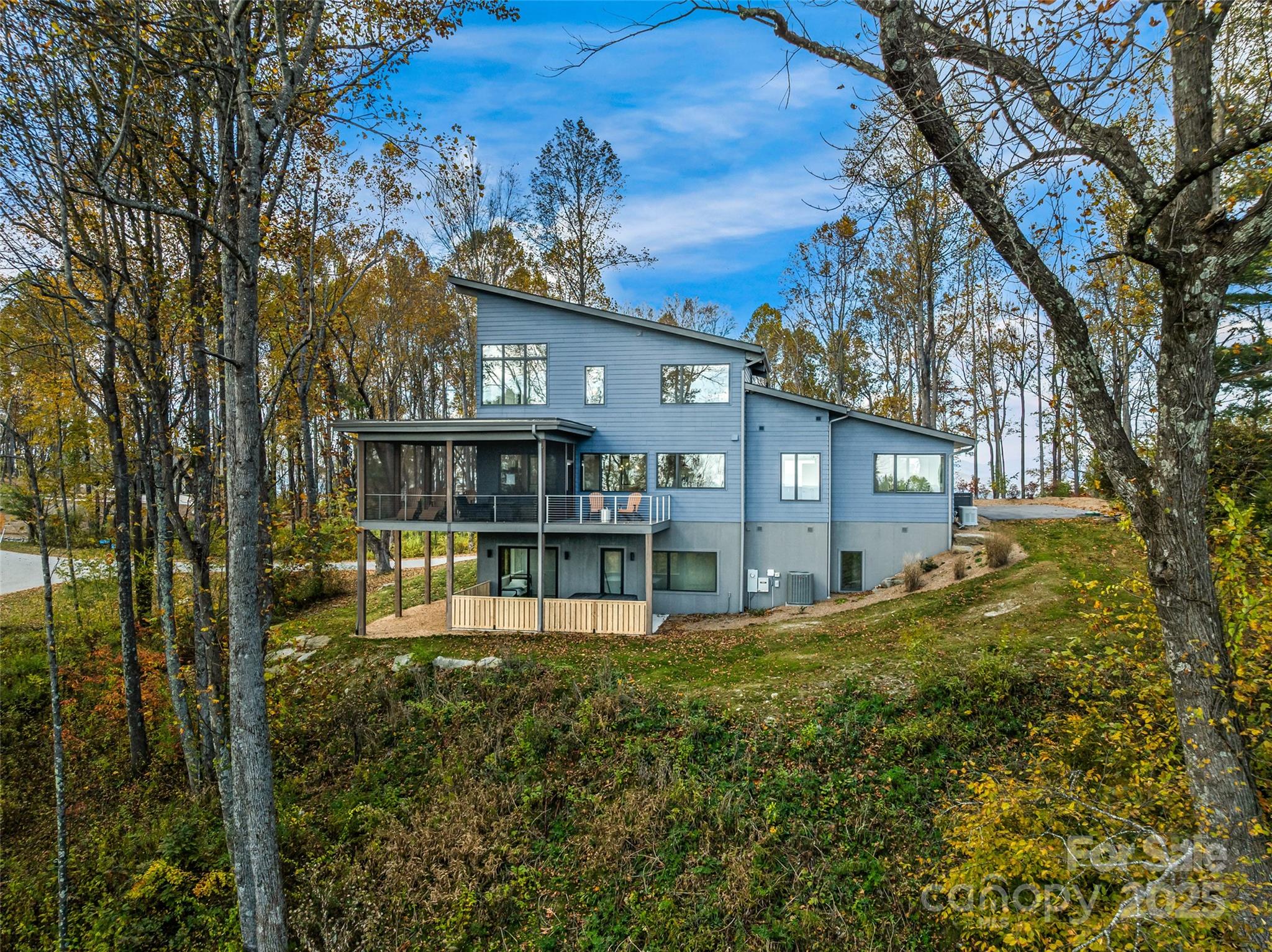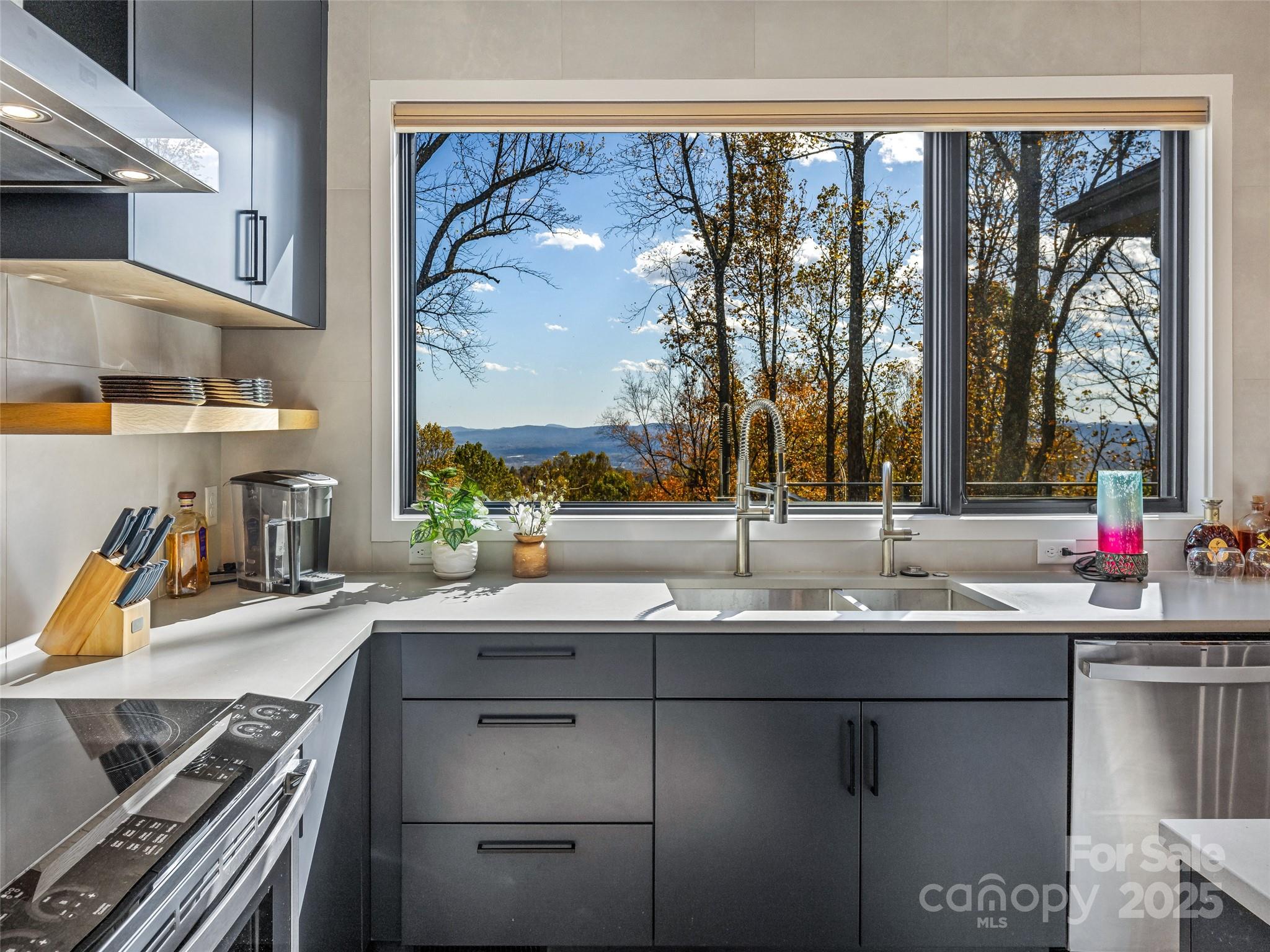 Experience living like no other on Couch Mountain. Sitting atop the mountain, enjoy year round - long range views to the north and the south for an unparalleled lifestyle. This modern masterpiece boasts views from every level through the many large windows providing lots of light from the top to bottom. Main level living is easy with plenty of space for family and friends, both upstairs and in the finished terrace level. Ask to see our feature guide to read all about the many finer feature of this masterfully built home. With community allowed 7 day rentals, this home is perfect for a lock and leave lifestyle with opportunities for income when not in use. The neighborhood is welcome and inviting with hiking trials, community gardens, and friendly folks who meet up regularly for activities within this secure gated community. Convenient to shopping and dining in Hendersonville, Mills River, and South Asheville. Convenient to AVL airport too!