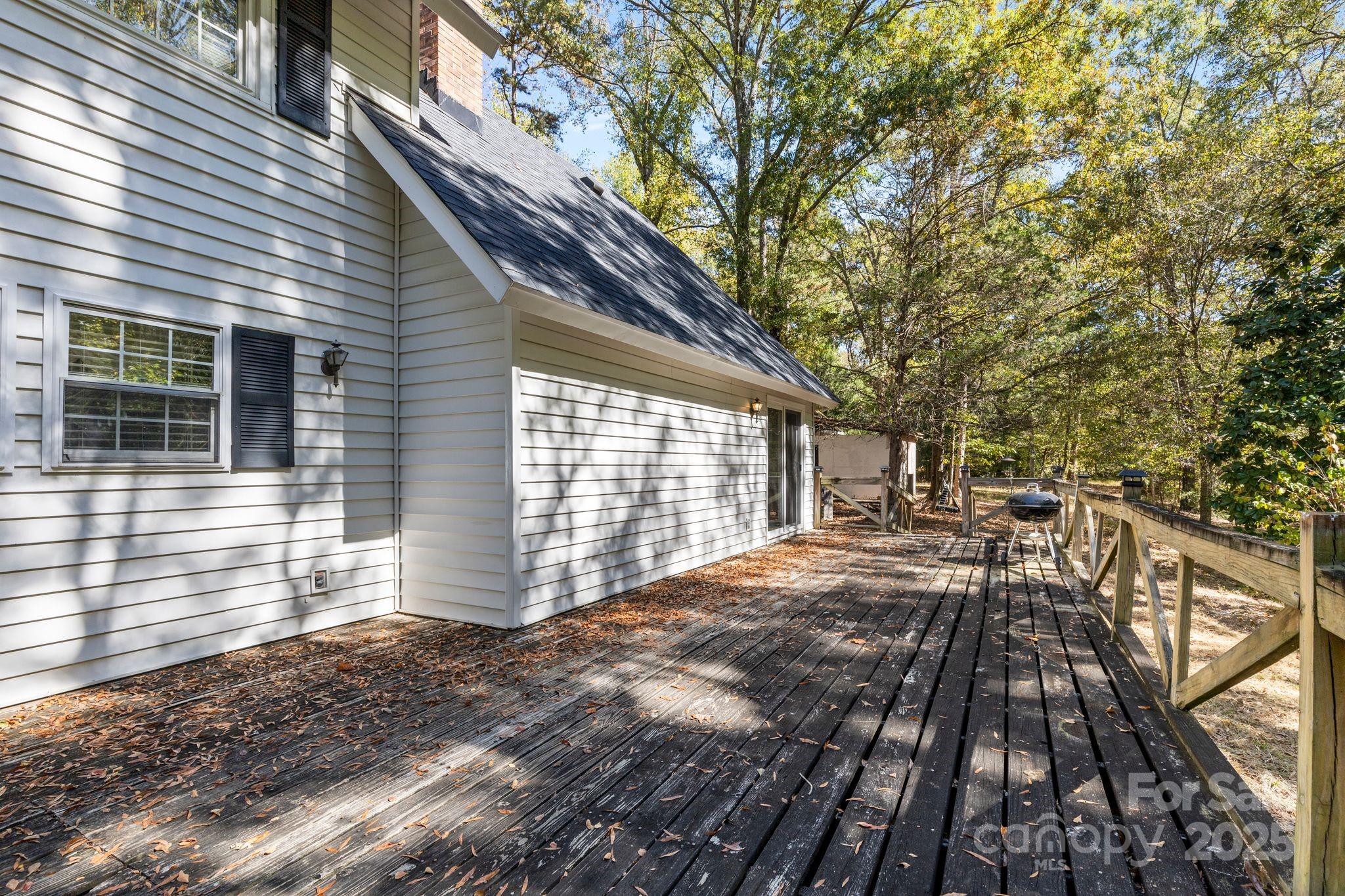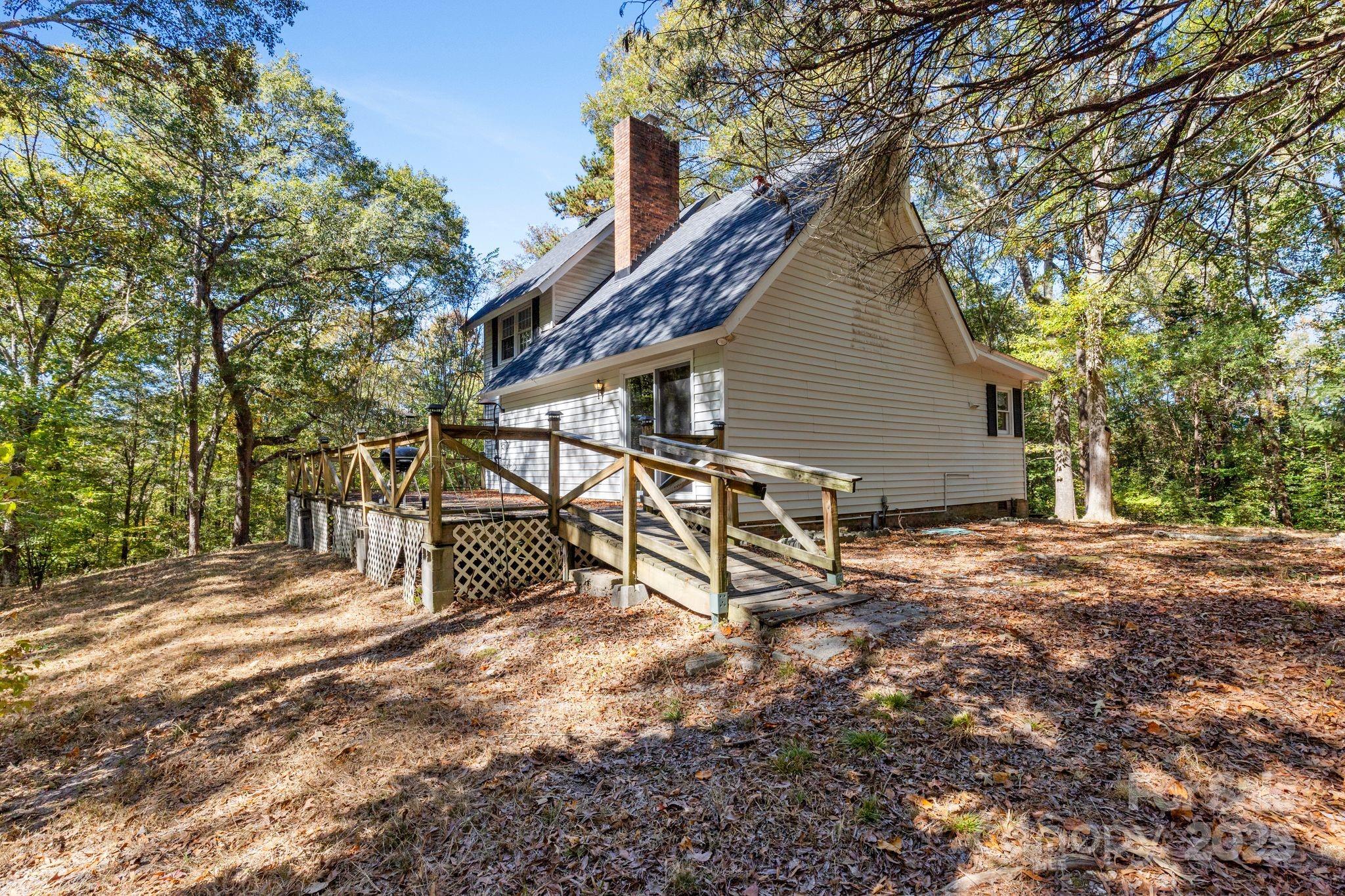 Beautiful 6+ acre private parcel that includes stream/creek is now ready for its next owner. Cute little three bed (primary on main) two bath home that could use renovation/updating. Covered front porch and large wood deck. There is a large barn/storage building on site as well. Convenient to Johnston Road and all support facilities and just a short drive to Ballantyne or Waxhaw. Bring your imagination, this canvas is ready for your creativity.