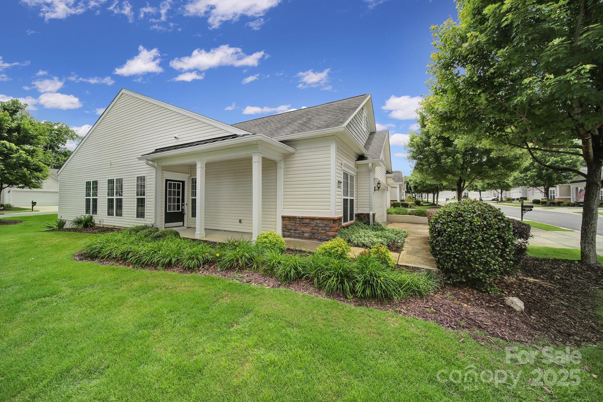 Move-in ready Villa with 2-car garage in sought-after 55+ Sun City Carolina Lakes! Private END unit, FRESHLY painted throughout with wood flooring in main living areas & NEW carpet in bedrooms. A separate study sits just off the foyer, ideal for a home office or craft space. Natural light streams into the living room with breakfast bar overlooking the kitchen featuring gas range, SS appliances, granite countertops, recessed lighting, & eat-in dining area. Refrigerator & washer/dryer included. The primary suite sits at the back of the home with double doors opening to the private ensuite bath, dual sink vanity, walk-in shower, & spacious walk-in closet. Just down the hall is the guest bedroom, hall bath & laundry room. Enjoy the summer breeze on the screened porch with ceiling fan or soak up the sun on the back patio overlooking shade trees for additional privacy. Epoxy garage floor. Enjoy resort-style amenities, social clubs, and minutes to grocery, restaurants, shops, medical & more! HOA covers lawn maintenance; mowing, edging, fertilizing, weeds, annual mulching. Master insurance policy on structure, exterior maintenance, irrigation system as well as access to all amenities including; indoor/outdoor pools, lakehouse, waters edge park, gym, softball fields, pickle ball, tennis courts, bocce ball, shuffle board and multiple stocked lakes for fishing, with endless walking trails.
