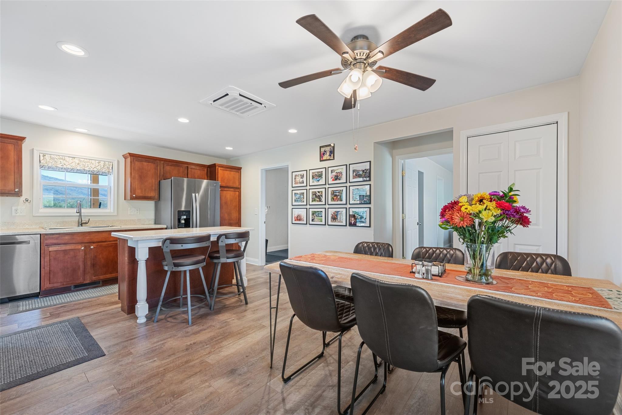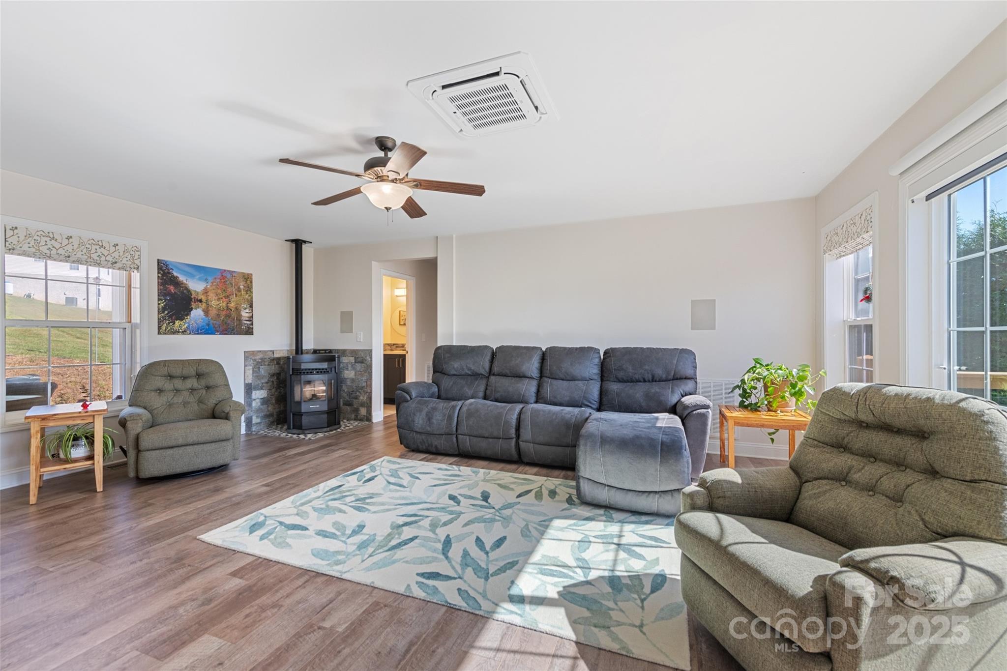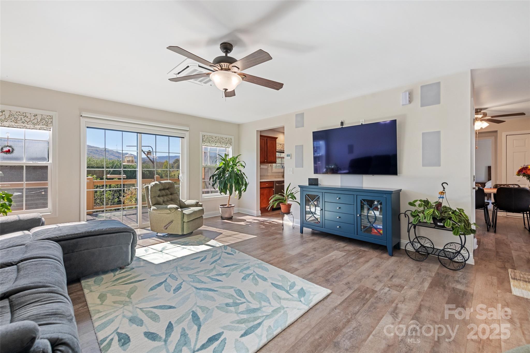 Beautiful ranch style home in a private subdivision with big mountain views, featuring plenty of natural daylight. This home has an easy one-story split bedroom floor plan, with a cozy pellet stove that was recently installed as well as updated bathrooms. The spacious kitchen opens to a bright dining area. Walk out to the screened in porch and enjoy your coffee looking out over the mountains and beautifully maintained yard. A large driveway lends space for ample parking and ground level entry to the front door. Great central location to schools, shopping and historic downtown Franklin. Furniture and decor is negotiable.