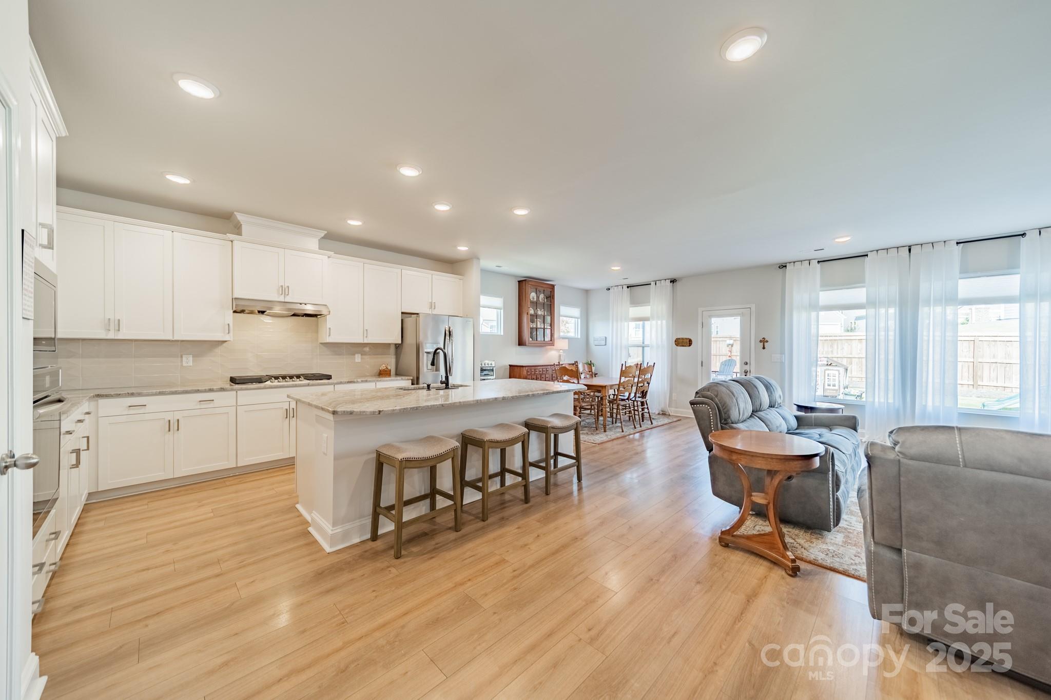 Welcome to your better-than-new 1.5-story home! The primary suite is conveniently located on the main level, complemented by an open floor plan designed for modern living. The gourmet kitchen boasts sleek finishes, a spacious island, and ample room to gather. A private office and guest room on the main level provide ideal flexibility for work or visitors. Enjoy peaceful evenings on this quiet street, just minutes from Ballantyne’s shopping, dining, and entertainment. Outside, the fully fenced backyard offers privacy and is designed for easy maintenance, giving you more time to relax or entertain. Move-in ready and styled for today’s lifestyle, this home blends comfort and convenience!