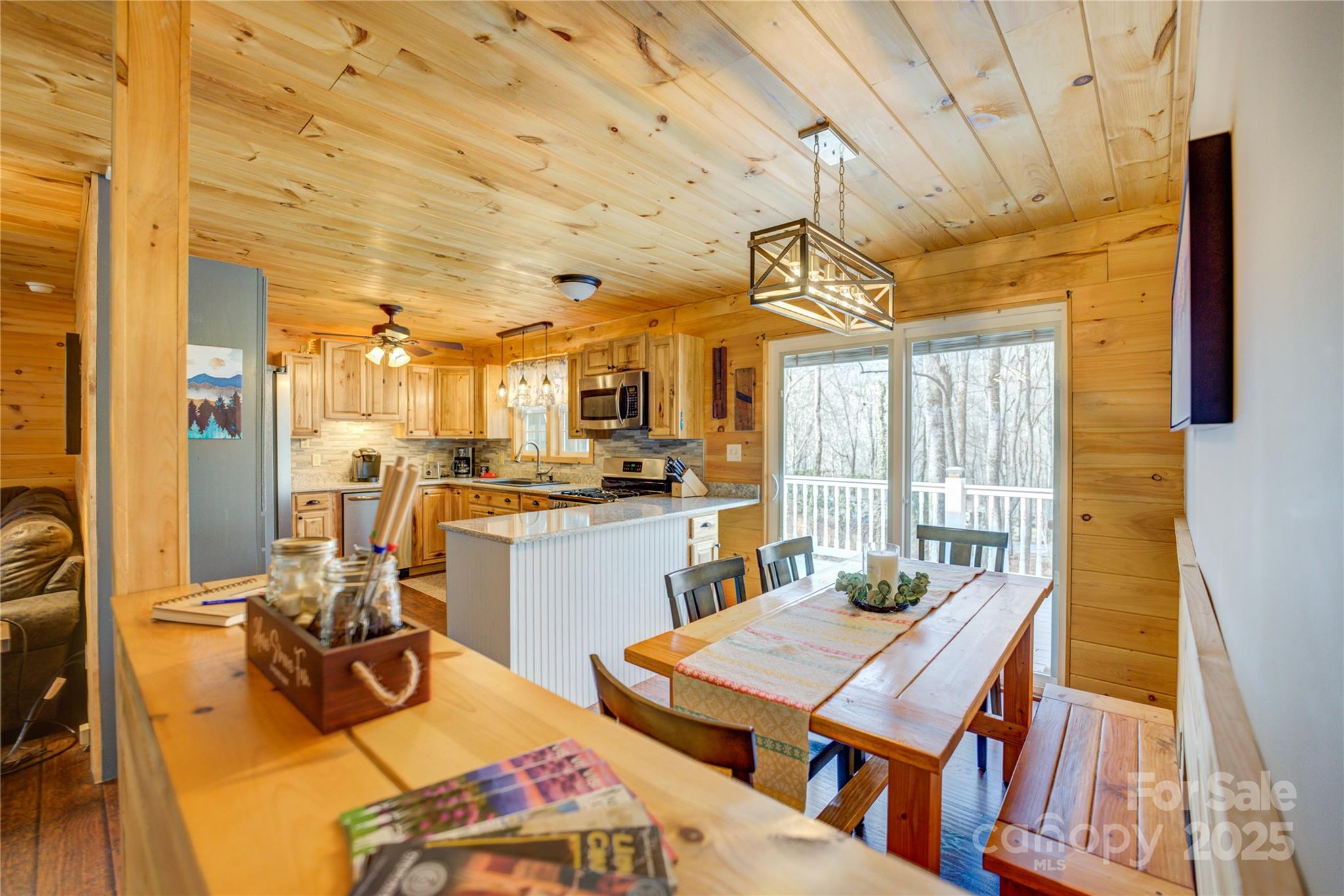 Beautifully updated 3 BR 2bath home in the heart of Maggie Valley! Very private end of the road wooded lot with easy year-round access. Large hot tub to enjoy that is only steps away. This home is currently used as the owner’s mountain getaway and as an active vacation rental. Close to skiing, hiking, and many local activities and restaurants. Can be used as a full-time residence or keep it as income producing home that you can use whenever you want to come to the mountains. The oversized 900 sf -2 car garage is perfect for a shop and still plenty of room for cars. New roof in 2025. Fenced in dog run. Less than 10 minutes to Waynesville and 30 minutes to Asheville. This is a must see!