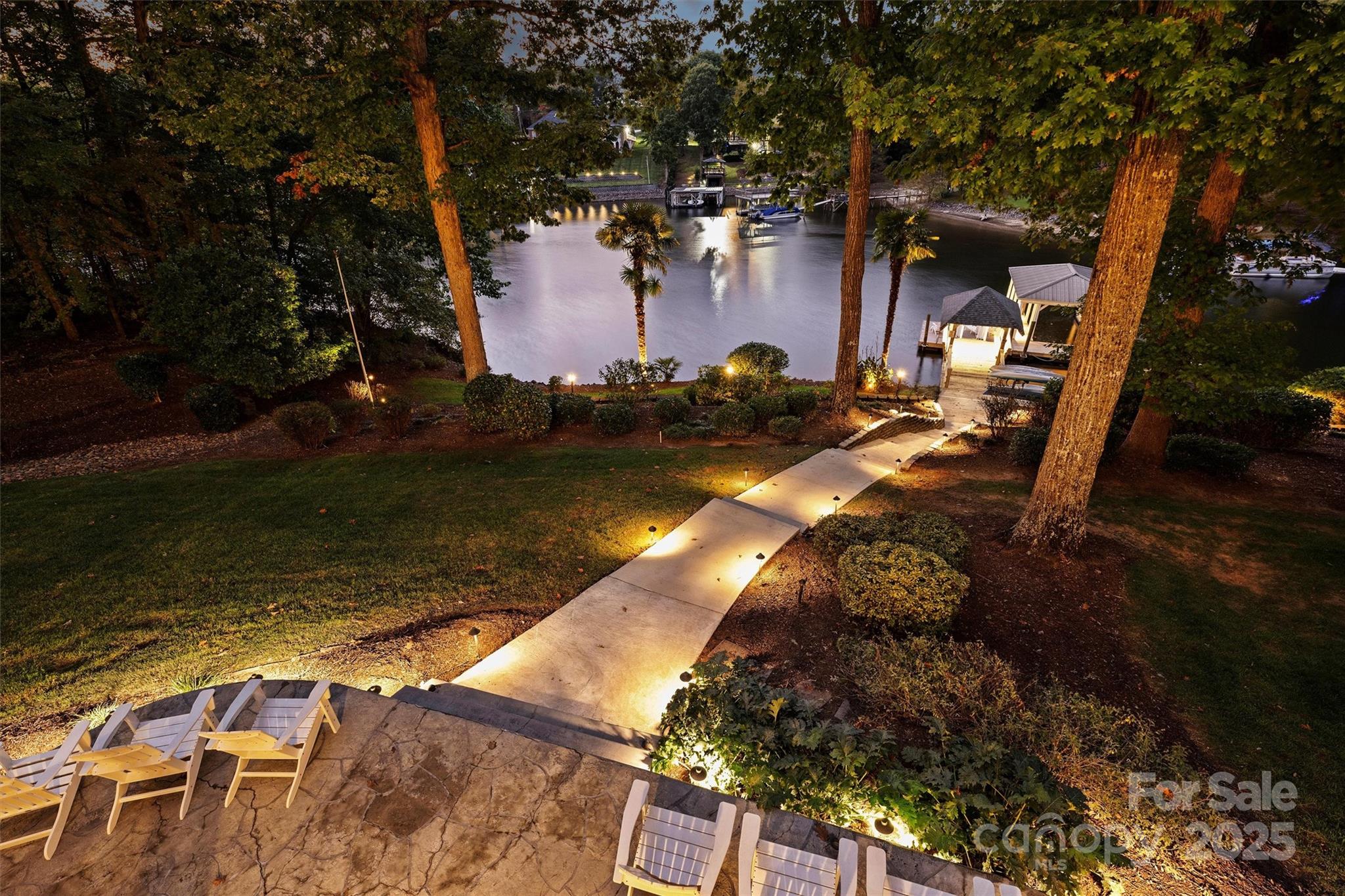 Welcome to this stunning turnkey luxury waterfront retreat in a serene cove offering lovely Lake Norman views, beautiful landscaping, and extensive outdoor lighting. Designed for comfort and connection, this exceptional lakefront home combines open-concept living, multiple outdoor spaces, and resort-style amenities perfect for family, entertaining, or short-term rental potential. The main level features a bright open floor plan with lake views, connecting the spacious living room, a gourmet kitchen with a central island, and an eat-in dining area opening to a wraparound lakeside deck that includes a BBQ grill and outdoor dining in the covered breezeway. The primary bedroom includes a sitting area, a walk-in closet, and an ensuite bath. A full laundry room completes this level. Upstairs, a cozy loft opens to an upper deck with Adirondack chairs and sweeping lake views. One guest bedroom has two queens, and another flex room has a queen, a sitting area, and private deck access. These rooms share a Jack-and-Jill bath with a dressing area. The lower level offers a recreation area with a wet bar, plus one bedroom and a flex room (this home has a three-bedroom septic), both of which are currently used as bedrooms. One has an ensuite/hall bath, and another has patio access to a bistro seating area overlooking the water. The converted two-car garage (fully functional as a garage if desired) is a true game room, featuring a 75” TV, sound system, refrigerator/freezer, shuffleboard table that converts to a bar, and a card table. Outside, enjoy resort-style living with a fully furnished patio, fire tables, and lakefront seating. A walkway leads to the boathouse and private dock, which are equipped with covered seating, a refrigerator/freezer, four kayaks, a paddleboard, two jet ski ramps, a swim ladder, and a boat slip. The boathouse is stocked with life jackets and lake-day essentials. There is also an additional 12 x 24 storage building adjacent to the house. This turnkey lakefront estate offers three bedrooms, two flex rooms, multiple living areas, and expansive decks designed for every season. Whether you’re soaking up the sun on the dock, relaxing by the fire, or enjoying sunset views, this home is the very best in luxury lakefront living—where every day feels like a getaway.