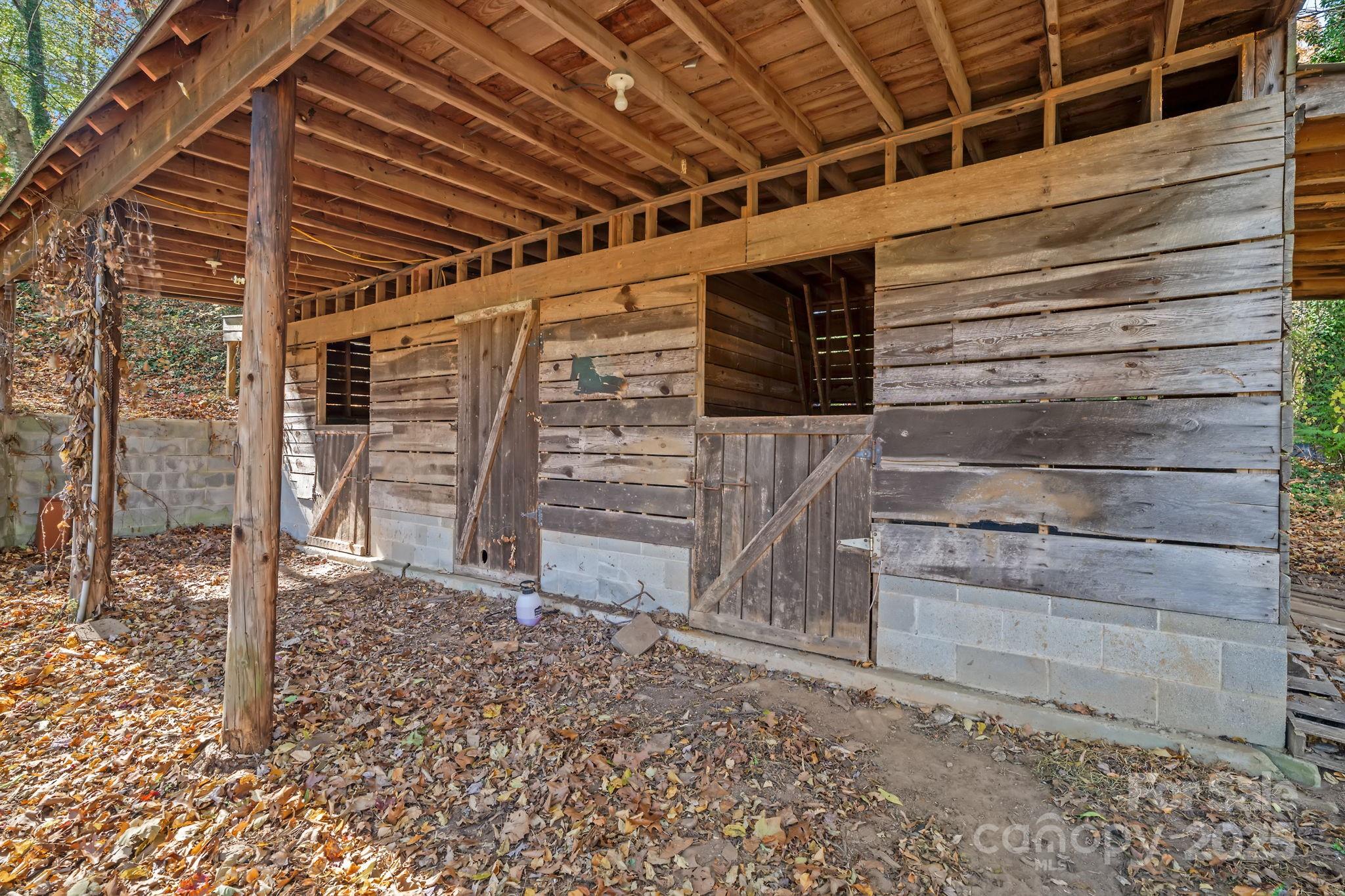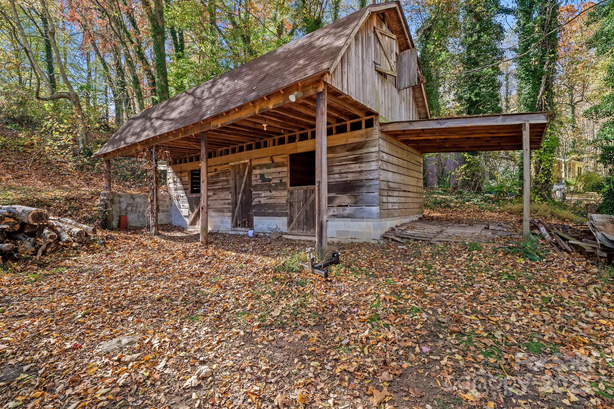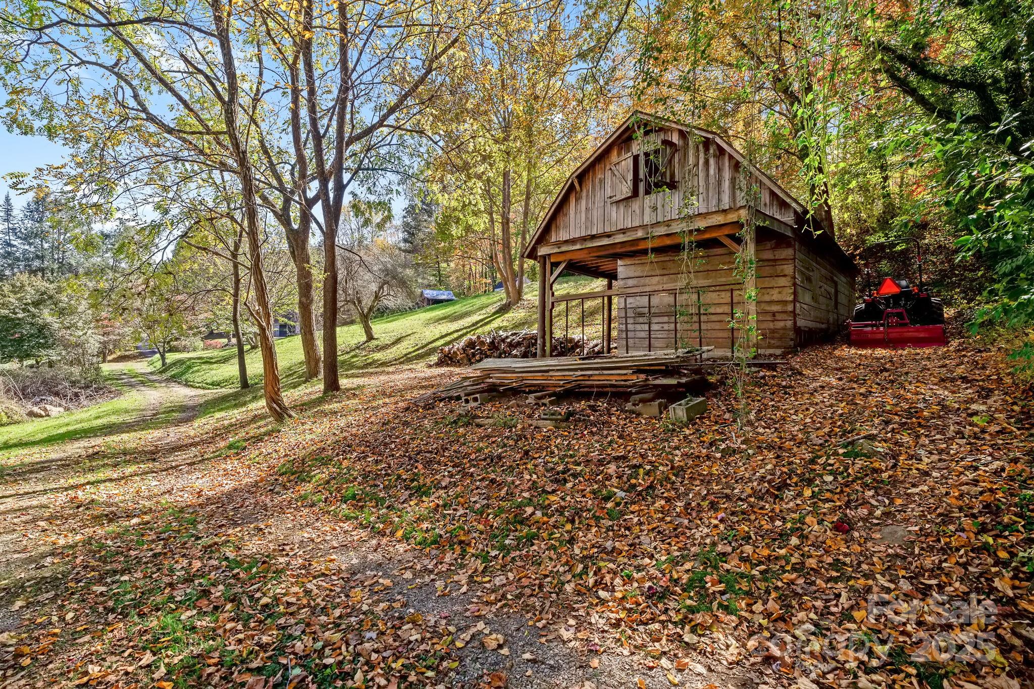 Breathe in the beauty of country living from this charming 3-bedroom, 2-bathroom home in Candler. Set on 1.43 peaceful acres with mountain views, this property offers all the ingredients for a small homestead or mini farm with a chicken coop, two stall barn with tack room, and an RV pad complete with electrical and septic hookups. Enjoy the bounty of fruit trees and grapevines, or simply relax on the inviting covered front porch overlooking the mountains. Inside, the spacious open floor plan welcomes you with a cozy fireplace in the living room and a kitchen featuring stainless steel appliances, a breakfast area, and warm, wormy chestnut cabinets. The large primary suite includes a walk-in closet and dual sinks in the ensuite bath. The basement expands your living space with a finished bonus or recreation room, along with a generous workshop space and garage area. With its picturesque setting and endless versatility, this property perfectly blends comfort, charm, and country appeal, all just a short drive from the shops, restaurants, and vibrant energy of downtown Asheville.