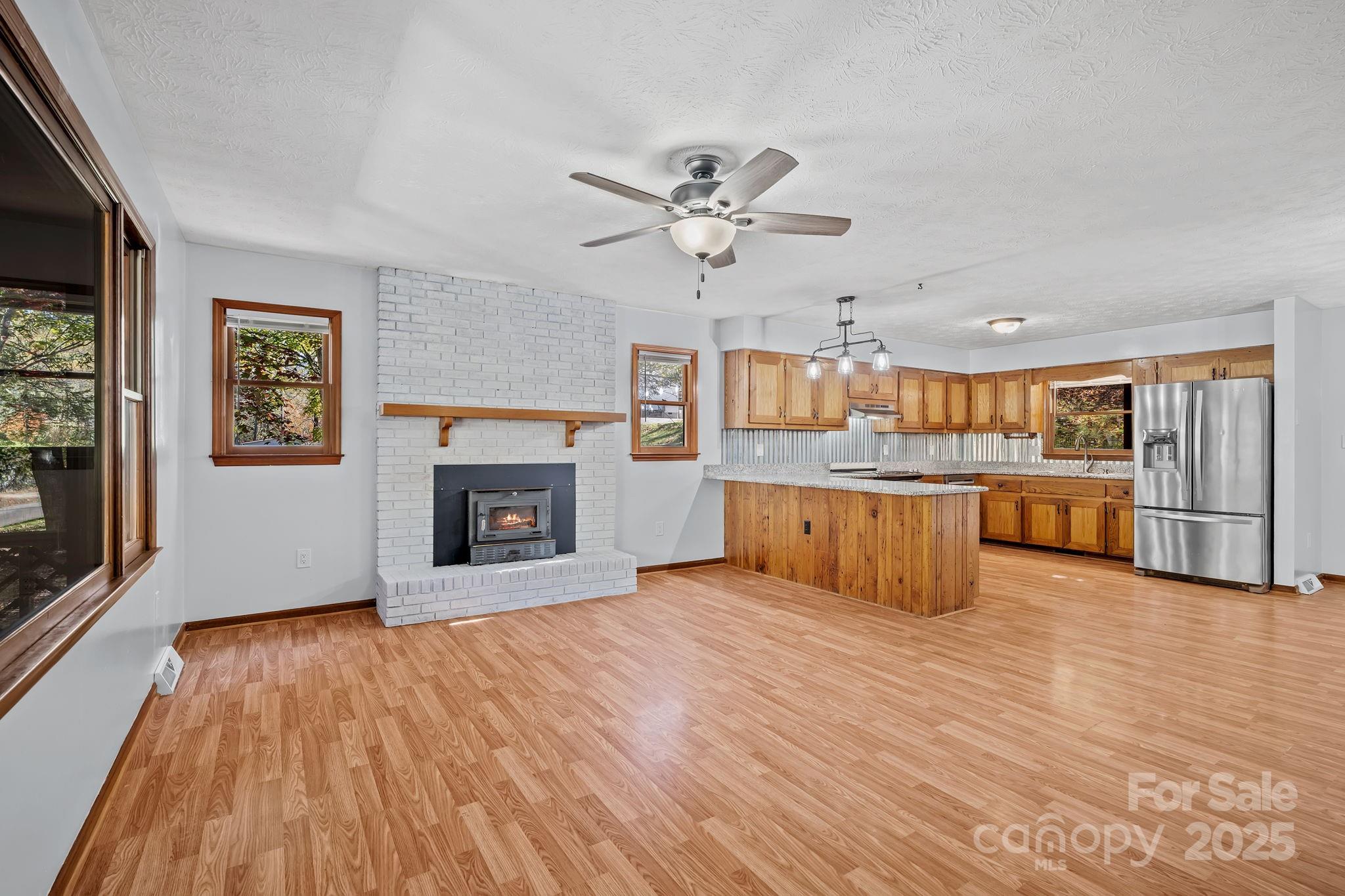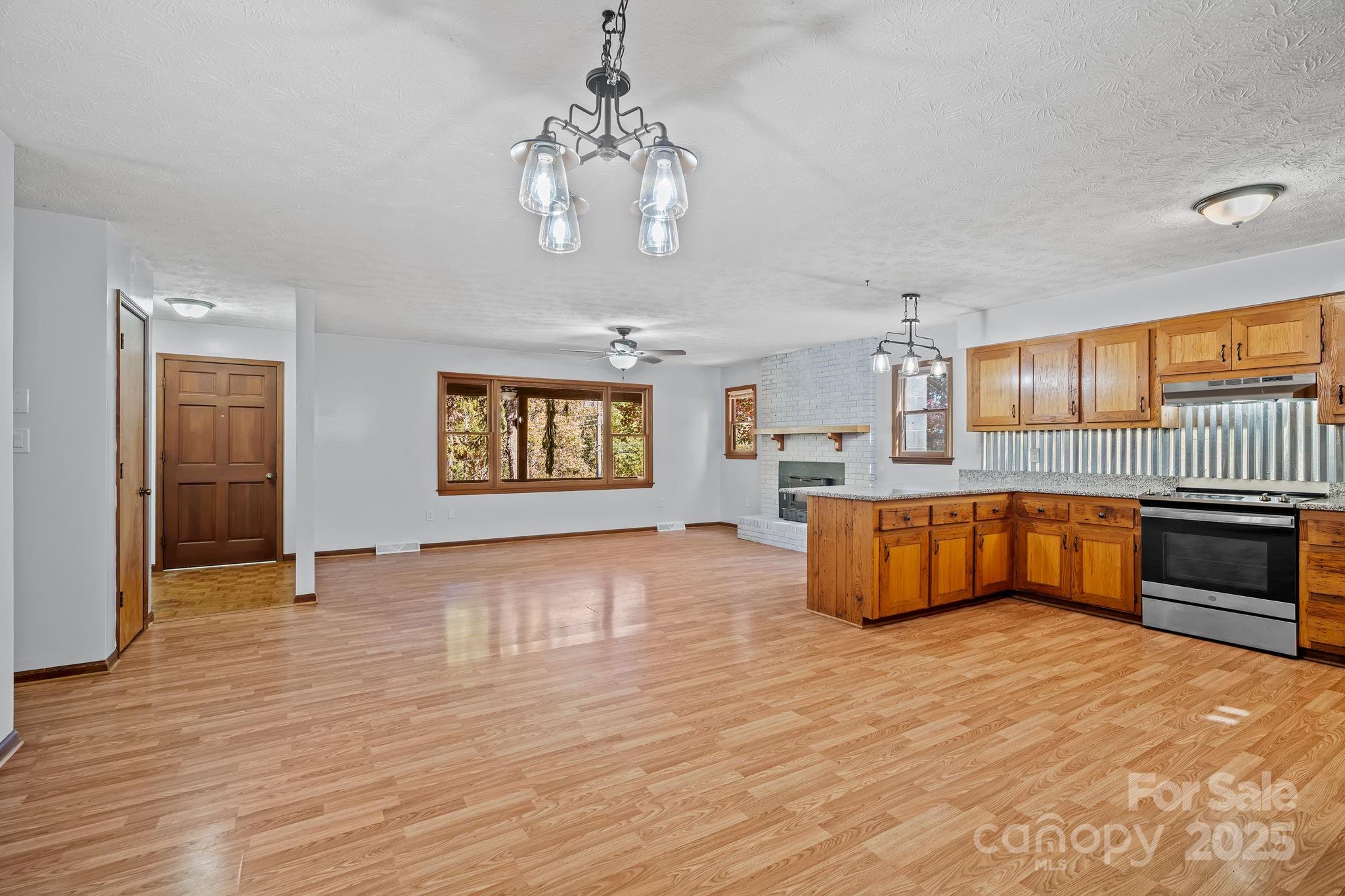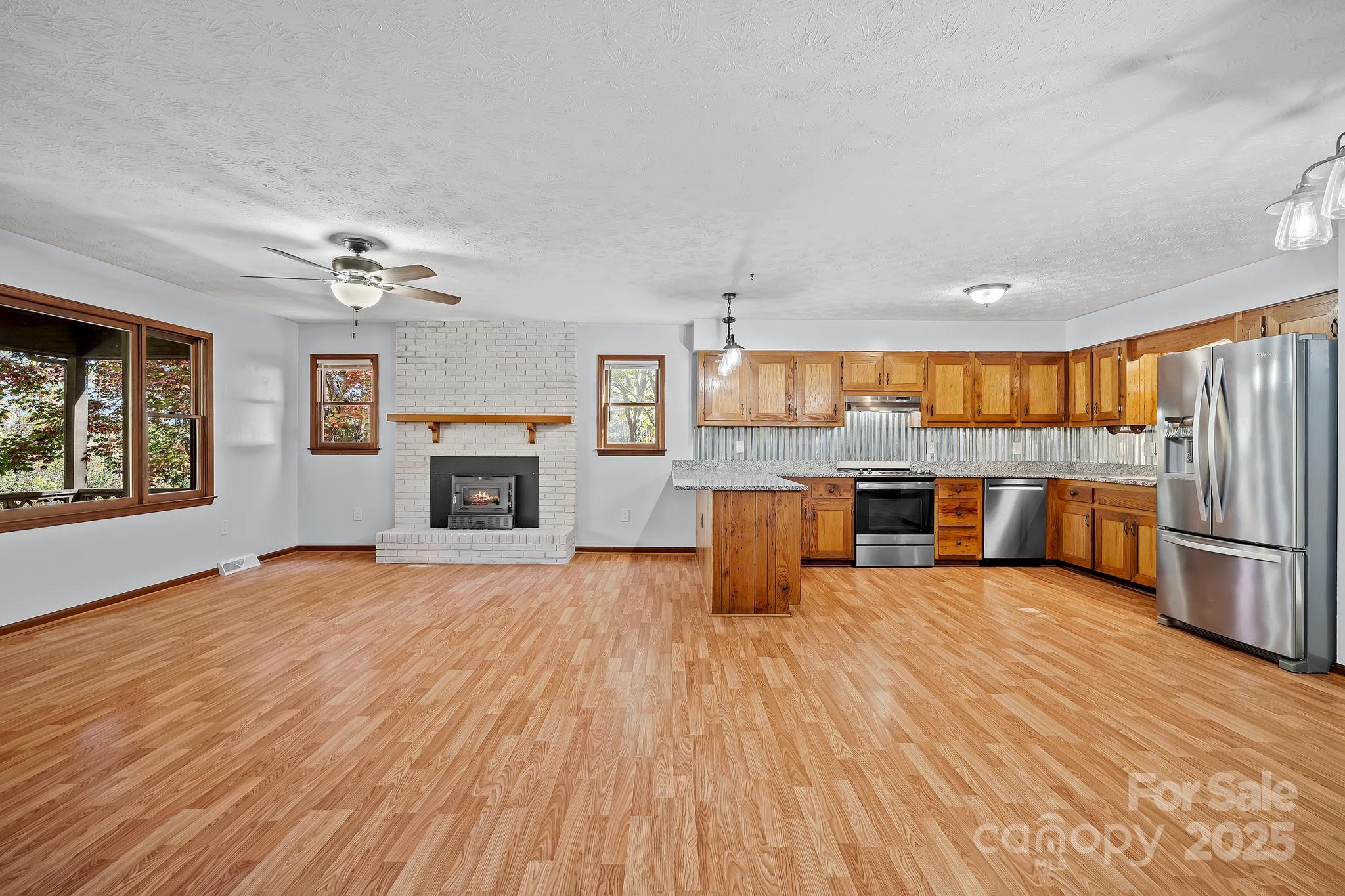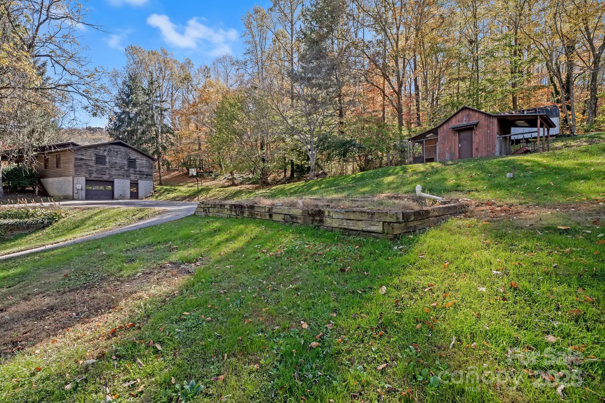 Breathe in the beauty of country living from this charming 3-bedroom, 2-bathroom home in Candler. Set on 1.43 peaceful acres with mountain views, this property offers all the ingredients for a small homestead or mini farm with a chicken coop, two stall barn with tack room, and an RV pad complete with electrical and septic hookups. Enjoy the bounty of fruit trees and grapevines, or simply relax on the inviting covered front porch overlooking the mountains. Inside, the spacious open floor plan welcomes you with a cozy fireplace in the living room and a kitchen featuring stainless steel appliances, a breakfast area, and warm, wormy chestnut cabinets. The large primary suite includes a walk-in closet and dual sinks in the ensuite bath. The basement expands your living space with a finished bonus or recreation room, along with a generous workshop space and garage area. With its picturesque setting and endless versatility, this property perfectly blends comfort, charm, and country appeal, all just a short drive from the shops, restaurants, and vibrant energy of downtown Asheville.