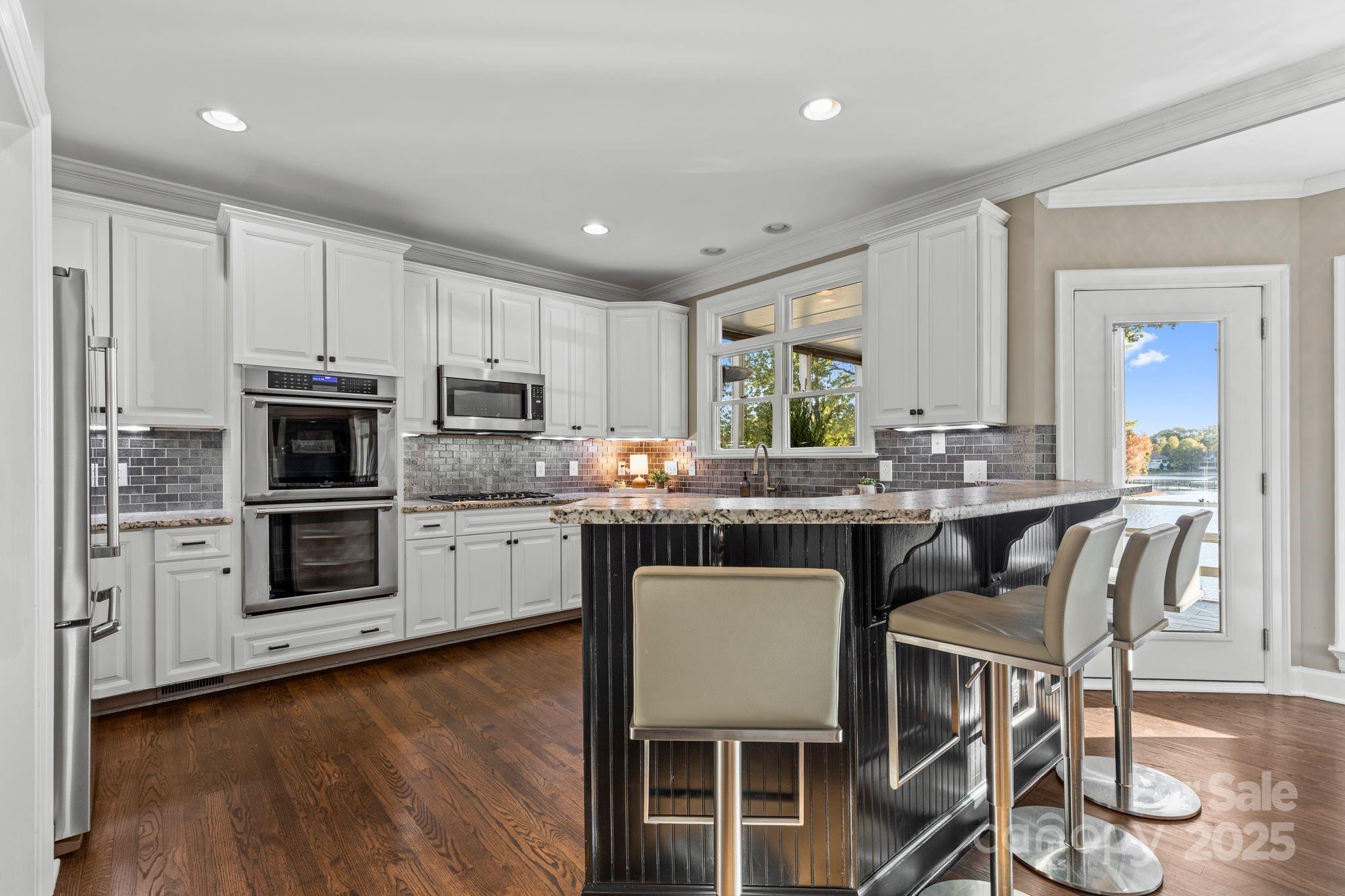 Welcome to your dream lakefront lifestyle on Lake Norman. This beautiful well maintained 6 bedroom, 4 bathroom home offers the perfect blend of spacious living, comfort and breathtaking water views. Located in the heart of the Peninsula, this setting in a quiet, wide cove with 3 different patios all lake facing will make getting up for early morning sunrises easy and special. The kitchen is equipped with leathered granite countertops and Bosch and Thermador appliances. The main floor has a guest bedroom with access to a full bath and fully floored hardwoods throughout. The upper floor includes 4 bedrooms, new carpet, and granite counter tops in all bathrooms. The walk-out basement offers extra storage, a bedroom, full bathroom, a bar area and easy access to the boat dock, making it perfect for entertaining. The newly painted downstairs porch would make for a great hot tub to enjoy unwinding in the evening. This is truly a special home that you don't want to miss out on!