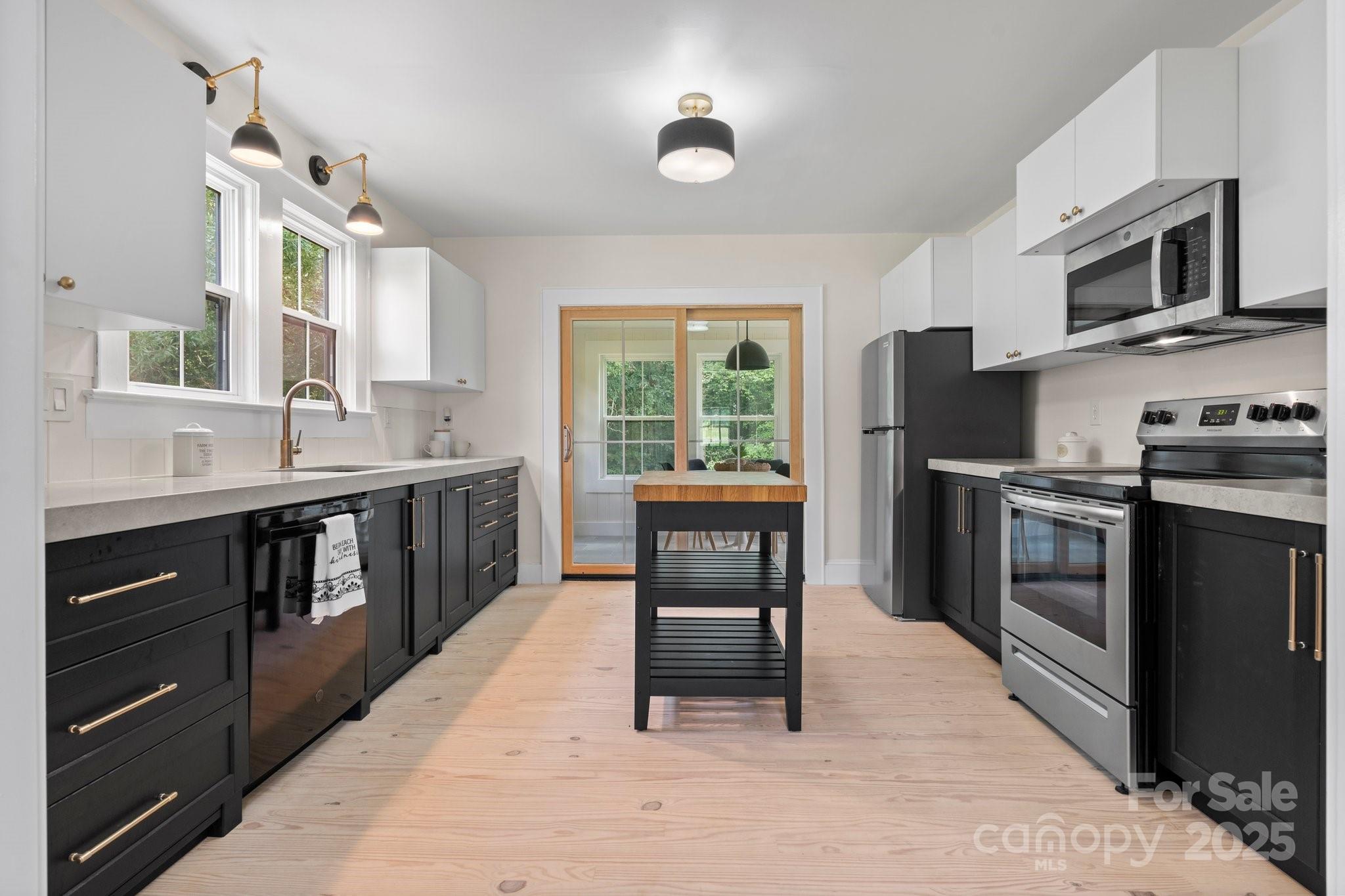 Located minutes from Lenoir Rhyne University, Hwy 127 and downtown Hickory - you truly cannot beat this location. let's make a deal this weekend! Modern charm meets classic comfort in this beautifully updated 2-bedroom, 1-bath home featuring a full basement and a spacious backyard perfect for furry friend and room to play. The heart of the home is the stunning kitchen, where sleek black lower cabinets with gold hardware contrast elegantly against crisp white uppers and warm wood accents. All drenched in natural light from oversized windows. Step into the fully enclosed back deck equipped with a mini split system for year-round comfort and enjoy peaceful views of the your back yard. With fresh finishes throughout, including stylish light fixtures, sliding barn doors and neutral tones, this home is truly move-in ready. Don't miss this thoughtfully renovated gem with extra space in the basement and outdoor room to grow!