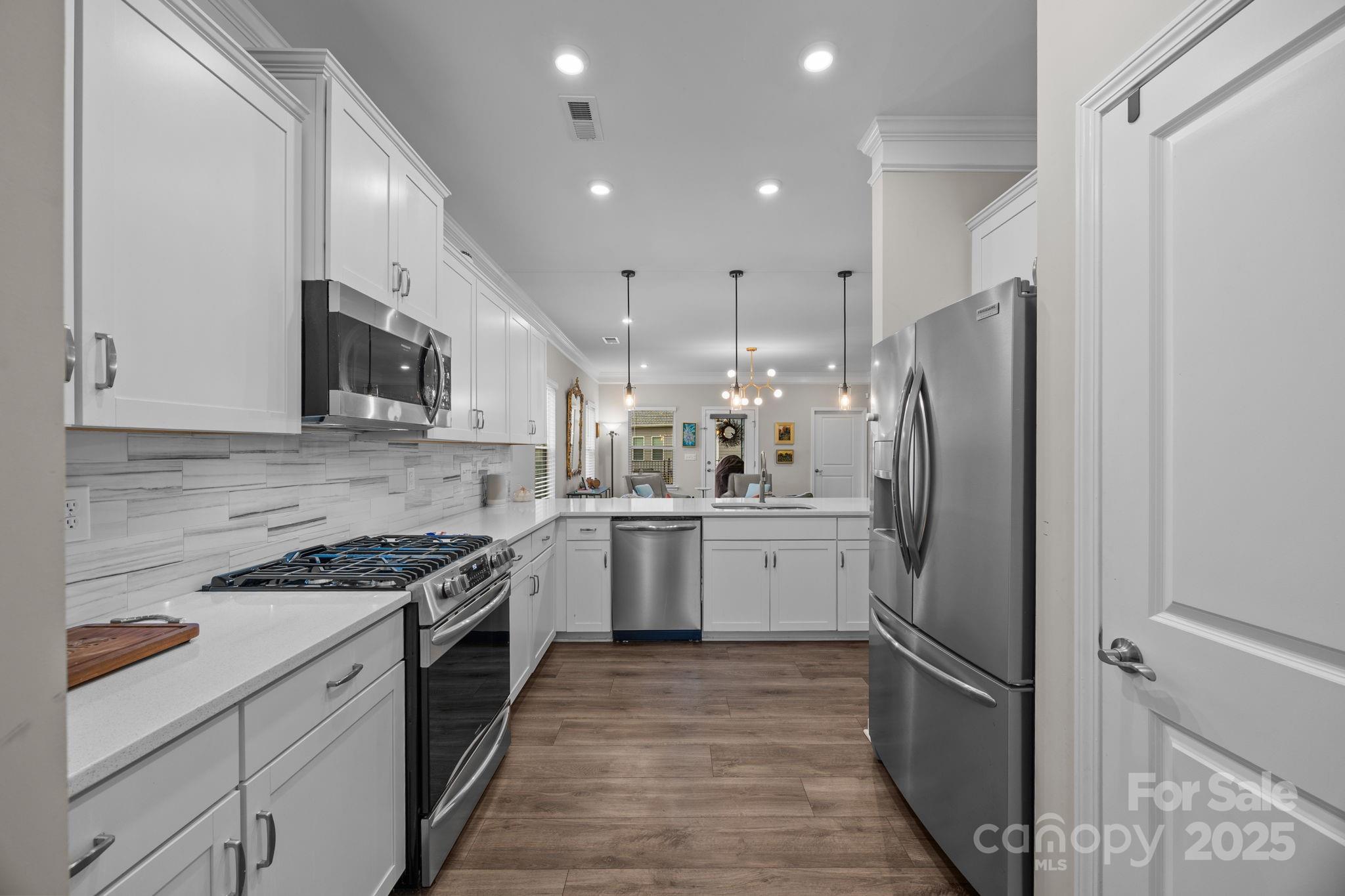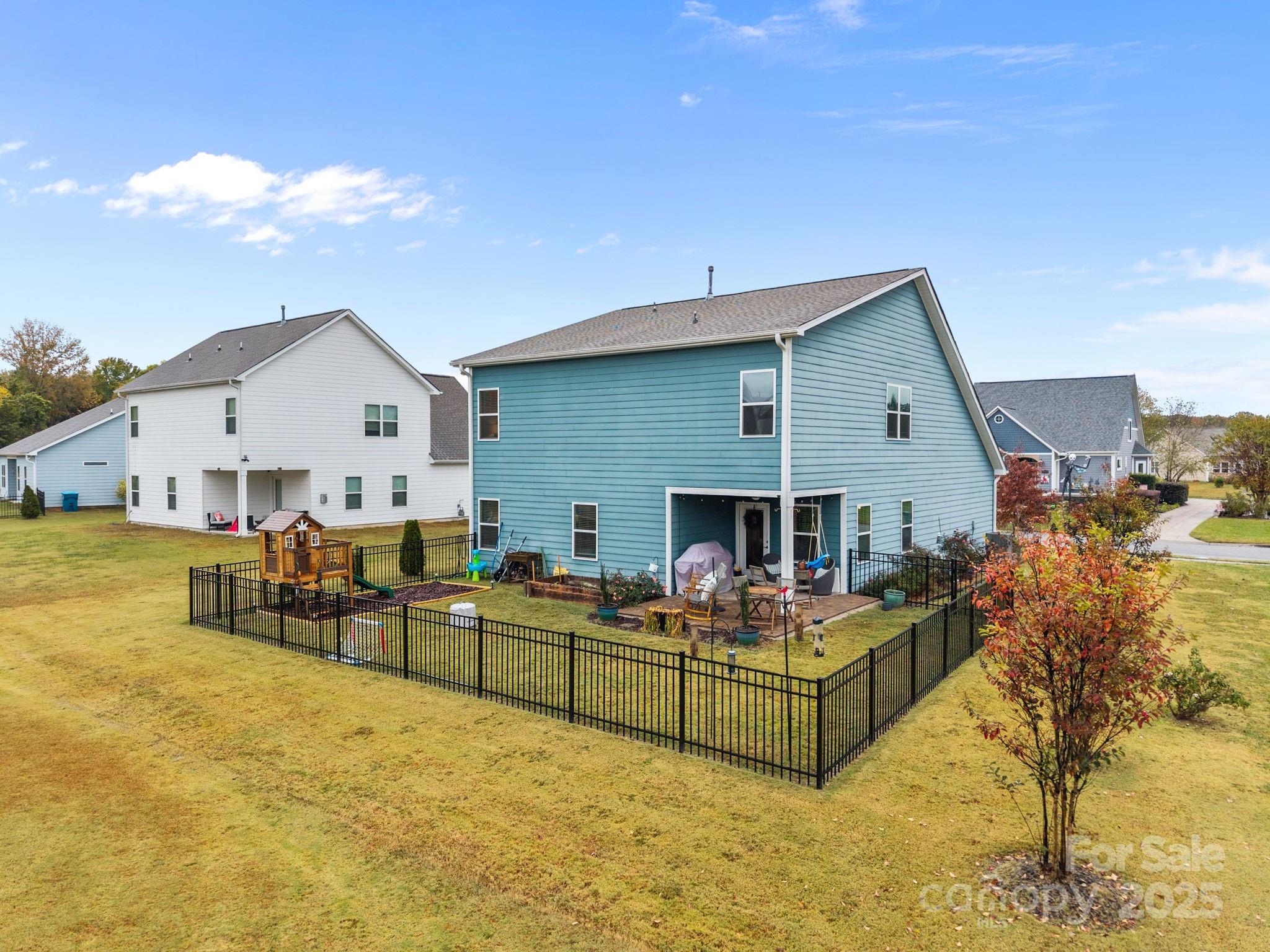 Built just four years ago, this 2,144-square-foot, two-story home features three bedrooms and two and a half baths with a smart layout that includes the primary suite conveniently located on the main floor. The home has been exceptionally maintained and enhanced with quality upgrades throughout. The kitchen is the heart of the home, featuring upgraded Frigidaire gas appliances, soft-close cabinetry with dovetail drawers, and modern lighting that carries through the kitchen, dining, living, and foyer areas. The open floor plan flows seamlessly, creating an inviting space for both entertaining and daily living. The primary suite offers a peaceful retreat with an oversized soaking tub, a separate walk-in shower, and custom shelving that maximizes closet space. Upstairs, two additional bedrooms and a spacious media room each include ceiling fans for comfort and function. Outside, the fenced backyard is designed for relaxation and play. The extended paver patio provides the perfect outdoor gathering space, complemented by a raised garden bed, a designated play area, and healthy, well-tended landscaping. Additional upgrades include an aluminum fence surrounding the backyard, closet shelving in storage areas and the garage, and durable hardboard siding for long-lasting quality. Every improvement from lighting and fixtures to layout and landscaping has been done with care and attention to detail. Nestled within The Reserve at the Country Club, this home combines modern living, thoughtful upgrades, and a convenient location close to the Country Club of Salisbury. It’s move-in ready, beautifully maintained, and truly a place to call home!