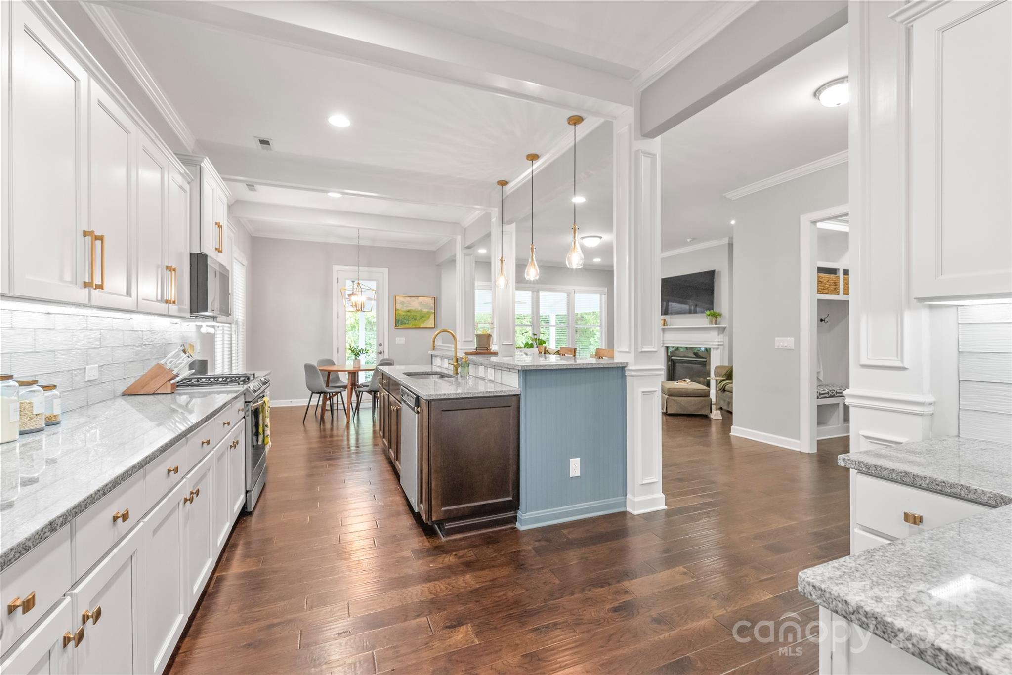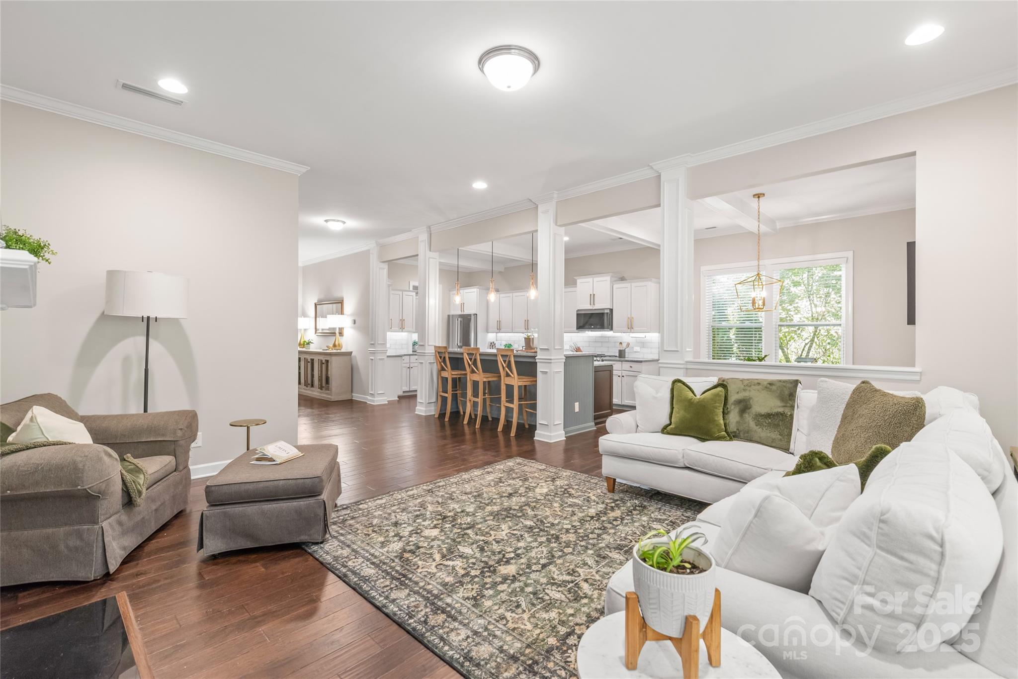 Welcome to the heart of Indian Land, located next to Ballantyne, where convenience meets comfort; just minutes from the new Costco, Target, and Lowe’s, and easy access to I-485. From the moment you step through the grand entry with soaring ceilings and 8’ doors, this beautifully maintained home draws you in with its warmth and character. Gleaming hardwoods flow throughout the main level, enhanced by elegant crown molding and timeless trim details. The chef’s kitchen is the true heart of the home, featuring new appliances, updated knobs, designer lighting, new backsplash and faucet, along with a walk-in pantry and butler’s area. The open flow into the cozy living room with fireplace makes it perfect for family gatherings or entertaining friends. Work from home in the private office, keep life organized with the custom-designed drop zone, and enjoy the updated powder bathroom for added convenience. A new furnace provides year-round comfort and peace of mind. Step outside and unwind on the newly constructed covered porch overlooking the private, fenced-in backyard with wooded views. Whether it’s morning coffee or evening conversations, this outdoor retreat is designed for everyday enjoyment. Upstairs, the luxurious primary suite features a private sitting area and large walk-in closet. Three additional spacious bedrooms, a second living area/bonus room, and a spacious laundry room with built-ins offer space and functionality for everyone. With thoughtful upgrades and spaces designed for real living, this home perfectly blends style, comfort, and connection—all in one of Indian Land’s most desirable locations.