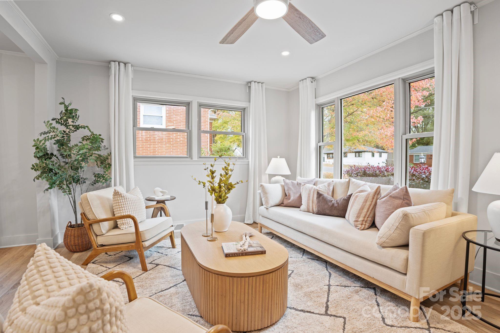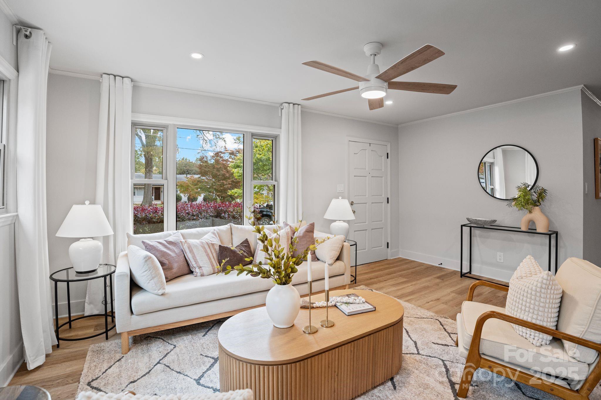 Welcome to 3241 Brixton Court — a beautifully updated 3-bed, 2-bath home offering nearly 1,800 sq ft of stylish living space. Every detail has been thoughtfully modernized with permitted renovations throughout, blending comfort, function, and design. Step inside to find an open-concept layout featuring beautiful quartz countertops and a bright kitchen perfect for entertaining. The inviting sunroom is a show-stopper — lined with full-length glass windows that fill the space with natural light year-round. The oversized primary suite offers dual closets and a luxurious walk-in shower, while two additional bedrooms provide flexibility for guests, work, or hobbies. Outside, enjoy a large driveway with ample off-street parking, a storage shed for your tools and projects, and a garden area awaiting your personal touch. Located walking distance to shamrock park, Charlotte country club, Briar Creek greenway, shopping, and dining — with Plaza Midwood, NoDa, and Uptown Charlotte just minutes away — this home combines quiet cul-de-sac living with easy access to everything the city offers.