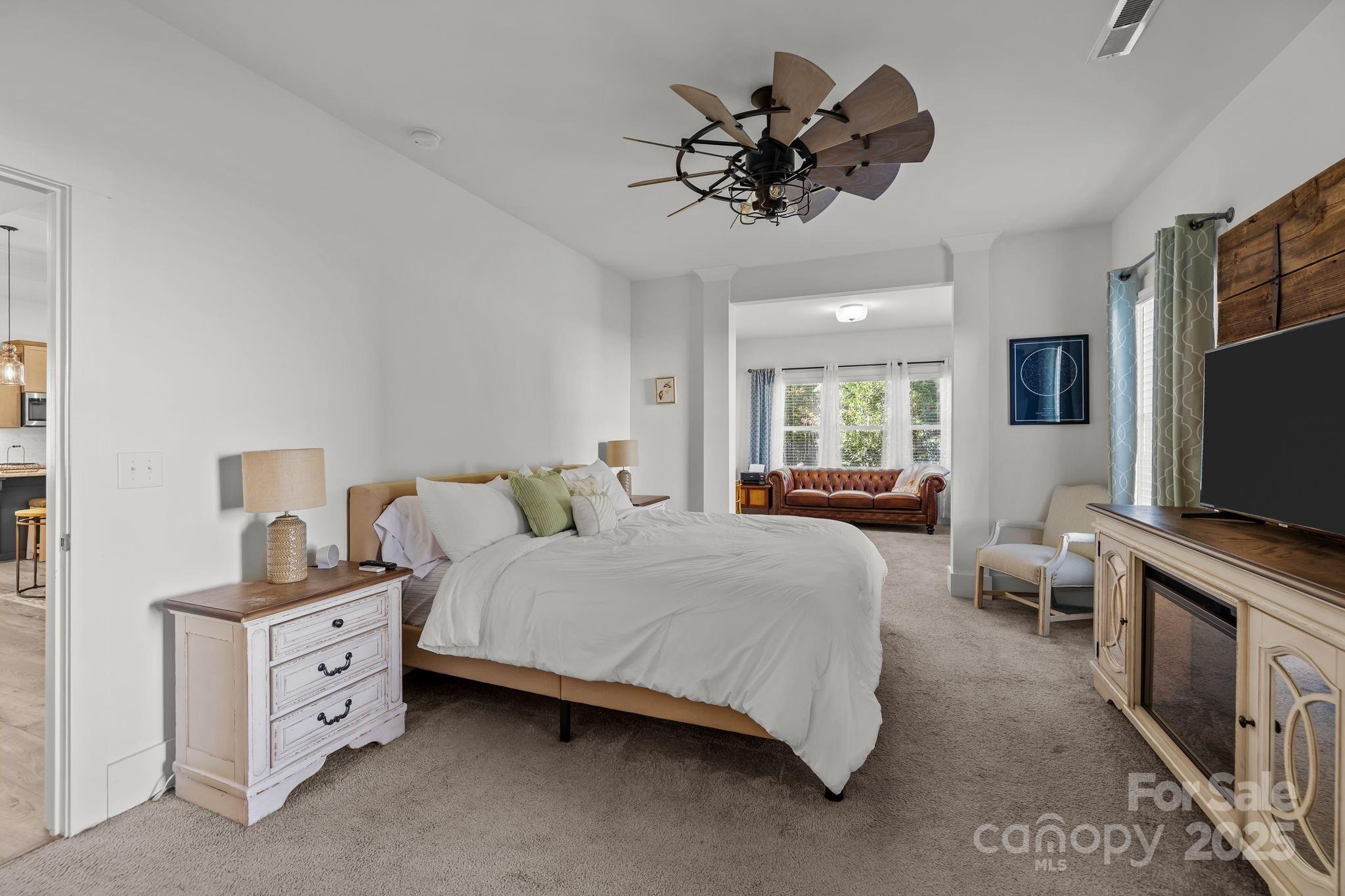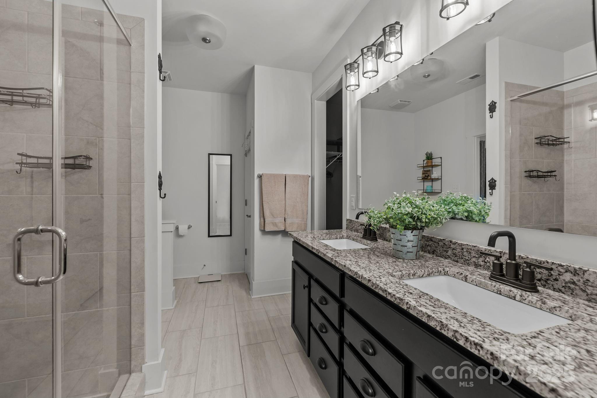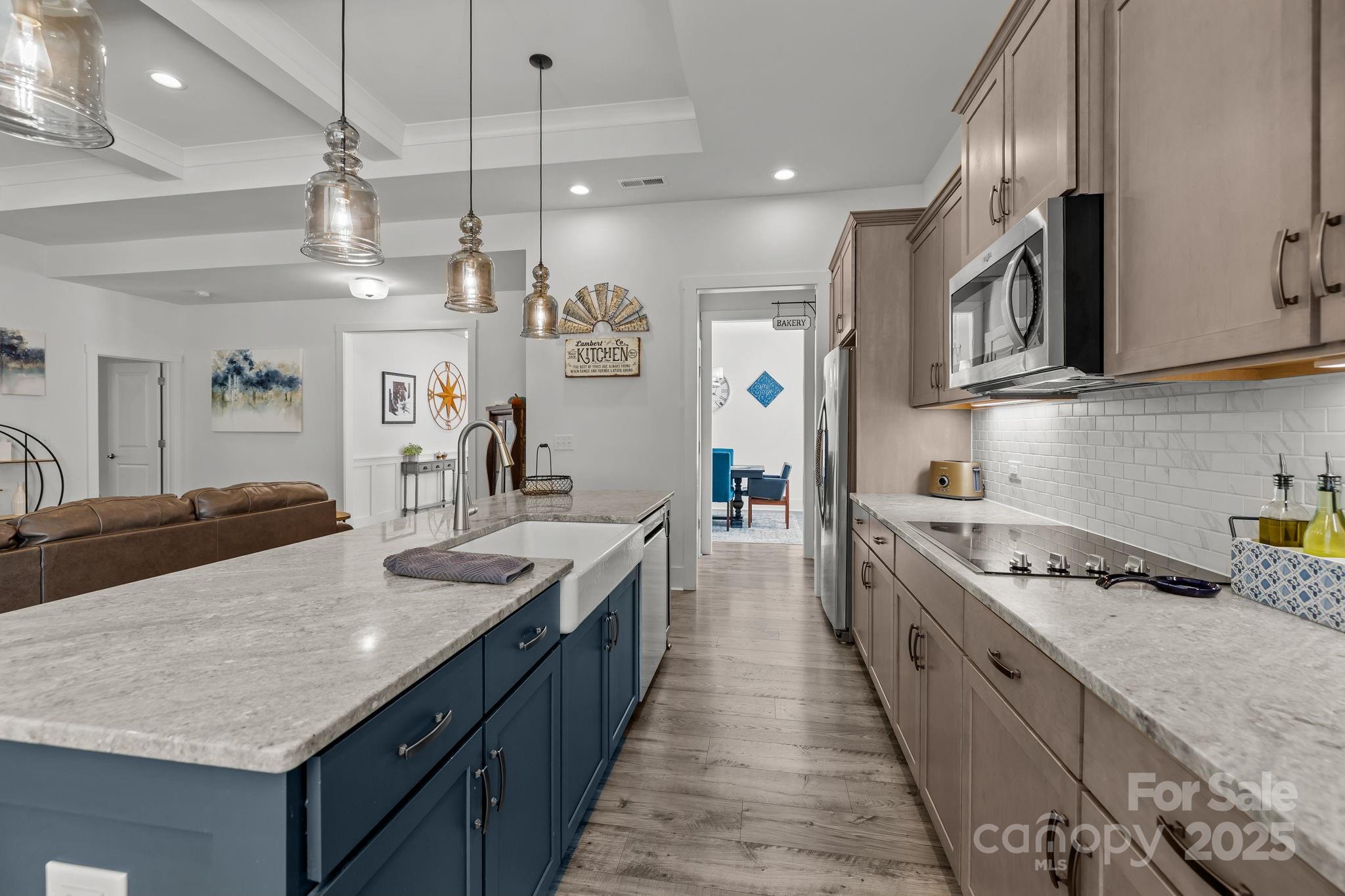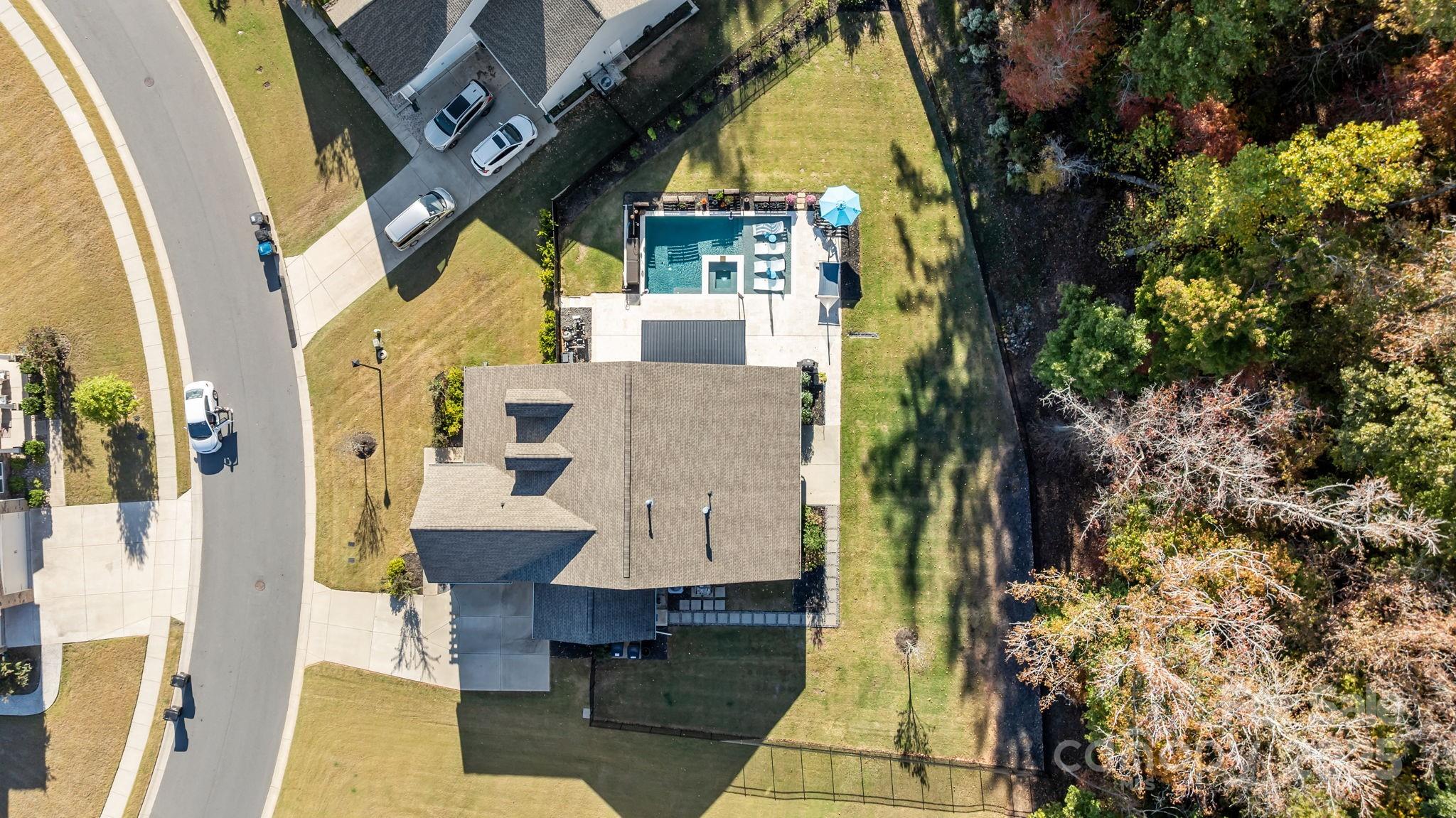 Set on a quiet cul-de-sac street, this custom Arts and Crafts–style home combines timeless architecture with modern livability. Stacked stone accents and fiber cement siding create lasting beauty and low maintenance, while the inviting front porch sets the stage for what’s inside—a home designed with care, comfort, and craftsmanship in every detail. Inside, the open concept unfolds with beautiful LVP flooring, detailed wainscoting, and elegant millwork throughout. The family room impresses with a coffered ceiling, gas fireplace, and transom-topped windows that fill the space with natural light. The kitchen makes a statement with its bold blue island, stainless steel appliances, tile backsplash, and pendant lighting. A butler’s pantry with walk-in storage, double wall ovens, and a separate cooktop makes entertaining effortless. The formal dining room offers the perfect setting for both intimate dinners and lively gatherings. The primary suite on the main level feels like a private retreat. A light-filled sitting area opens to the screened porch, while the ensuite bath showcases dual vanities, an oversized tile shower, and direct access to the walk-in closet and laundry room for thoughtful convenience. A second bedroom and full bath complete the main level. Upstairs, a third bedroom and full bath create the ideal guest or flex space, with every bedroom enjoying its own private bath access. Step outside, and the home truly shines. The screened porch overlooks a fenced backyard bordered by trees. The heated pool and spa take center stage—featuring color-changing LED lighting, a sun shelf for lounging, and full Aqualink remote control. An expansive patio with pergola-covered grilling, dining, and seating areas invites hours of outdoor living, while still leaving plenty of yard space for play, gardening, or pets. Every detail of this home has been designed to balance sophistication and comfort—creating a space that feels both refined and welcoming.