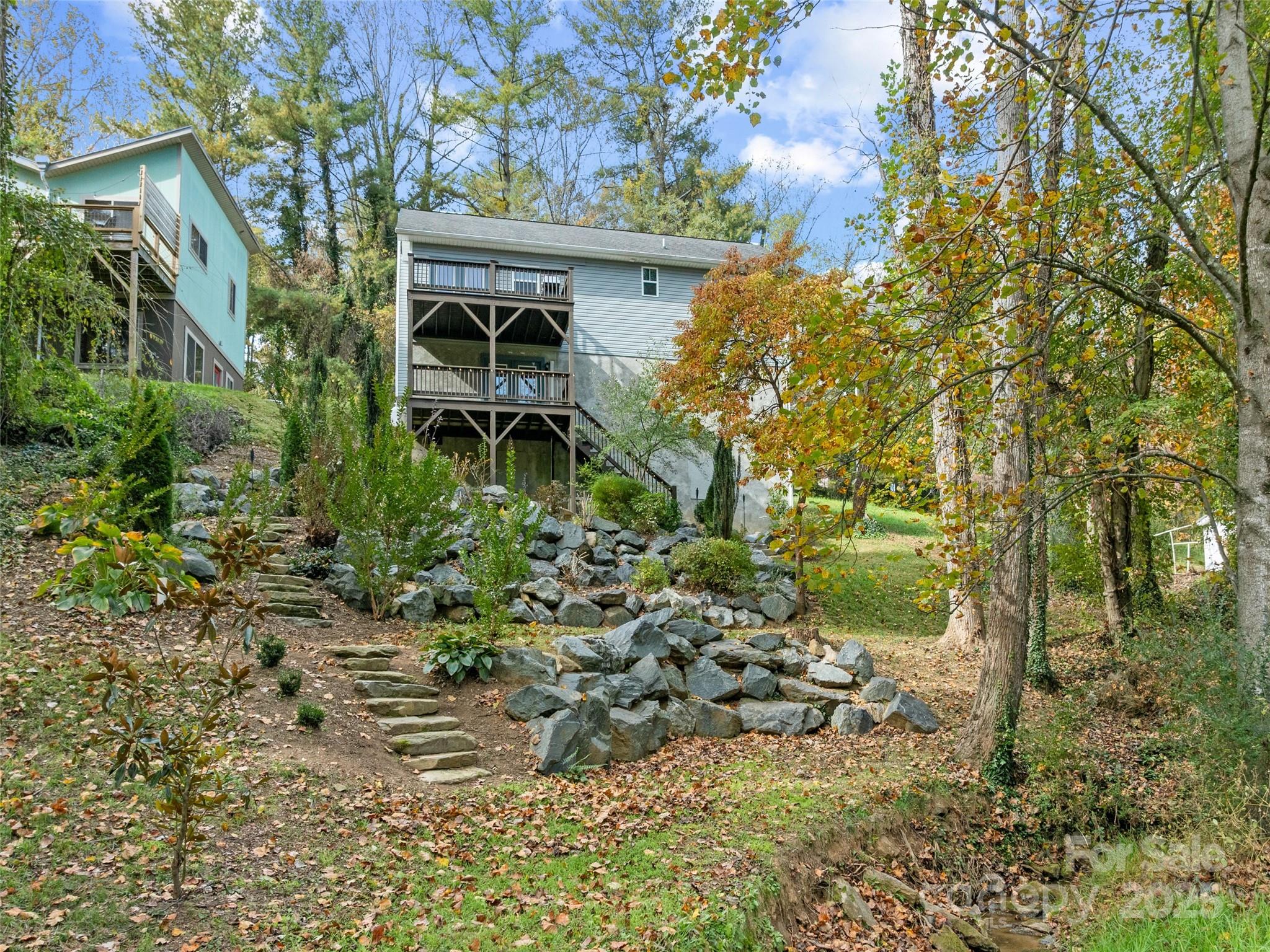 Welcome to this Arts & Crafts-inspired home in desirable Enka-Candler/West Asheville! This beautifully maintained 4-bedroom, 3 full-bathroom residence offers almost 2,000 sq ft of thoughtfully designed living space balancing style and functionality. Discover an inviting open floor plan with 9-foot ceilings and vaulted areas creating a spacious atmosphere. A cozy fireplace adds to the ambiance. Gleaming hardwood floors flow throughout the main level, complementing the home’s warm aesthetic. The modern kitchen serves as the heart of the home, and convenient main-level laundry simplifies everyday life. Located outside city limits, the versatile lower level features an inside access as well as its own separate exterior entrance—ideal for Airbnb income or hosting guests. Outside, enjoy a canopy of trees, double decks, a burbling creek, and professionally landscaped terraced backyard. The custom fire pit w/ benches provides the perfect spot for enjoying the 4 seasons of our gorgeous NC mountains. Additional features include two car garage and 0.19-acre lot. Minutes from downtown Asheville and West Asheville’s celebrated dining and arts scene, this home offers the perfect blend of peaceful neighborhood living and urban convenience!